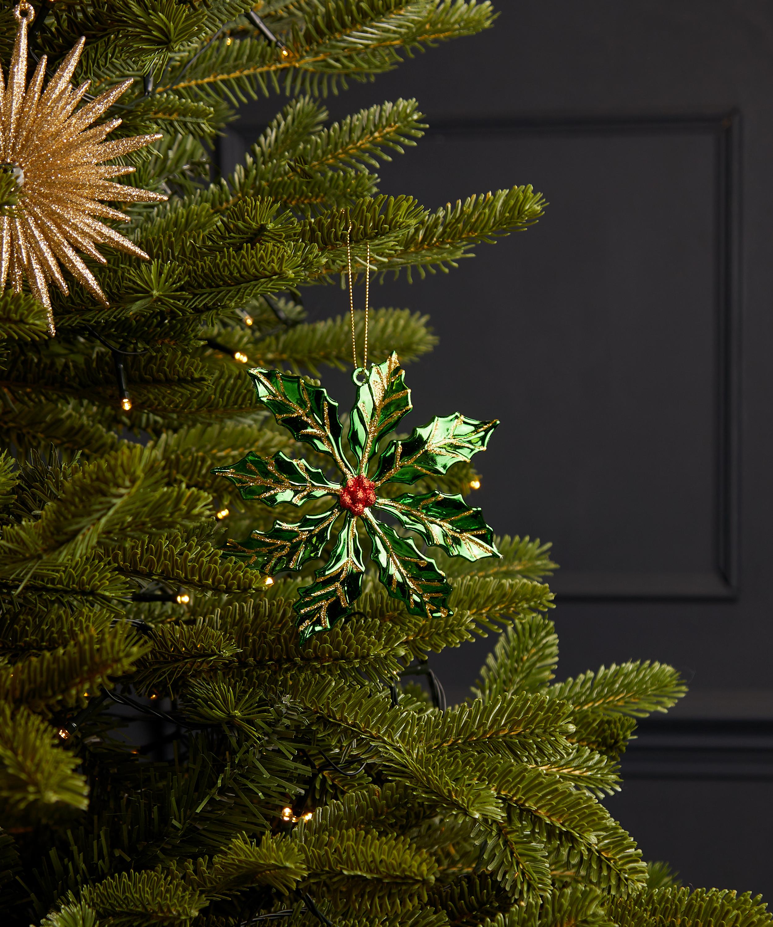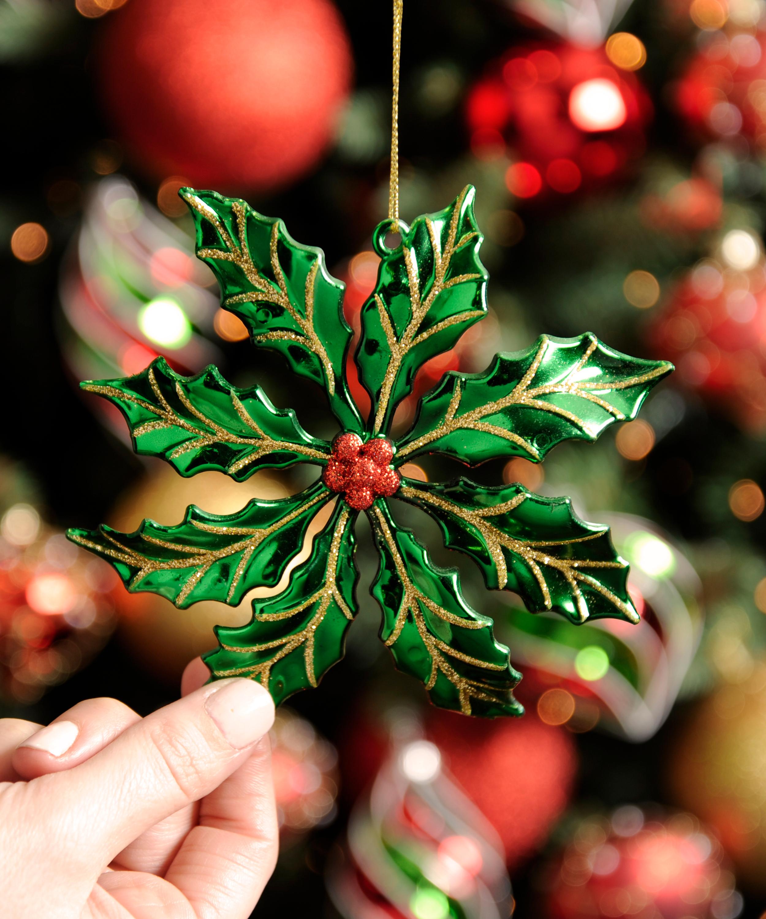 With a strikingly elegant leaf design, this Green Leaf with Jewel ornament exudes the perfect amount of eclecticism for your seasonal pine.