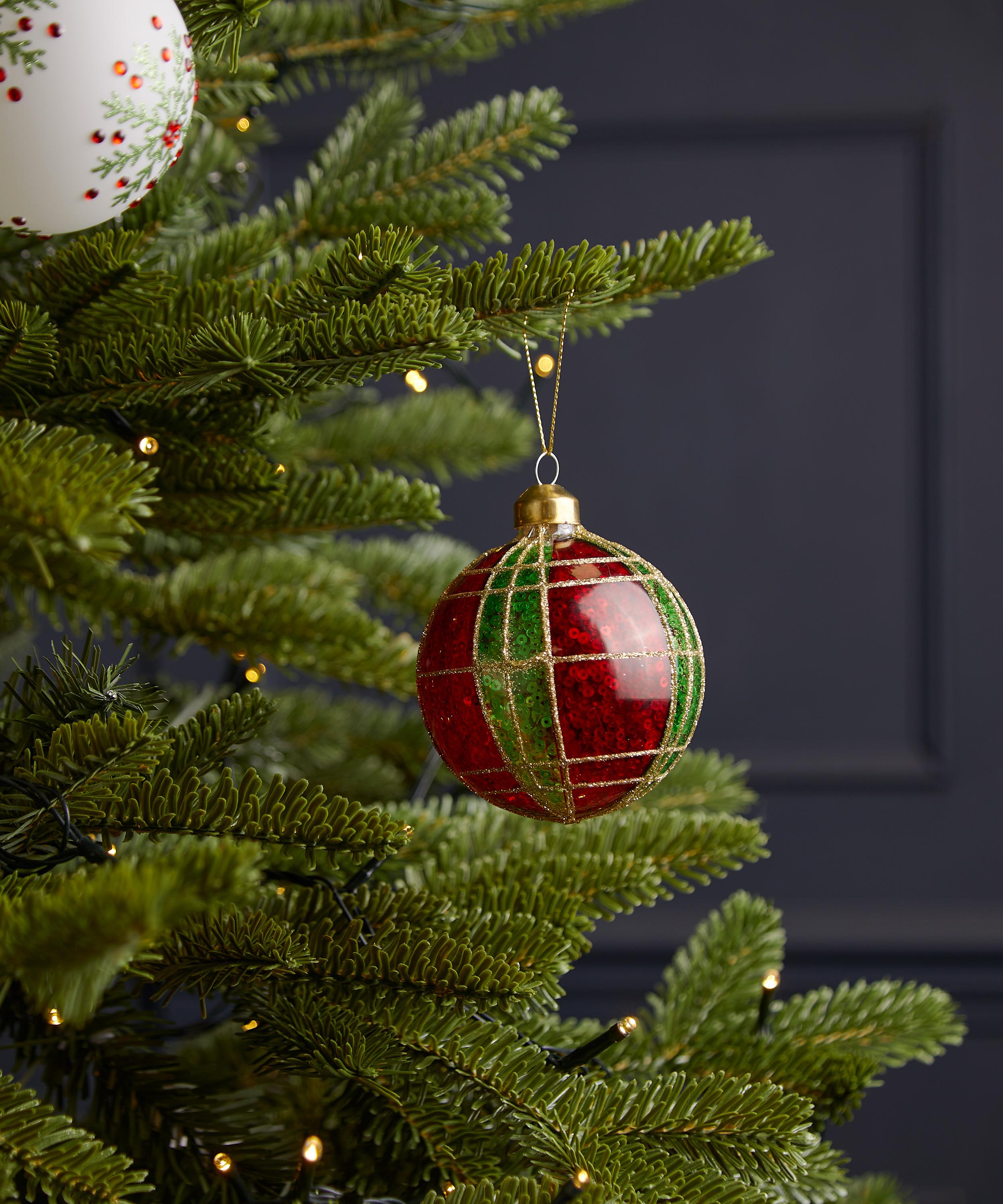 It’s crafted from glass and showcases a disc comprised of alluring green and gold stripes with a glittered finish that harmonises with your fairy lights, lending a contemporary feel to traditional designs and motifs. Work them into your assortment of baubles and adornments to add further sparkle to your seasonal décor.
