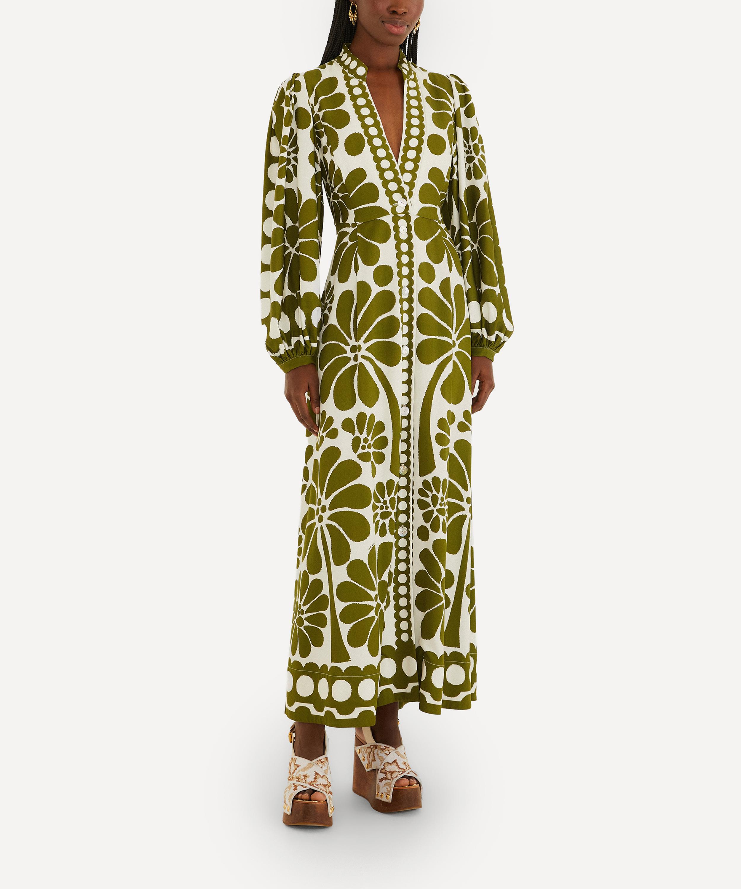 The Green Palermo Buttoned Puff Sleeve Maxi Dress from Rio de Janeiro-based label FARM Rio brings some Brazilian vivacity to your new-season edit.