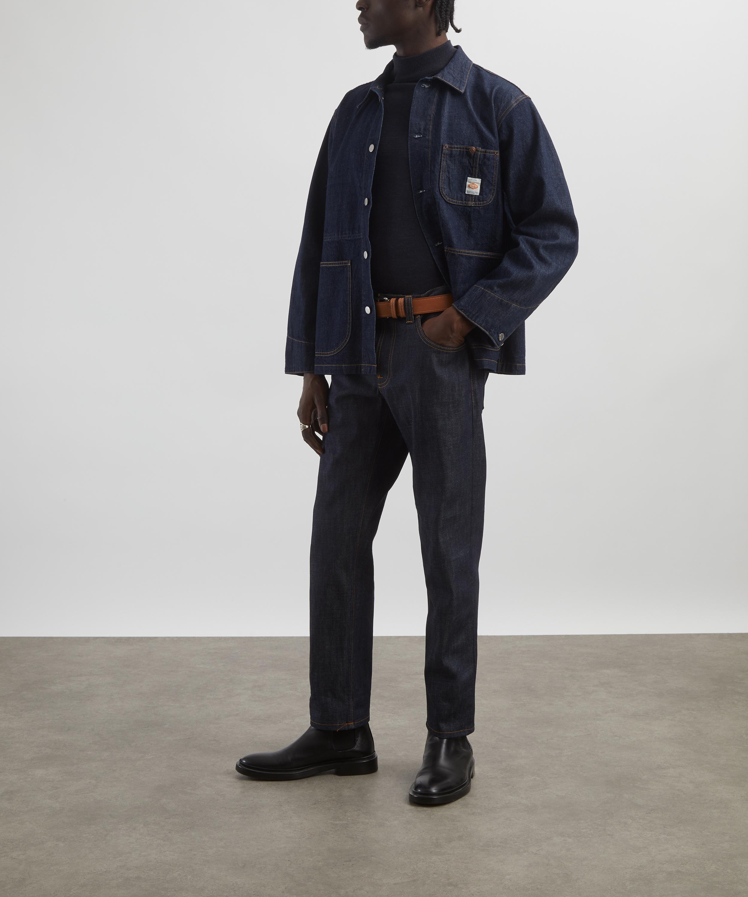 Crafted in Italy from 14.9oz rigid denim, these regular fit blue jeans are washed for a deep-blue hue, complemented by the tobacco top stitching, and have been designed to sit at the hip — this straight-leg pair work with everything from plaid shirts to chunky knitwear.