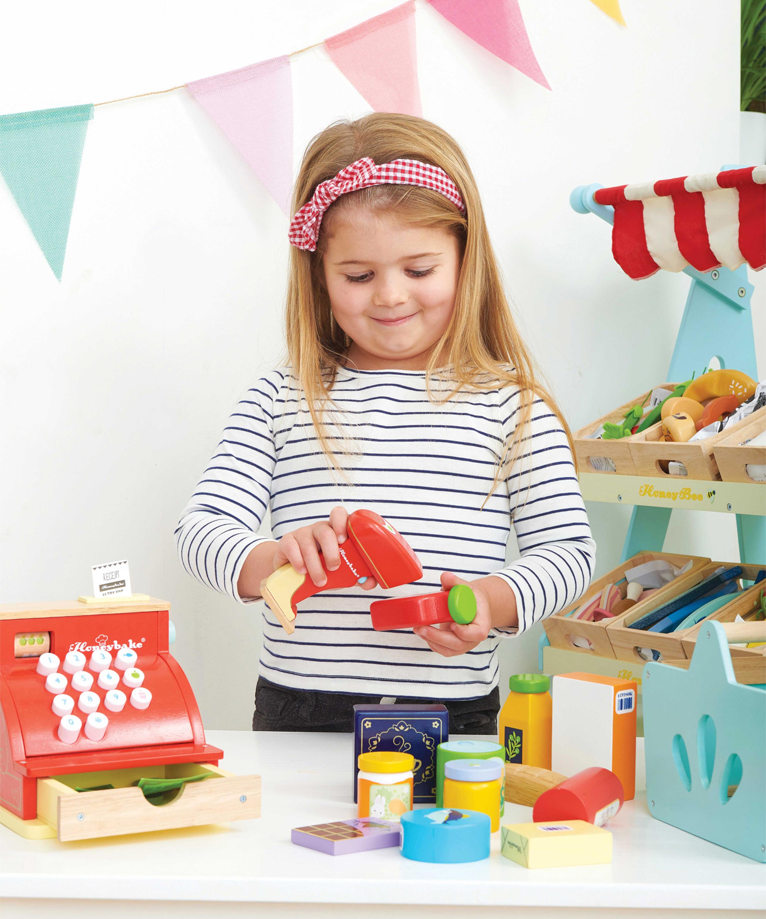 Le Toy Van’s Groceries Set and Scanner toy is perfect for entertaining little ones while developing early learning skills.