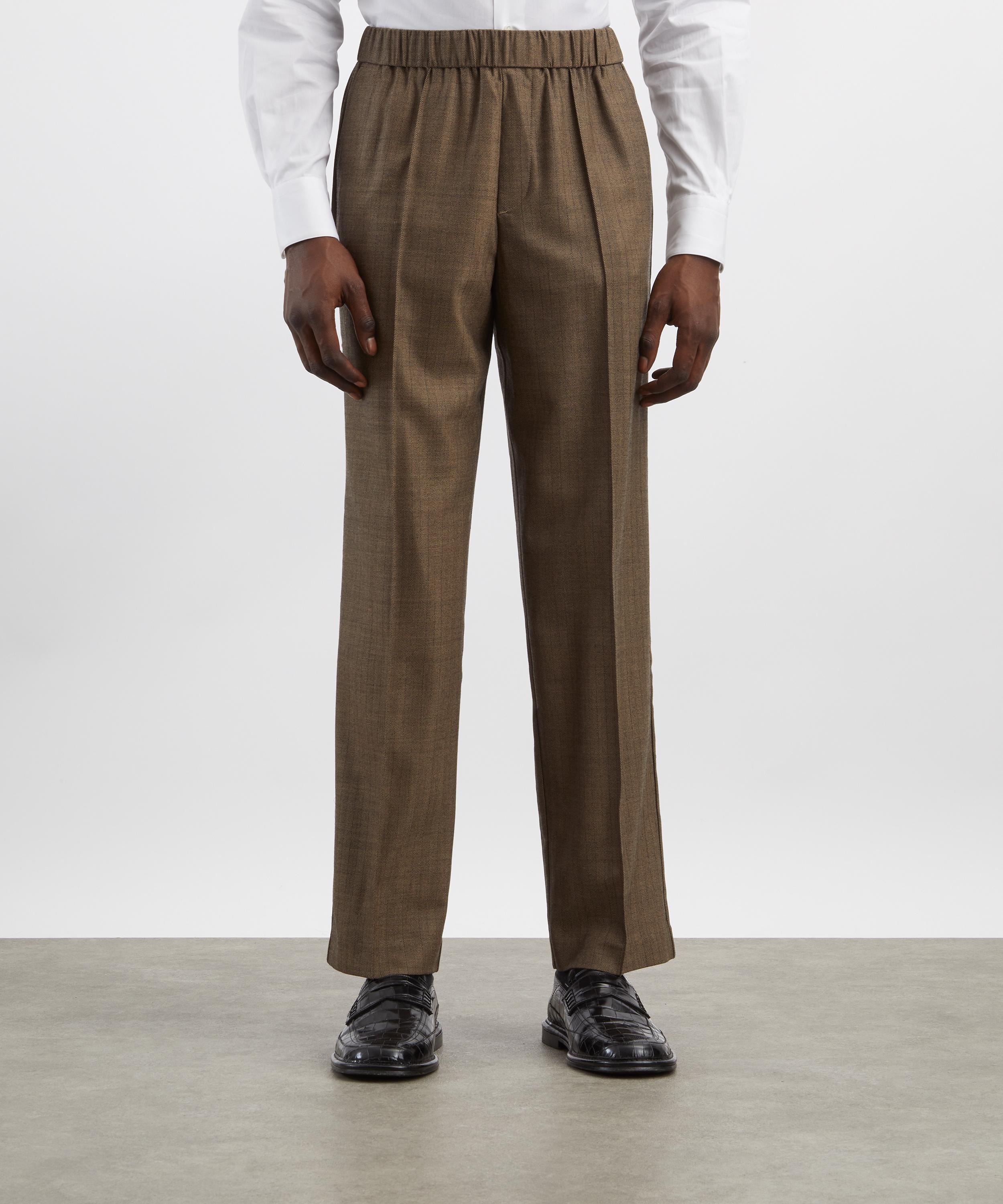 Cut from a breathable wool blend in a classic herringbone weave, they feature an elasticated waist and a loose fit through the leg. They are a stellar example of smart-casual dressing done well.