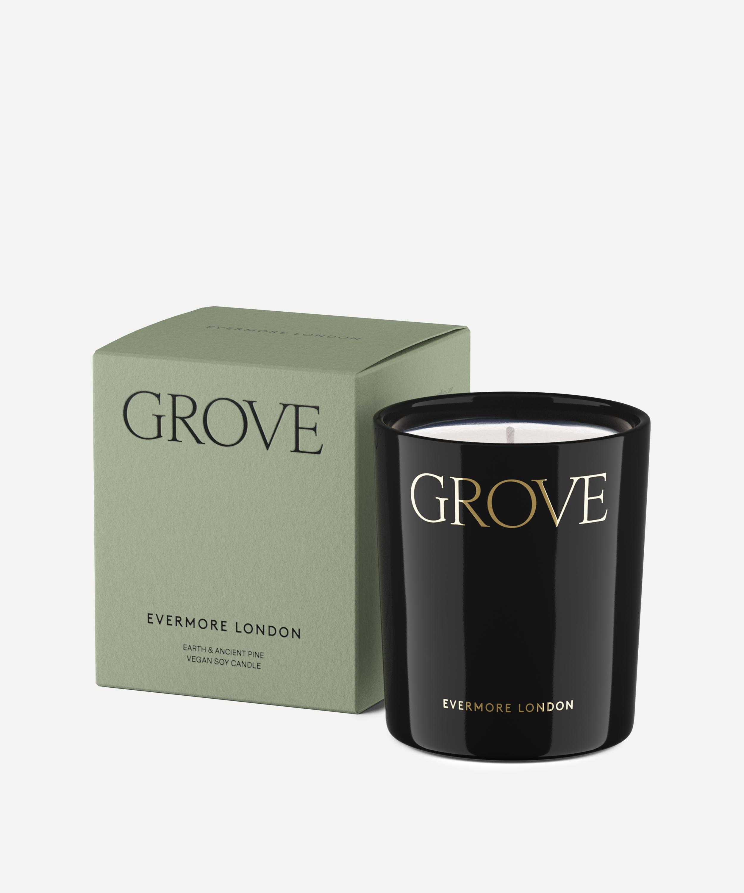 Envelop in the grounding aromas of Evermore London's Grove scented candle, infused with a fresh, green blend that captures the comforting essence of ancient pine trees, damp from the first rainfall in autumn.