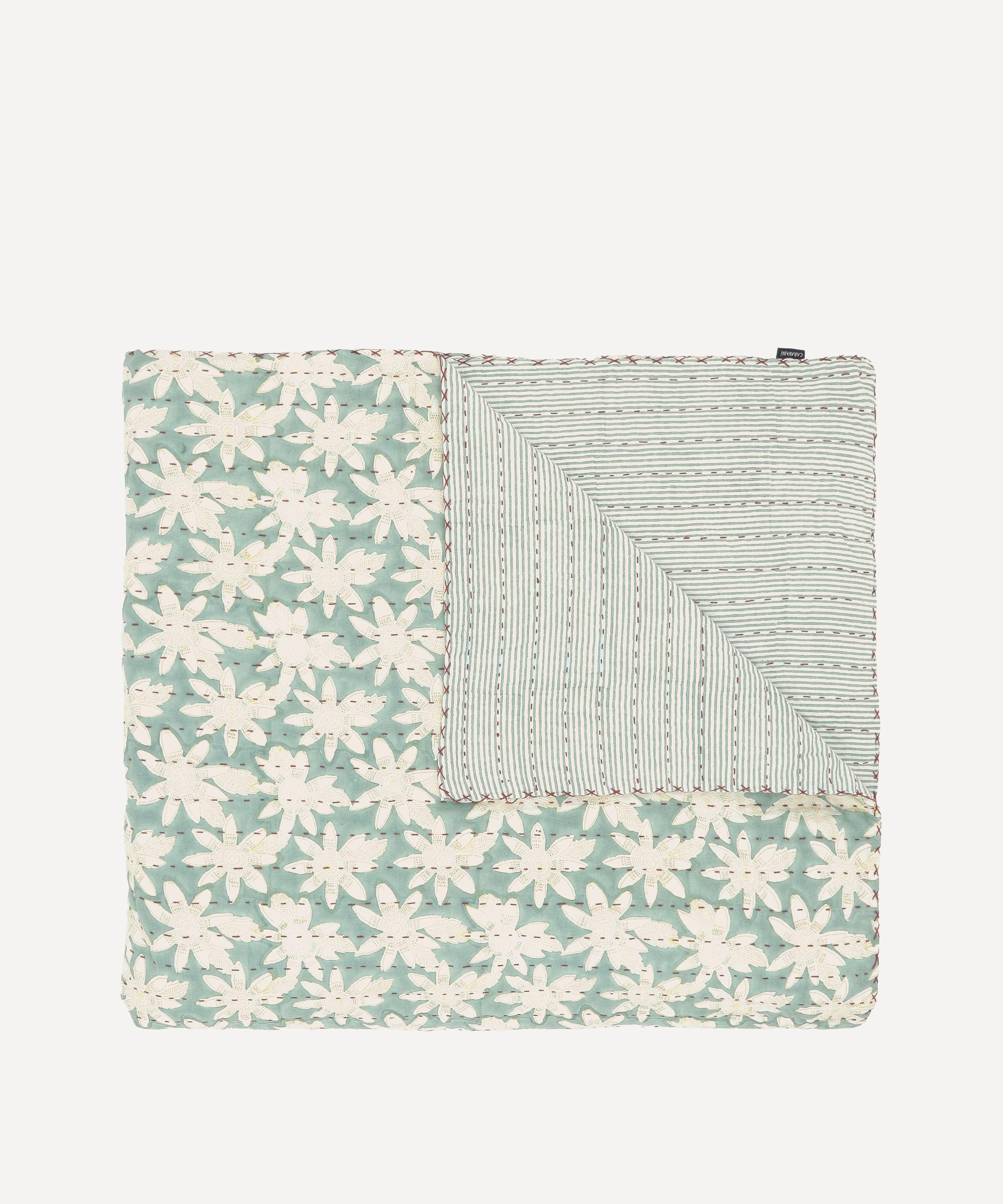 A homeware brand that celebrates the eclectic landscape of a lived-in home, this bedspread offers two contrasting sides for a styling choice of vibrant print or handstitched detailing – perfect for adding texture and comfort to the foot of your bed.About Caravane