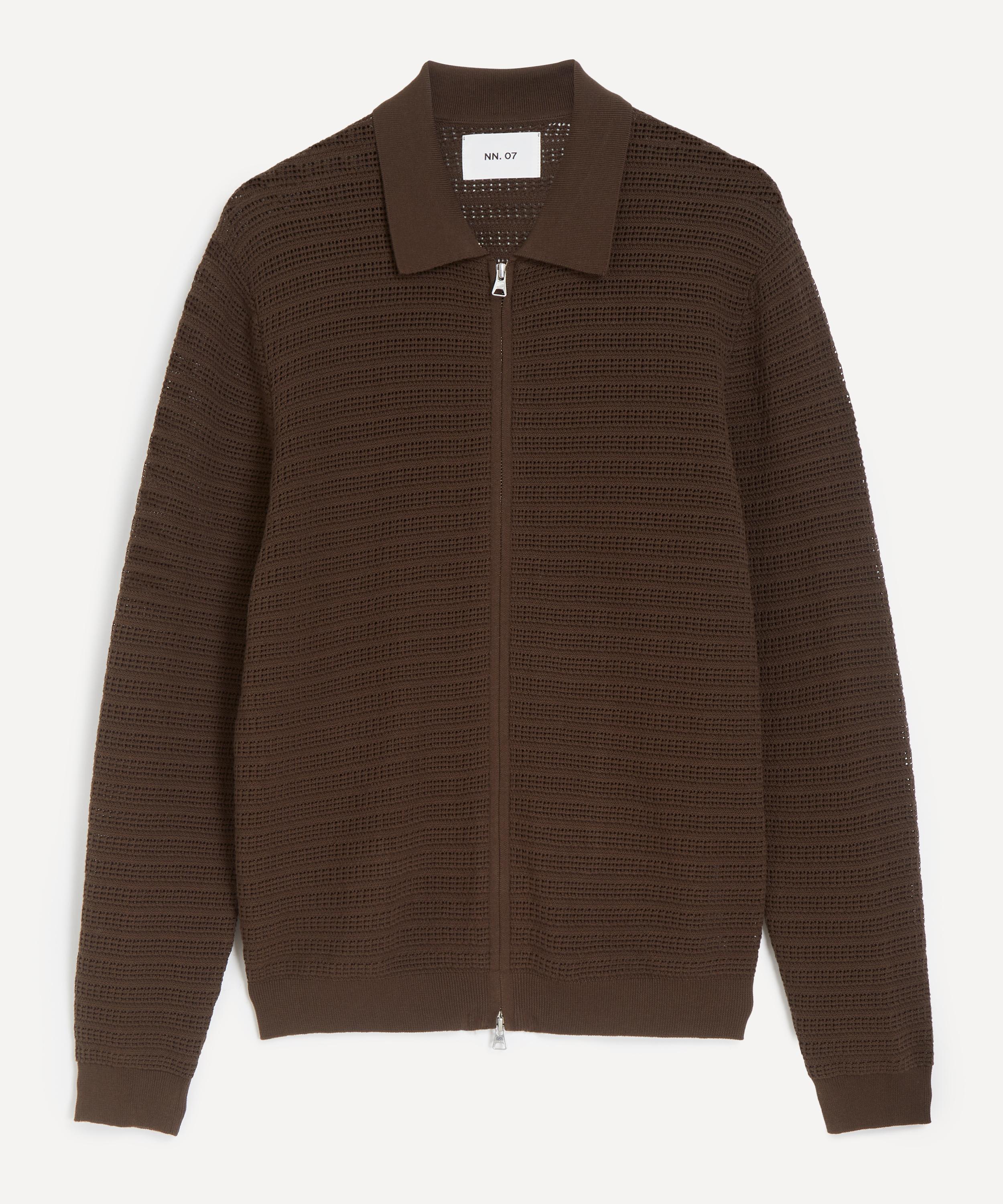 Copenhagen-based label NN07 reinterprets classic tailoring with a modern edge in the Gustav Cotton Zip-Up Cardigan.