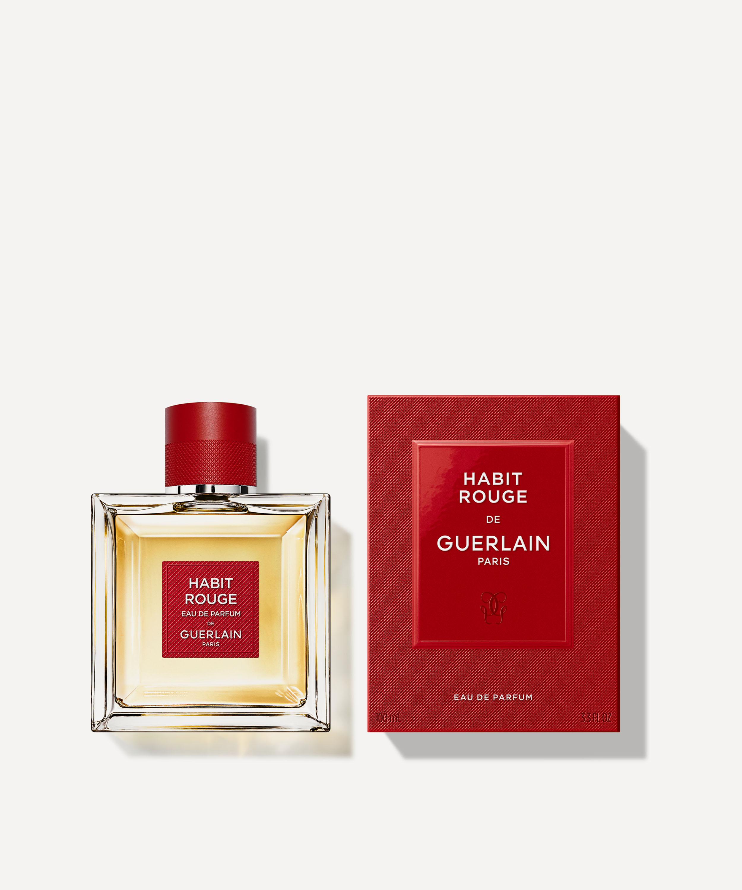 Habit Rouge eau de parfum is a best-selling fragrance from GUERLAIN thanks to its eternally elegant, French appeal. A signature that embraces dandy men who live their lives fervently, this intense and sensual blend audaciously expresses itself directly in a spicy, woody heart softened by neroli and jasmine, over a base of leather, oud, patchouli and vanilla.
