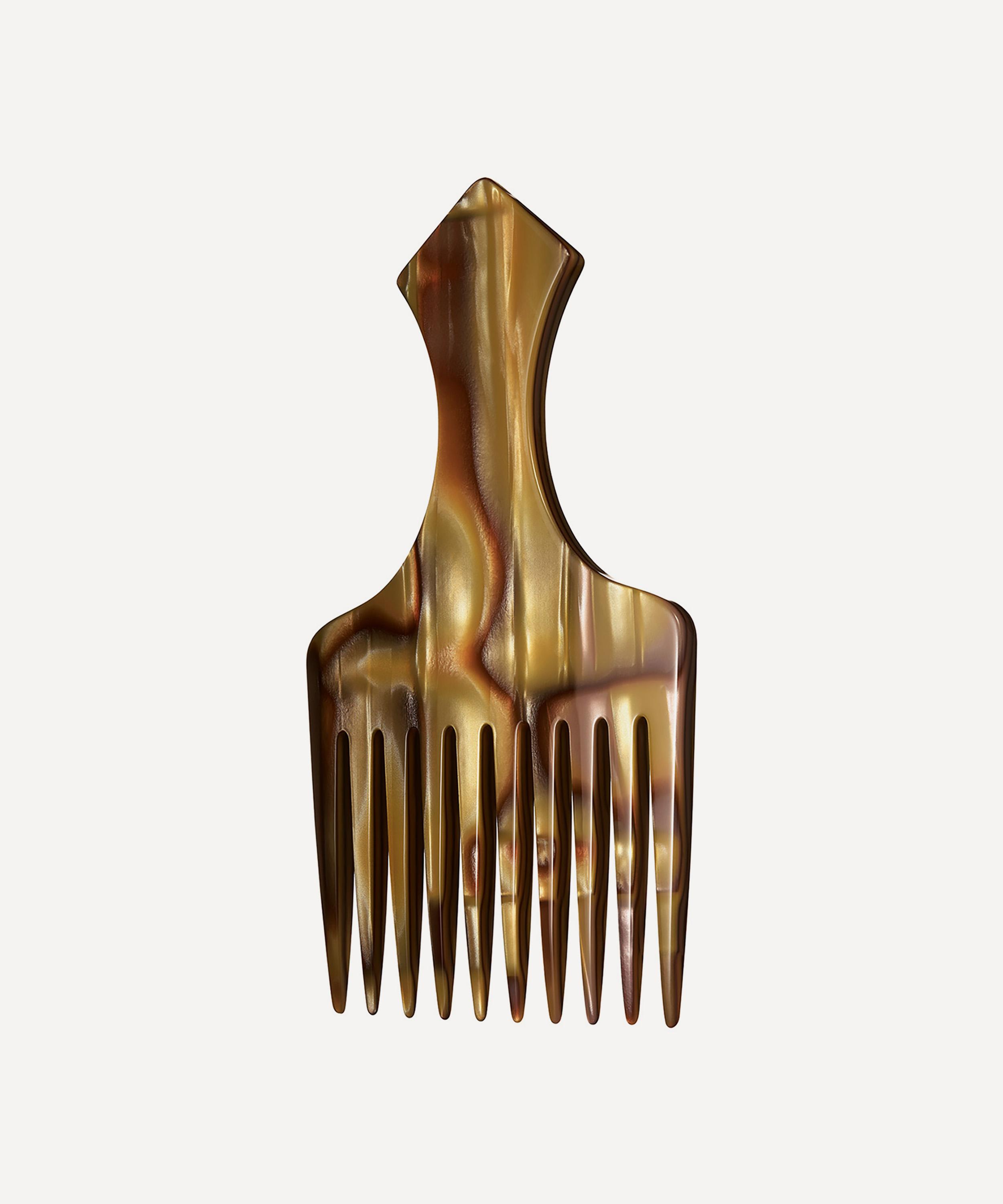 Crafted in Italy from a custom-designed resin, this luxury hair pick features a wide tooth shape that effectively detangles strands, while the rounded tips ensure a comfortable experience – finished by hand, it is poised to become a beloved hair care staple for years to come.