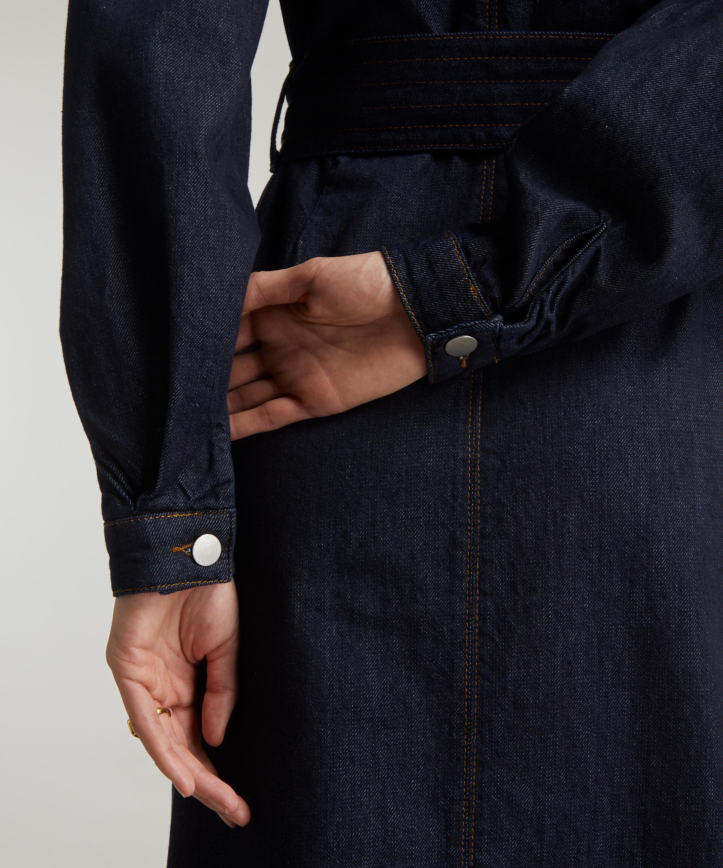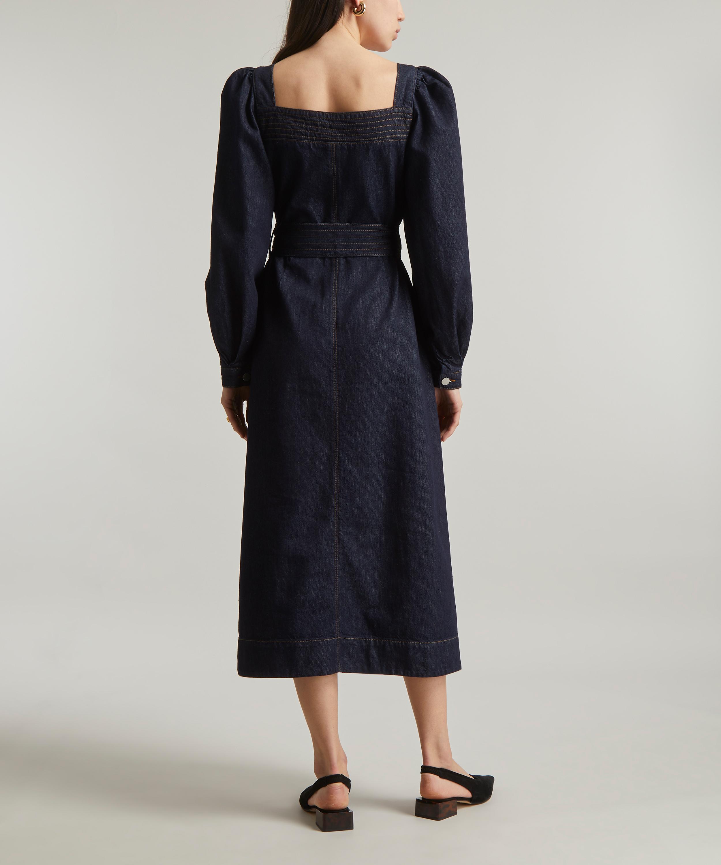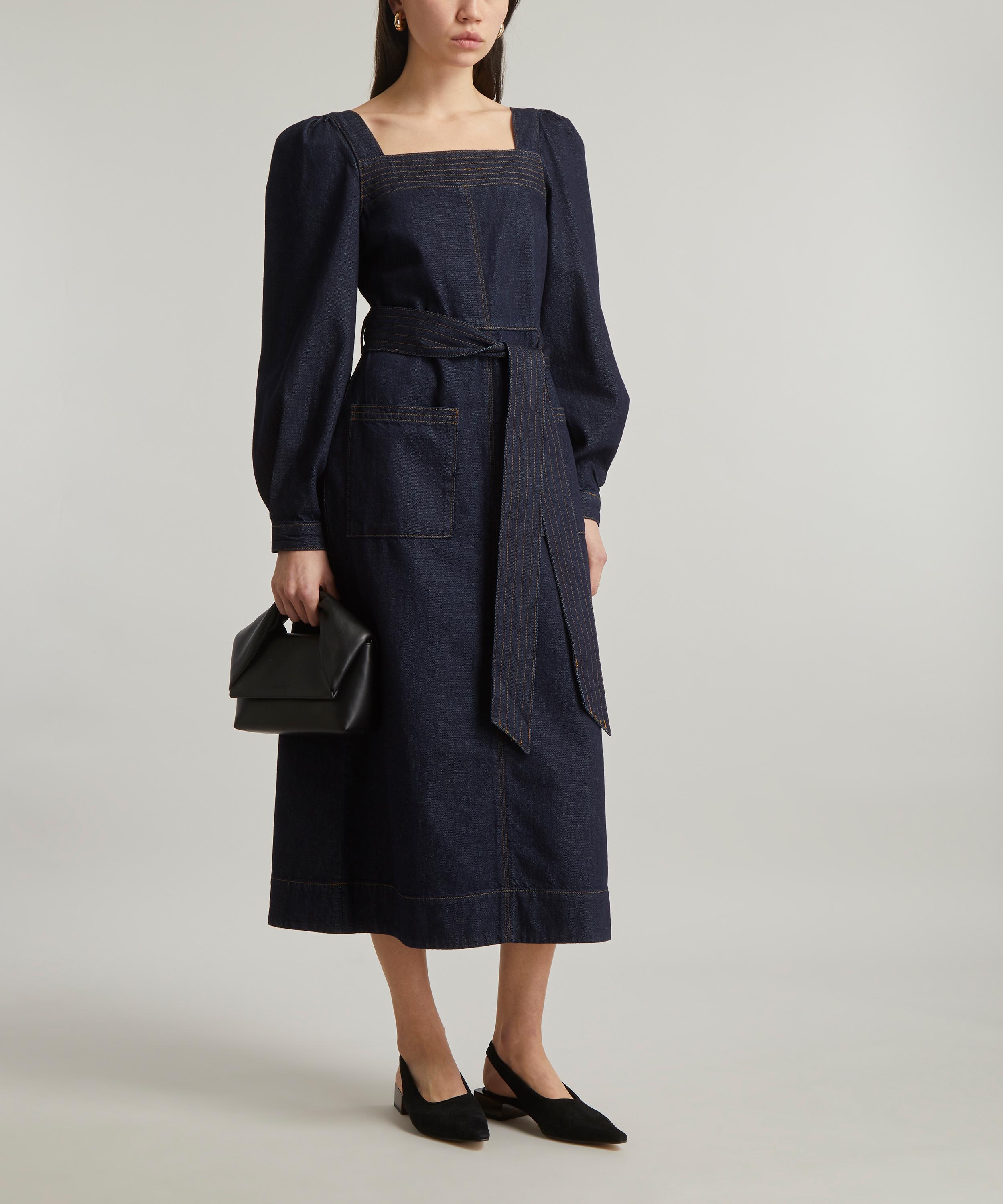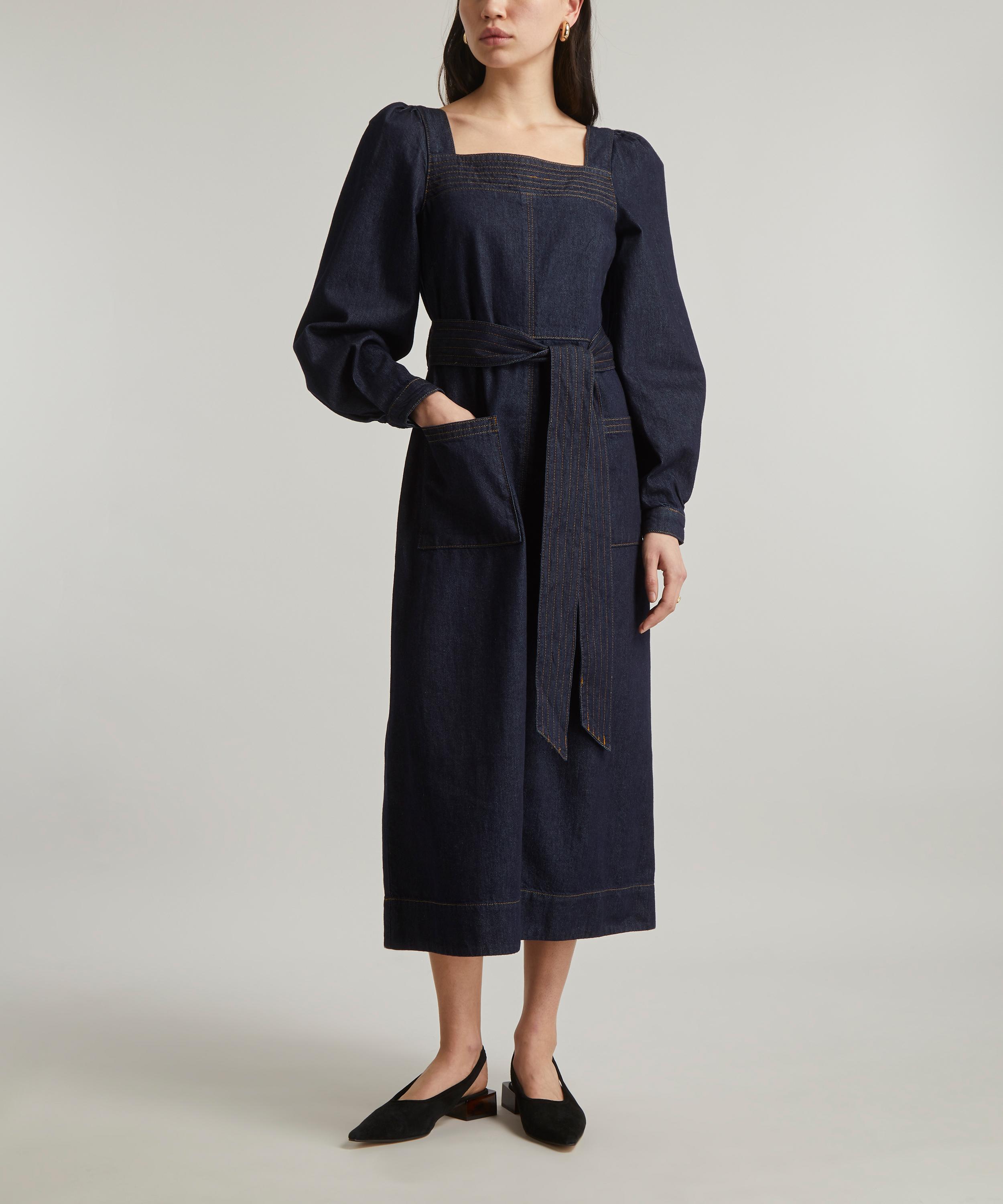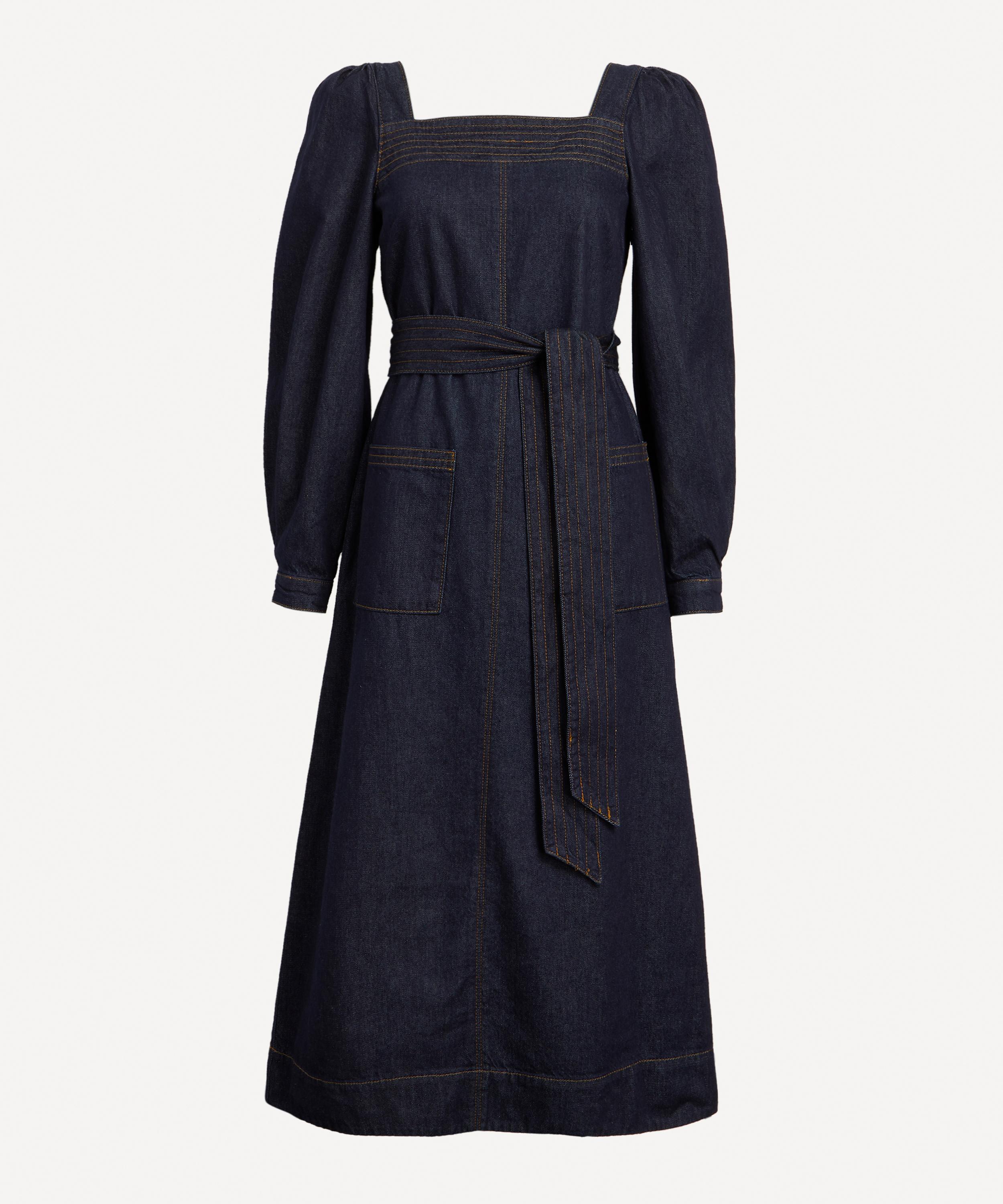 Designed in dark-indigo denim, the Hamden midi-dress from Aligne is the perfect everyday piece. Crafted from 100% organic cotton to a simple straight-fit with a self-tie belt to cinch at the waist, it’s finished with an elegant square-neckline, blouson sleeves and patch pockets.