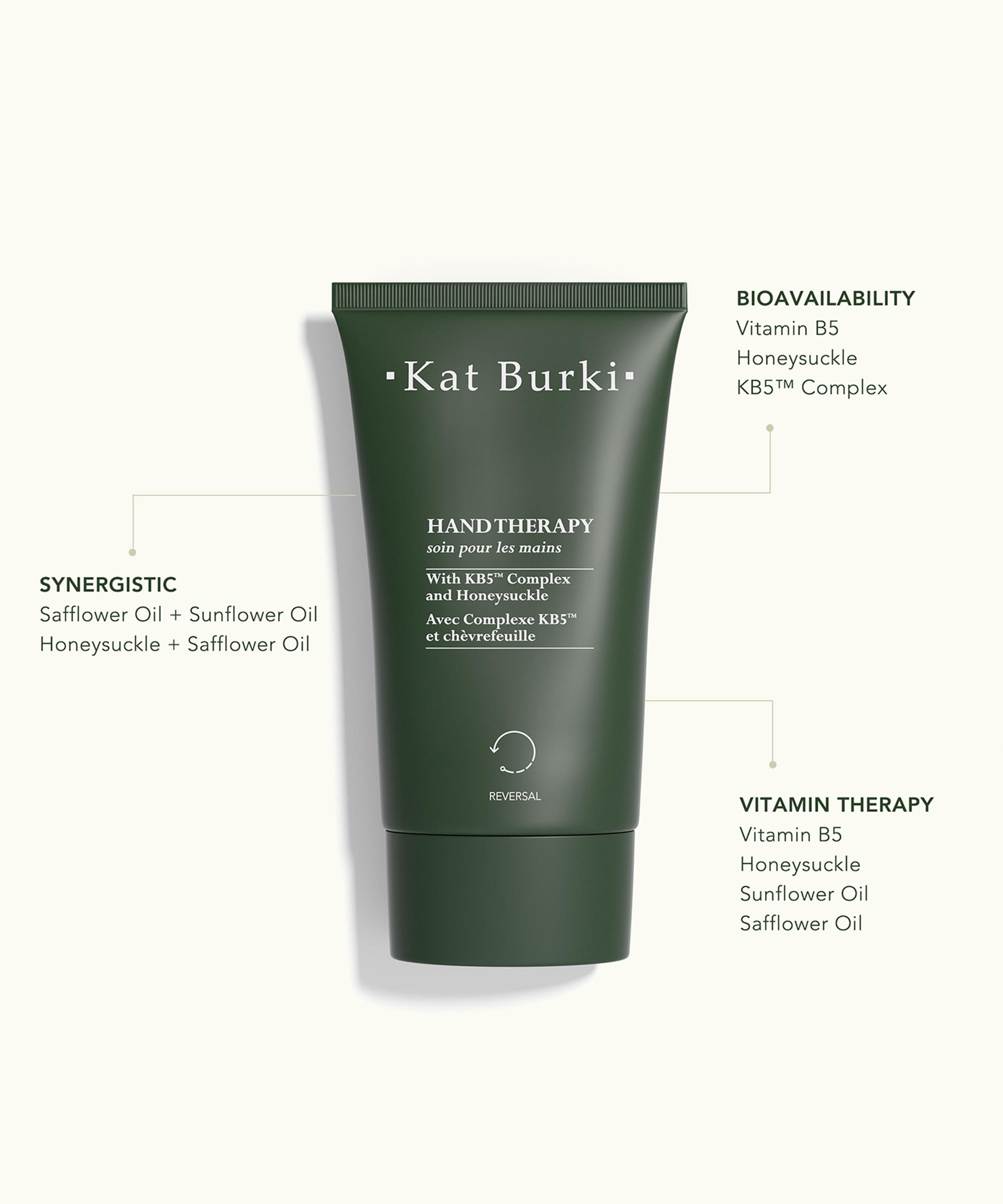 Hand Therapy from Kat Burki is a luxurious, fast-absorbing hand cream that provides instant nourishment, hydration and protection for dry, rough skin.