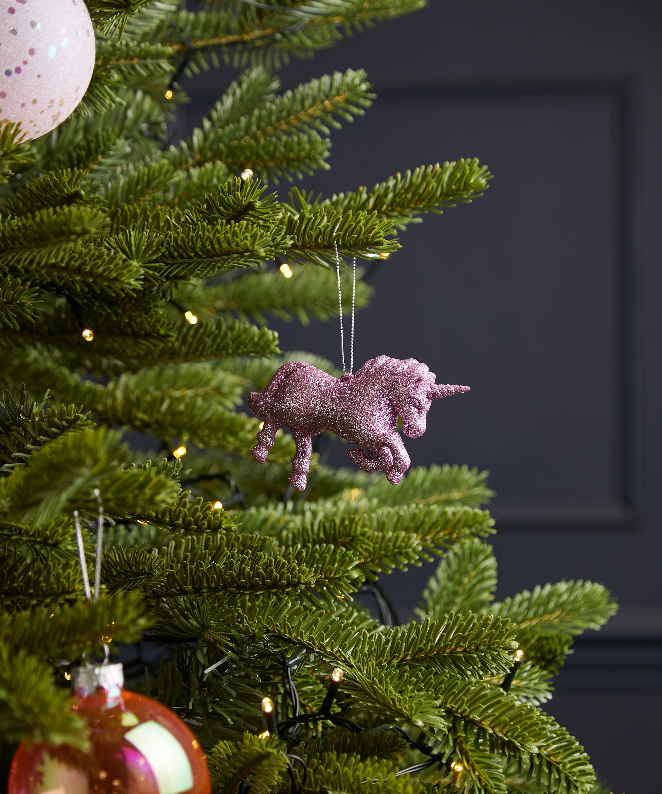 Adorn your tree with the unique Hanging Glitter Unicorn ornament, exuding whimsical charm through its shimmery, idiosyncratic design.