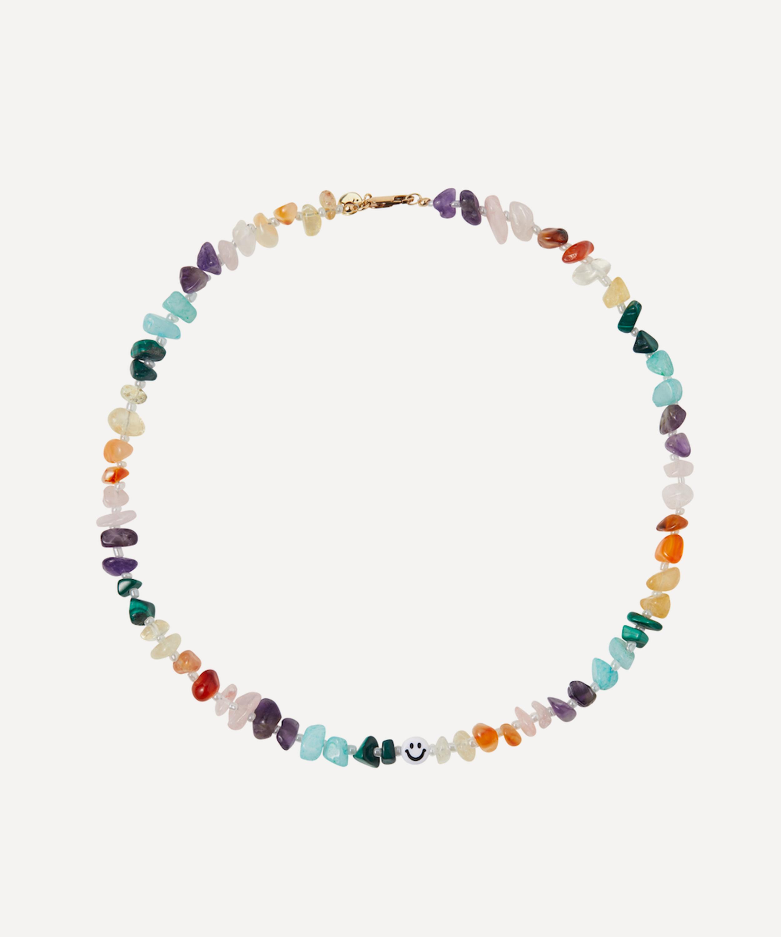 The Happy Guy healing gemstone necklace from TBalance Crystals is adorned with an assortment of six powerful crystals, thought to promote deep inner healing and peace - each piece in the collection is designed to support your journey towards happiness and equilibrium. Handmade in the UK, this necklace is strung with responsibly sourced gemstones along with a whimsical, happy face bead. Wear it alone or stack it with other pieces from the range to fill your mind with positive affirmations throughout the day.