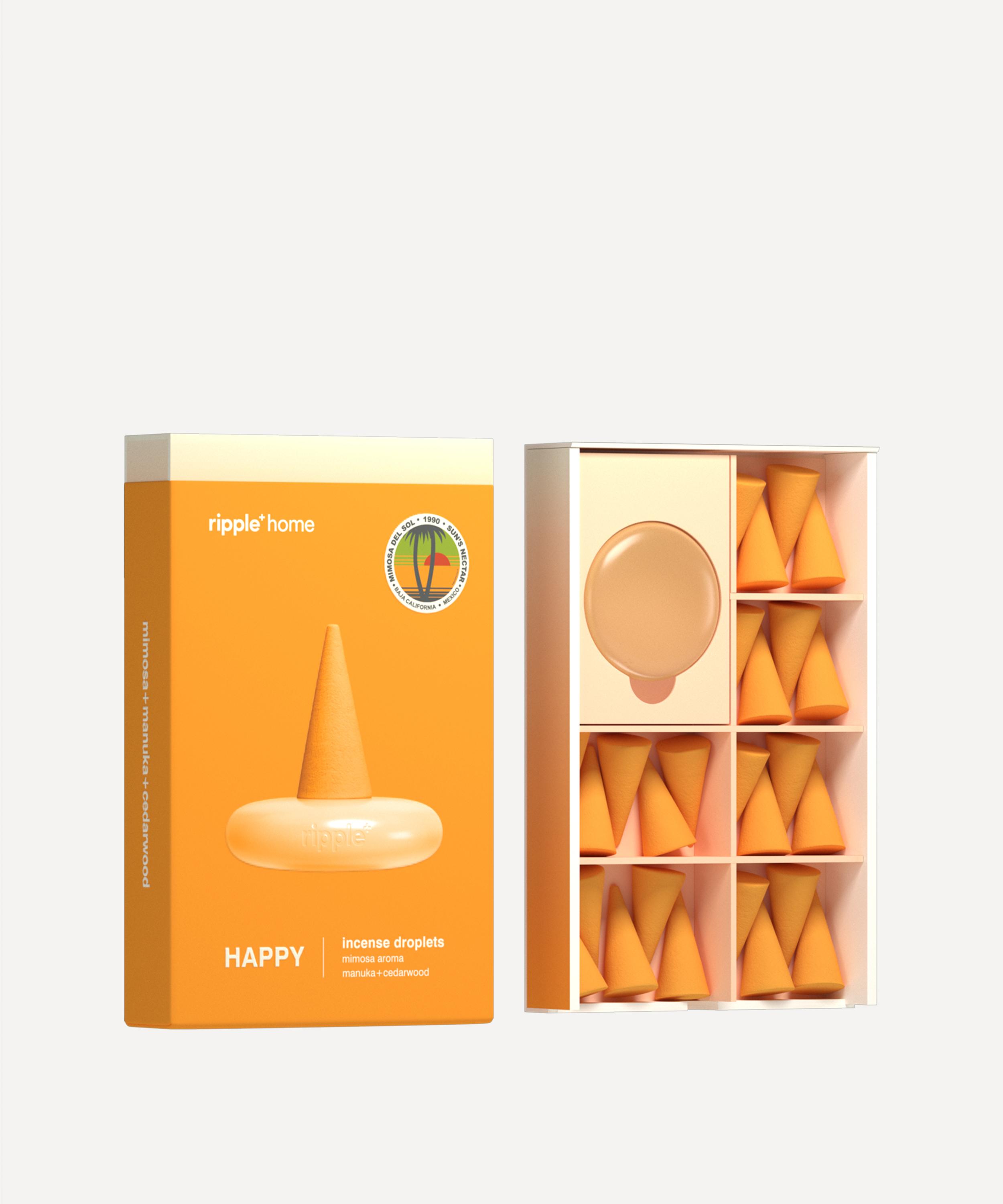 Create a blissful atmosphere in your home with Ripple's HAPPY Mimosa Incense Droplets, designed to lift and transform the energy of any space.