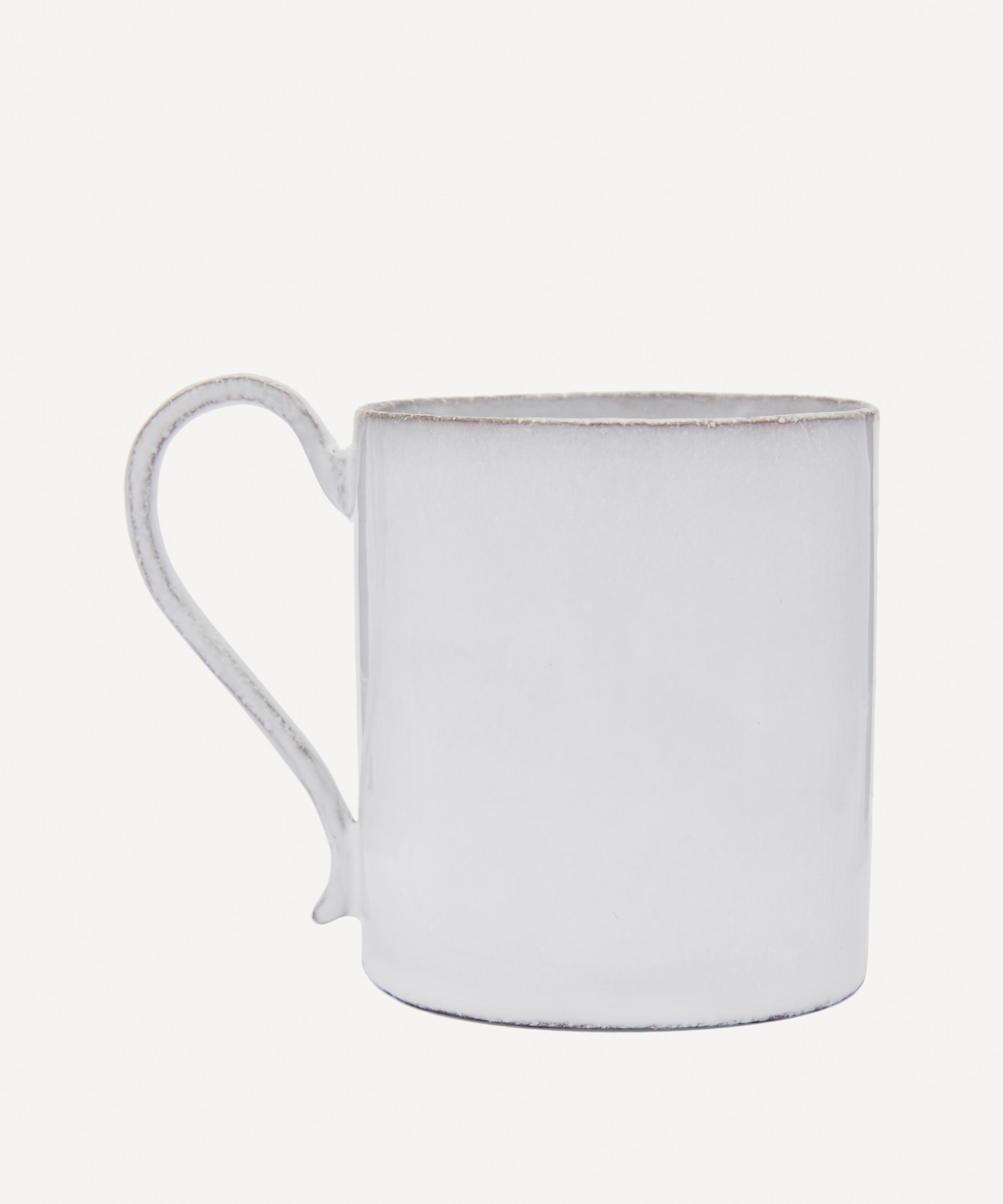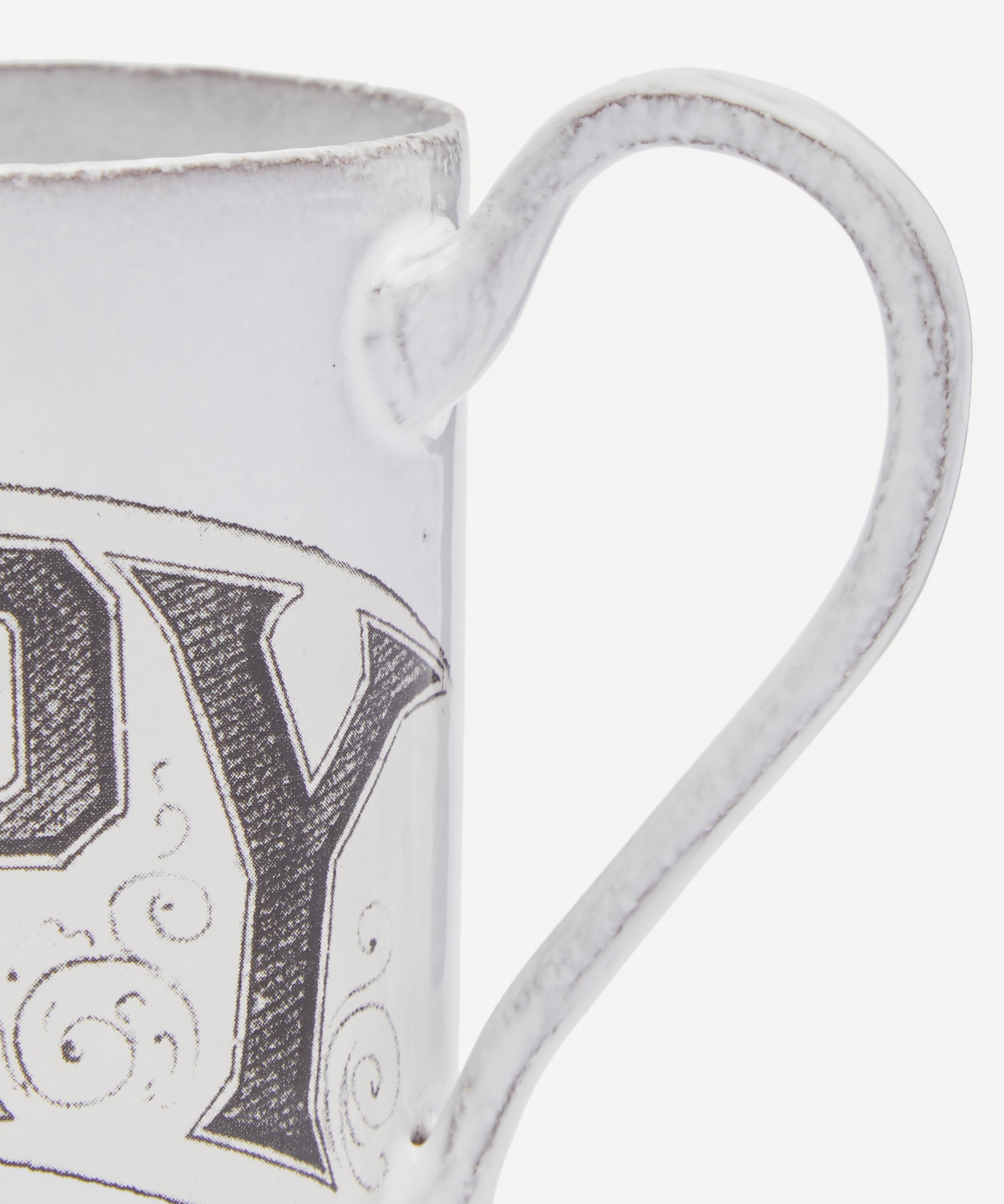 Votary of pre-industrial fabrication, Astier de Villatte is celebrated for being the one and only studio in Paris to hold and harbour the traditions of artisanal ceramic production. Restoring the ancestral systems of moulding and stamping, the happy mug is made using techniques from the Middle Ages which involve moulding a sheet of handmade clay, double firing the ‘biscuit’ piece and glazing the product in white enamel – a lengthy process that requires a drying time of up to one month. Characterised by capitalised text that reads 'HAPPY', the mug is engraved with the brand’s signature crest - depicting an interlacing A & V - alongside the initials of one of the 40 master artisans who created it. Each handmade piece tells a beautiful story, it romances and imparts a sense of nostalgia into its owner. Arrange with other mugs in the collection to breathe an air of authenticity into your afternoon tea setting.