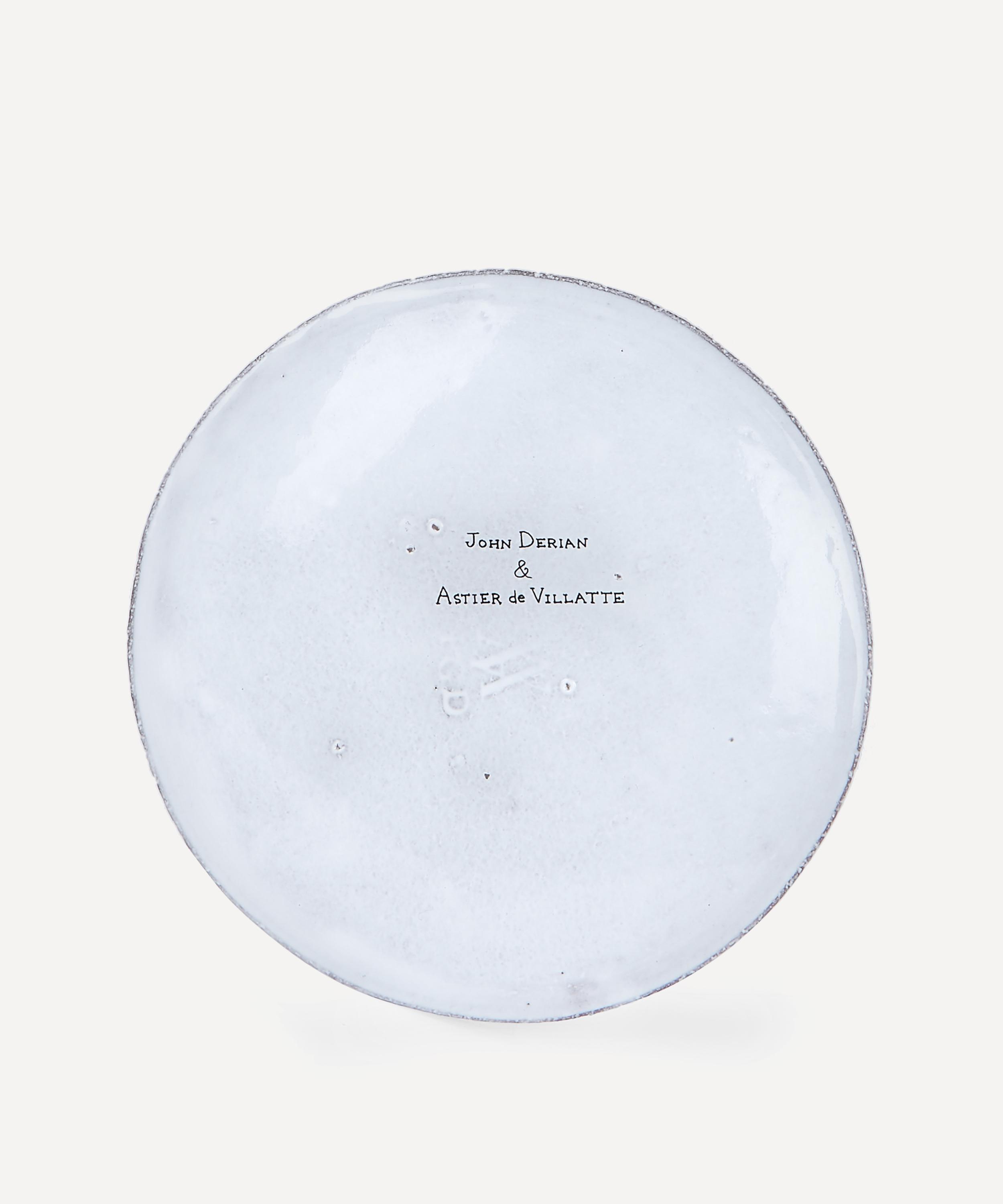 Votary of pre-industrial fabrication, Astier de Villatte is celebrated for being the one and only studio in Paris to hold and harbour the traditions of artisanal ceramic production. Restoring the ancestral systems of moulding and stamping, the Happy plate is made using techniques from the Middle Ages which involve moulding a sheet of handmade clay, double firing the ‘biscuit’ piece and glazing the product in white enamel – a lengthy process that requires a drying time of up to one month. Characterised by John Derian’s découpage, the small plate is engraved with the brand’s signature crest - depicting an interlacing A & V - alongside the initials of one of the 40 master artisans who created it. Each handmade piece tells a beautiful story, it romances and imparts a sense of nostalgia into its owner. Pair with other ornate pieces from the John Derian collection for a coordinated decorative approach.