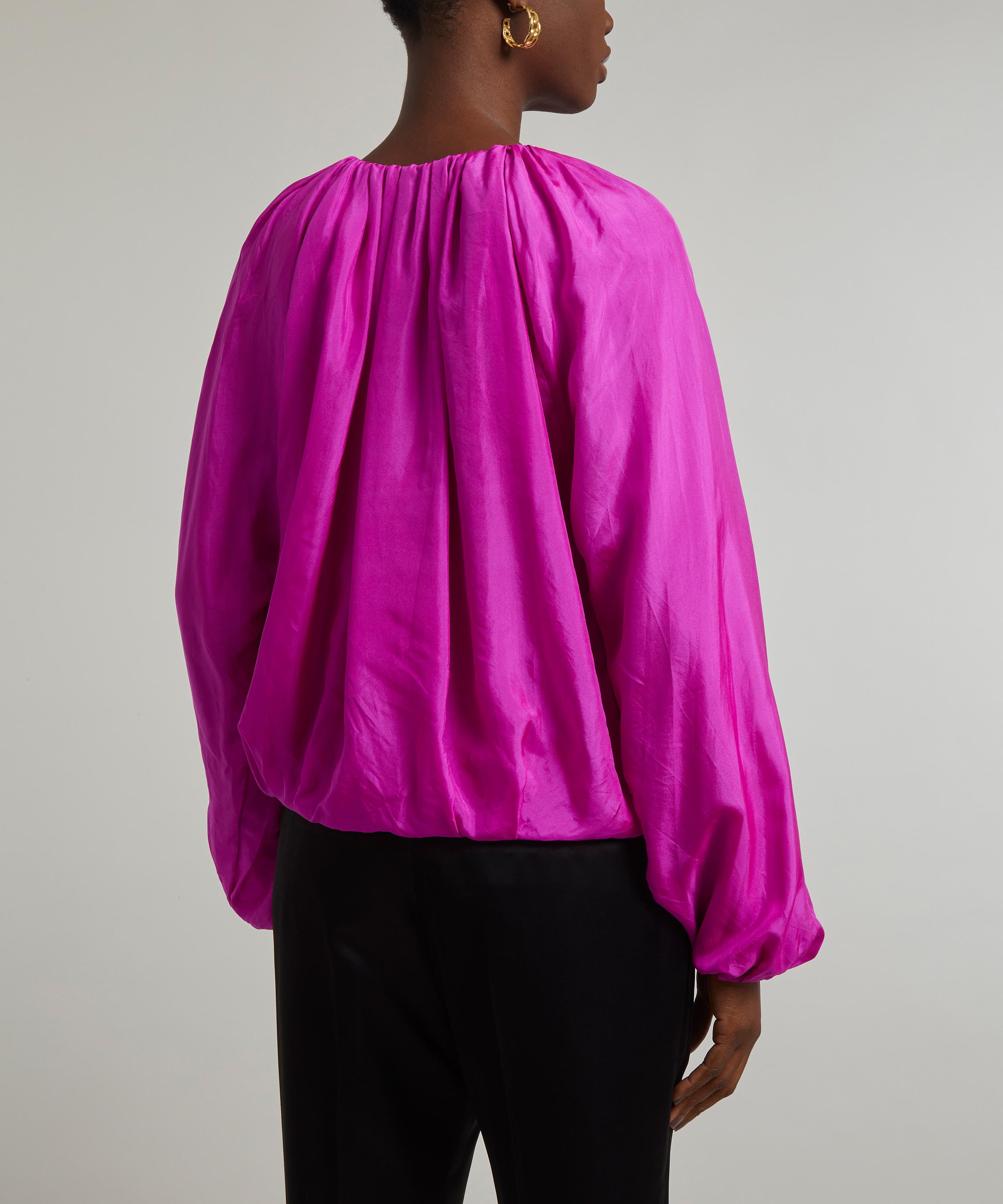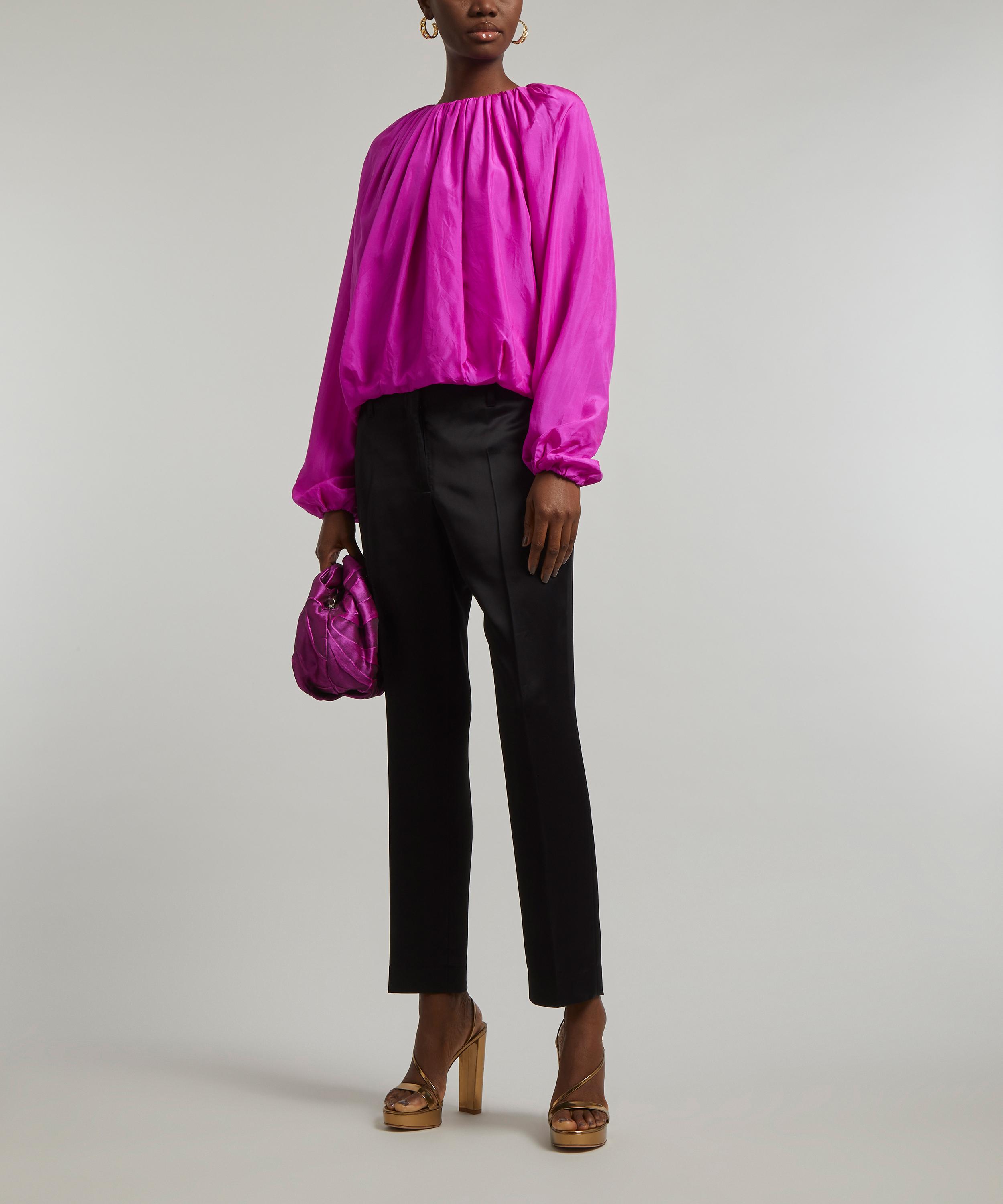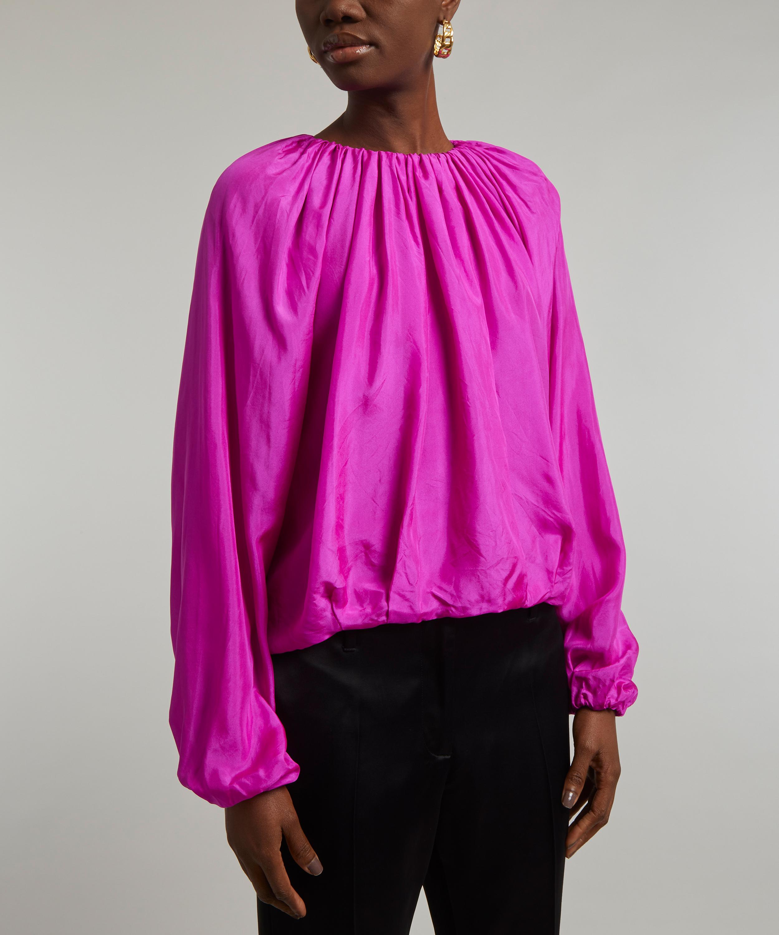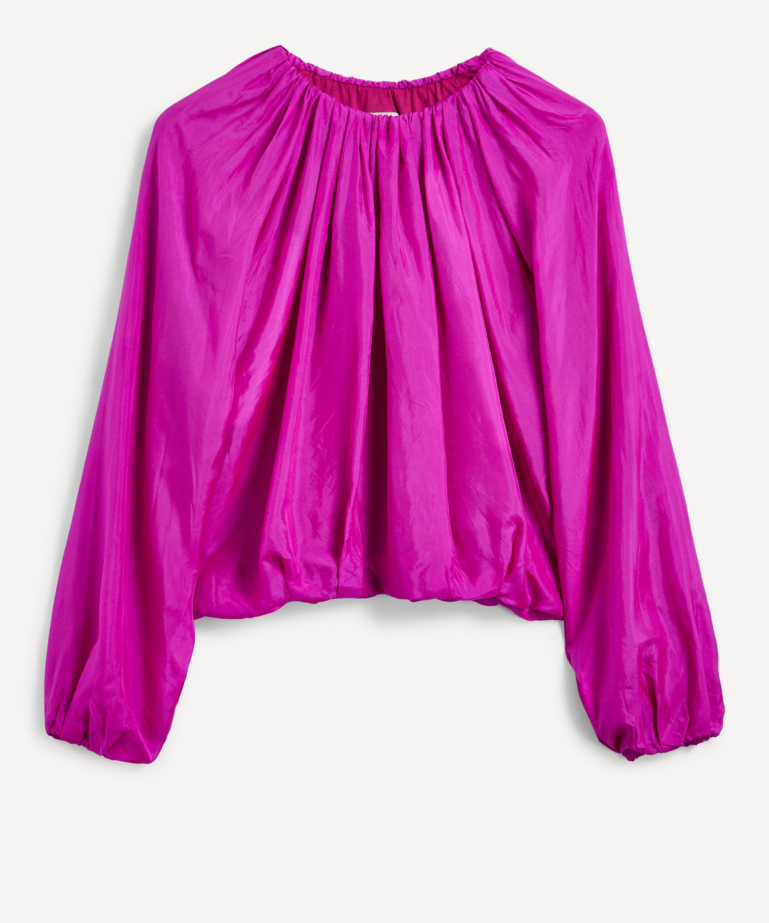 An exhibition of the brand’s innovative approach to styling, the Haras top from Dries Van Noten serves a statement-making piece that’s sure to capture attention. Crafted from a luxuriously light silk and cotton-blend, this voluminous top boasts a cocooning silhouette, featuring gathered detailing across its crew-neckline, cuffs and hem for a gently puffed finish.