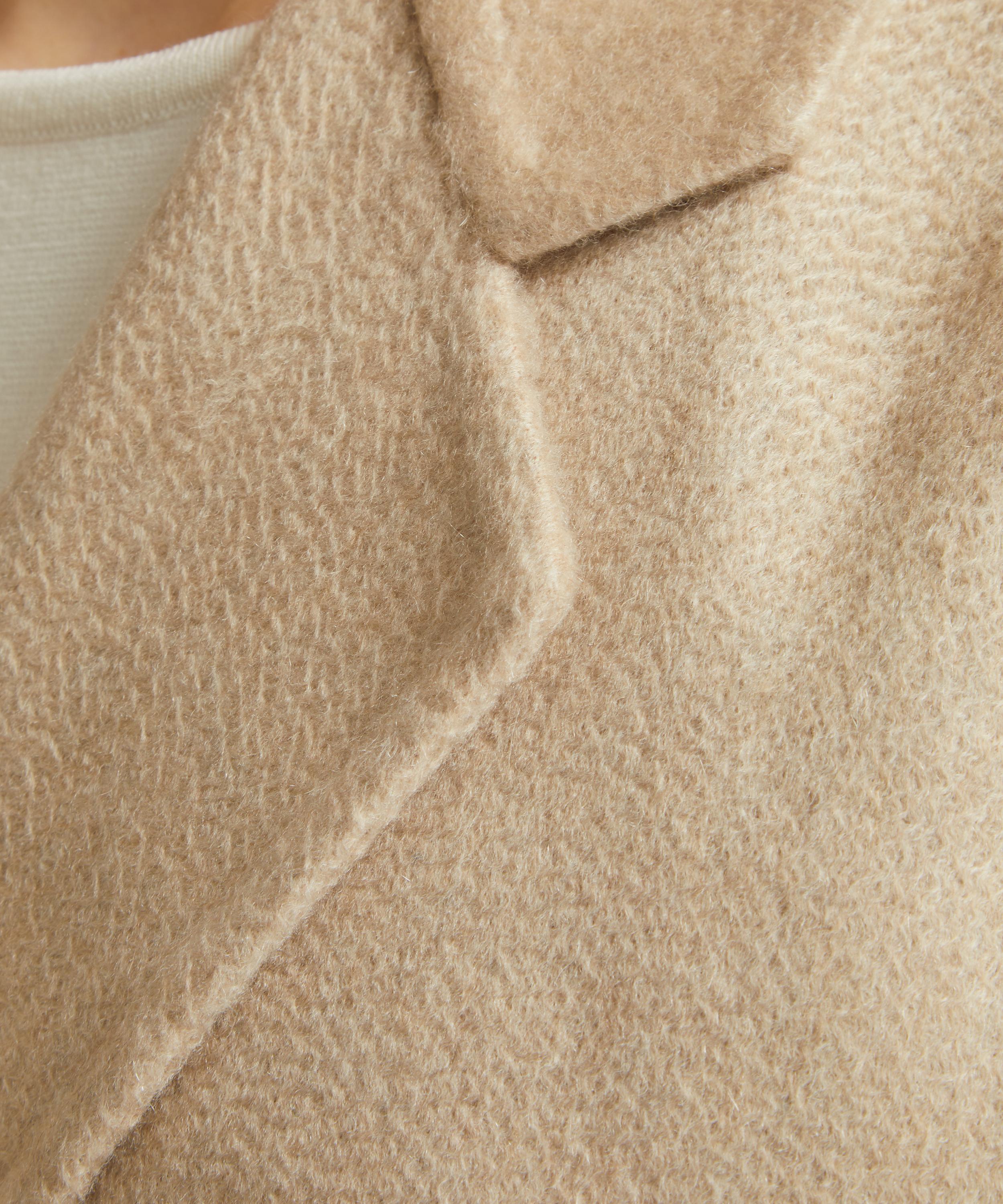 Luxuriously crafted from sumptuous cashmere, this short, robe-style coat has a notched collar and side pockets, and is secured at the waist with an adjustable belt.