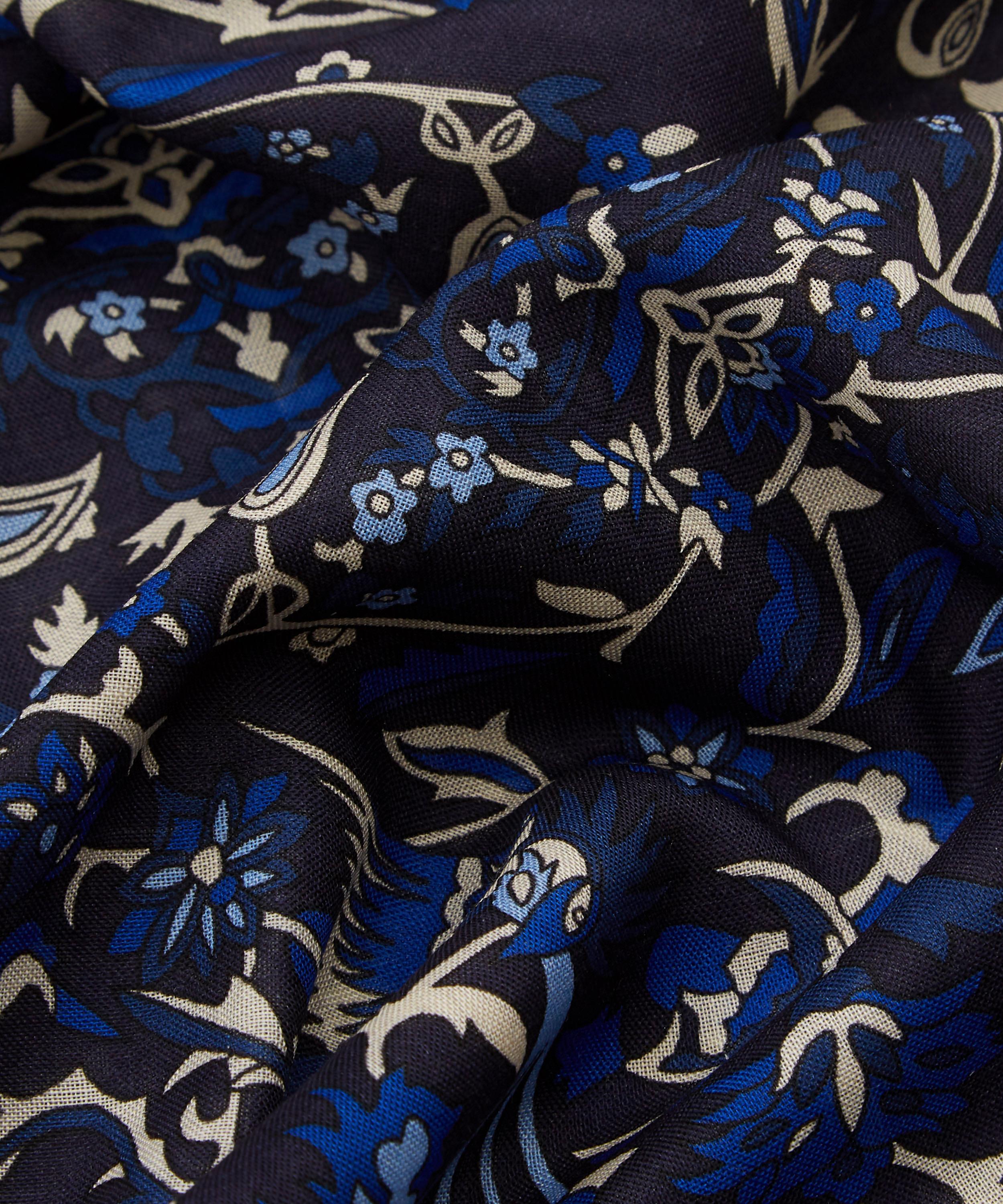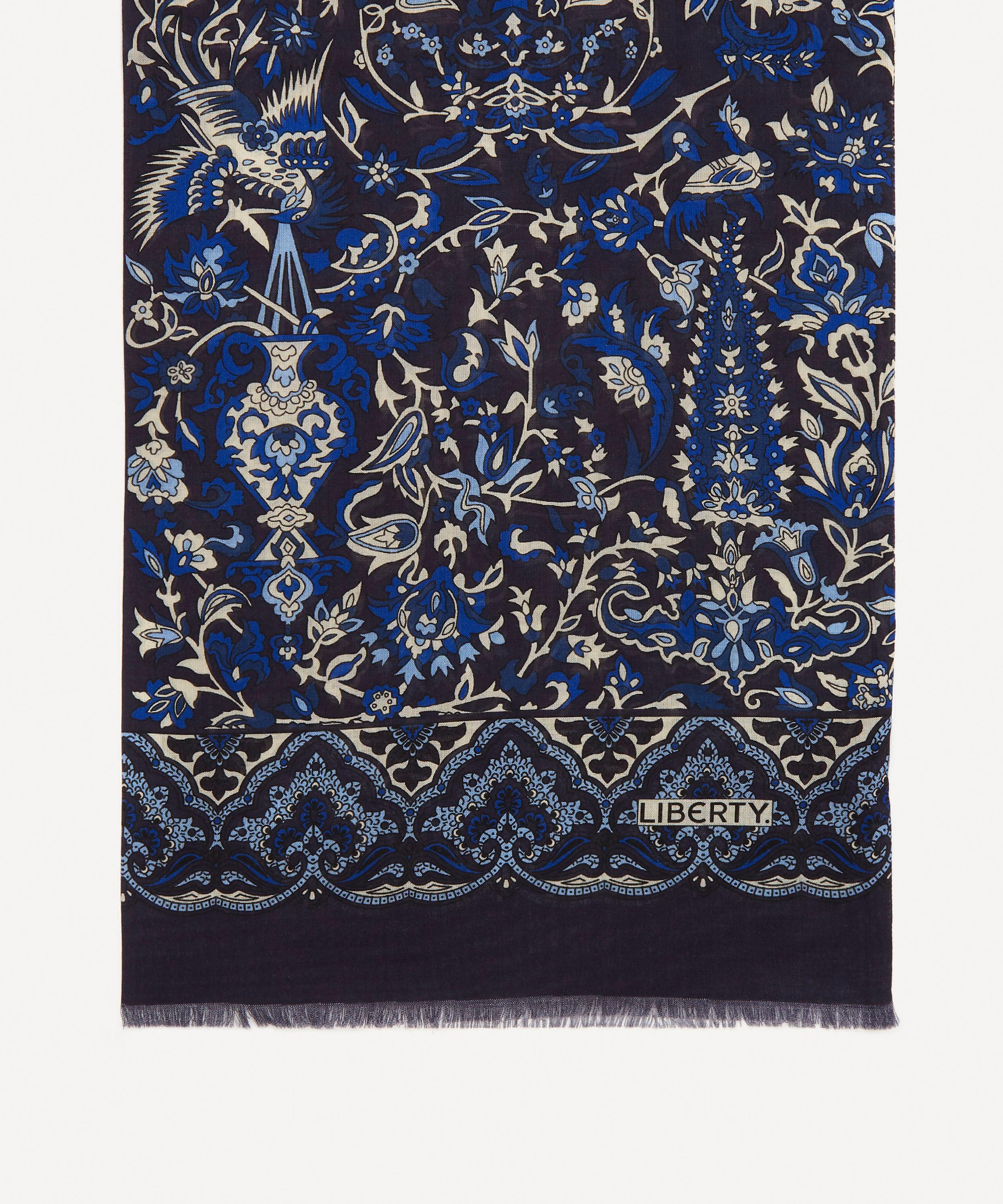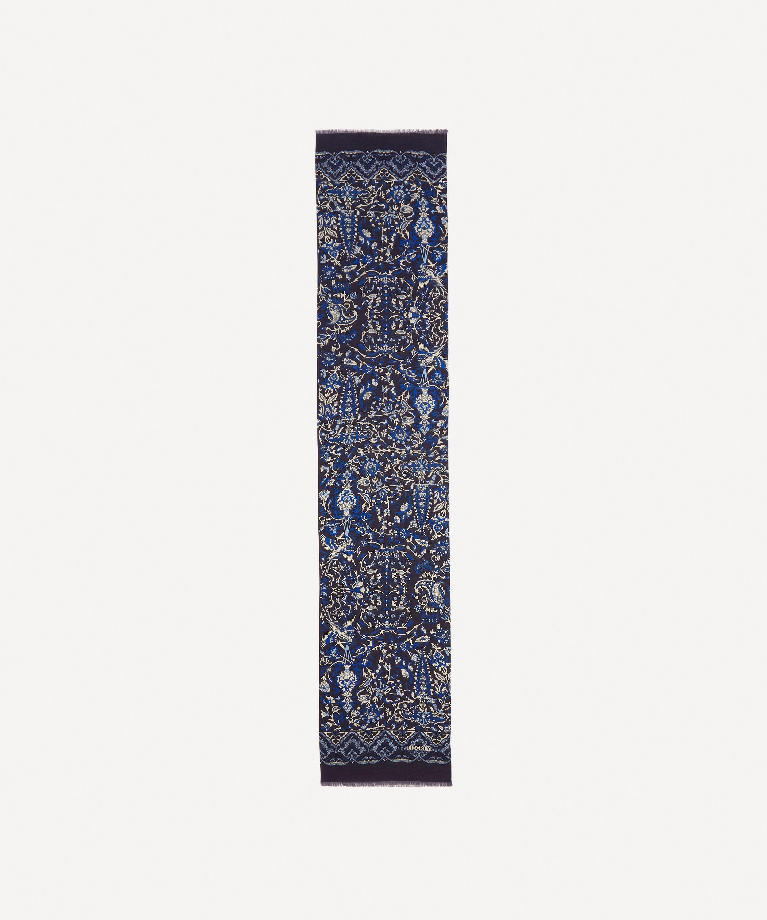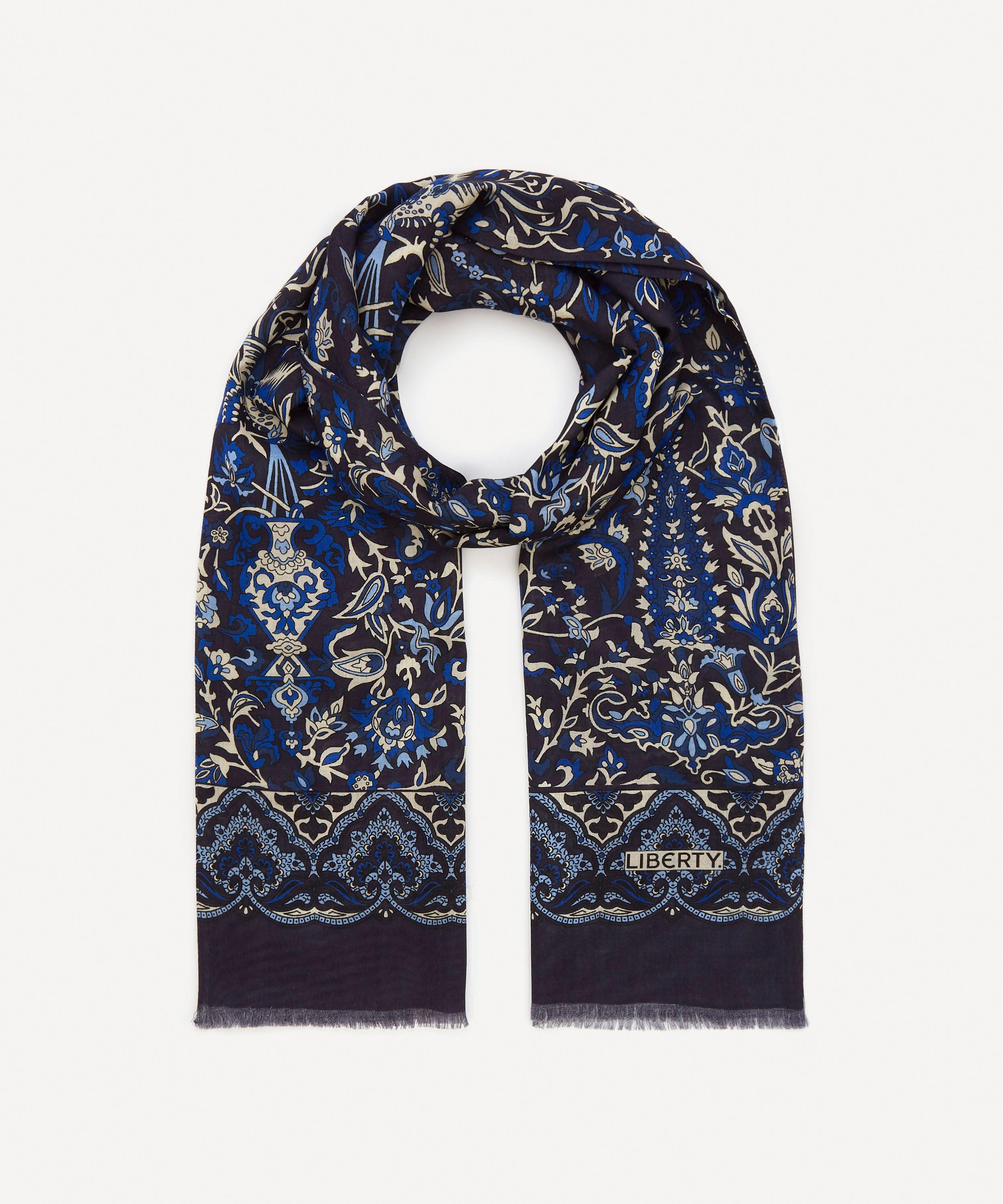 The Harvur fringed scarf features an archival Liberty design, made and printed on a luxe wool-silk blend by experts in England – a celebration of our long-standing love affair with British talent and style.