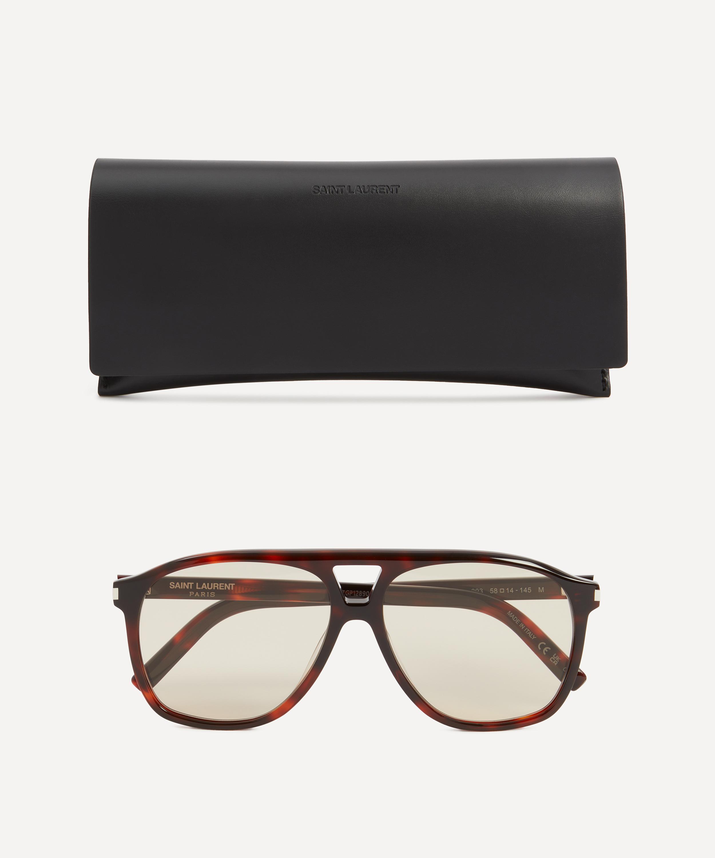 Make a statement with these bold aviator sunglasses from Saint Laurent, showcasing an oversized silhouette that is imbued with vintage-glamour. Crafted in Italy from a glossy acetate in a versatile Havana colourway, this pair feature green tinted protective nylon lenses and a double-bridge design - complete with gold-tone detailing to the temples for an extra luxurious finish.