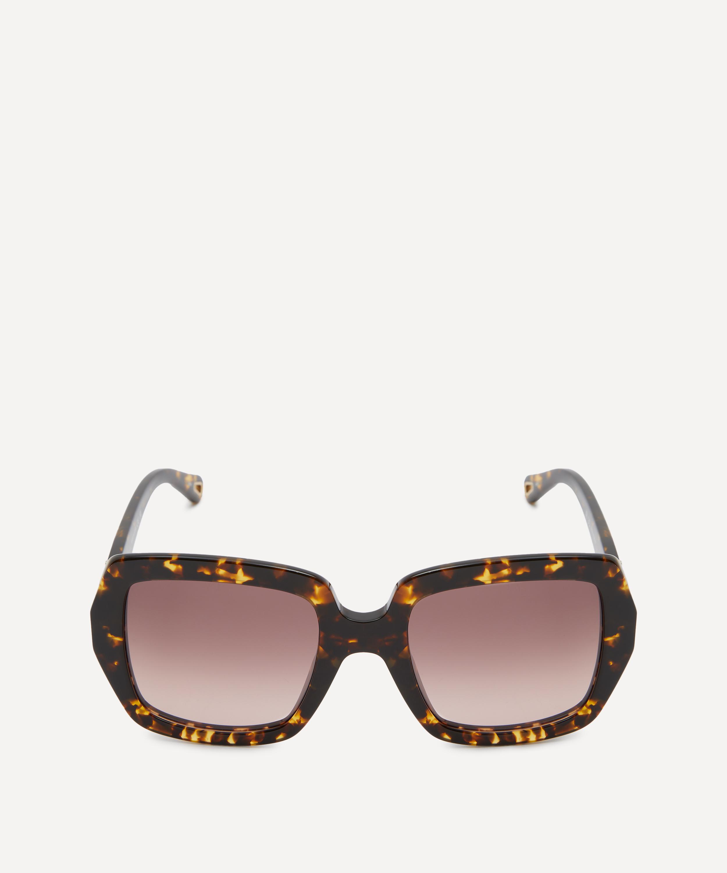 Crafted from glossy acetate in a timeless Havana colourway, these sophisticated frames have been fitted with red-tinted lenses that further accentuate the style's glamorous, retro flair, and are complete with gold-tone details at the temples.
