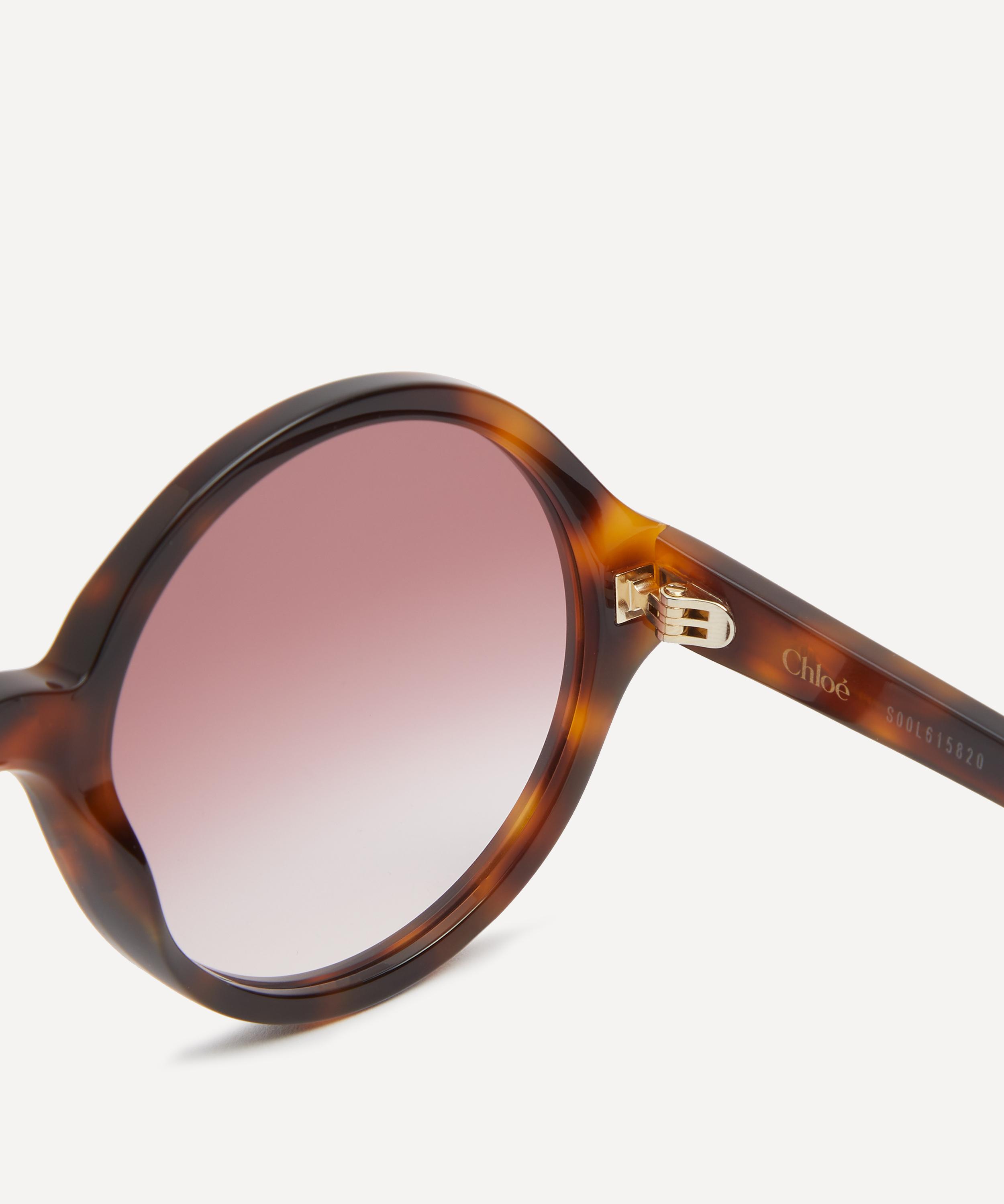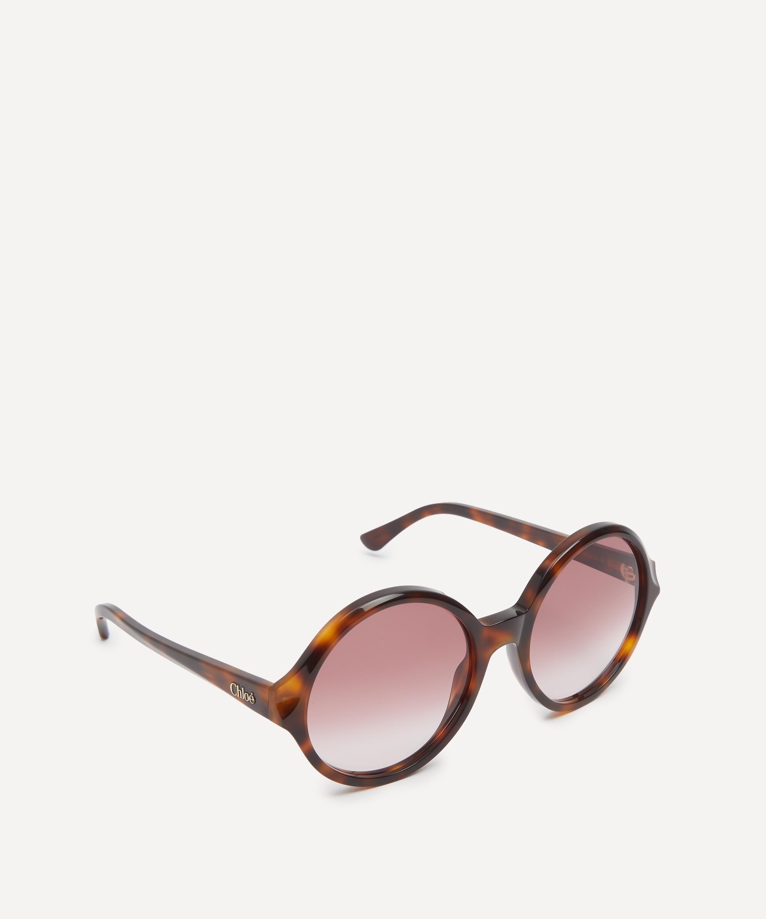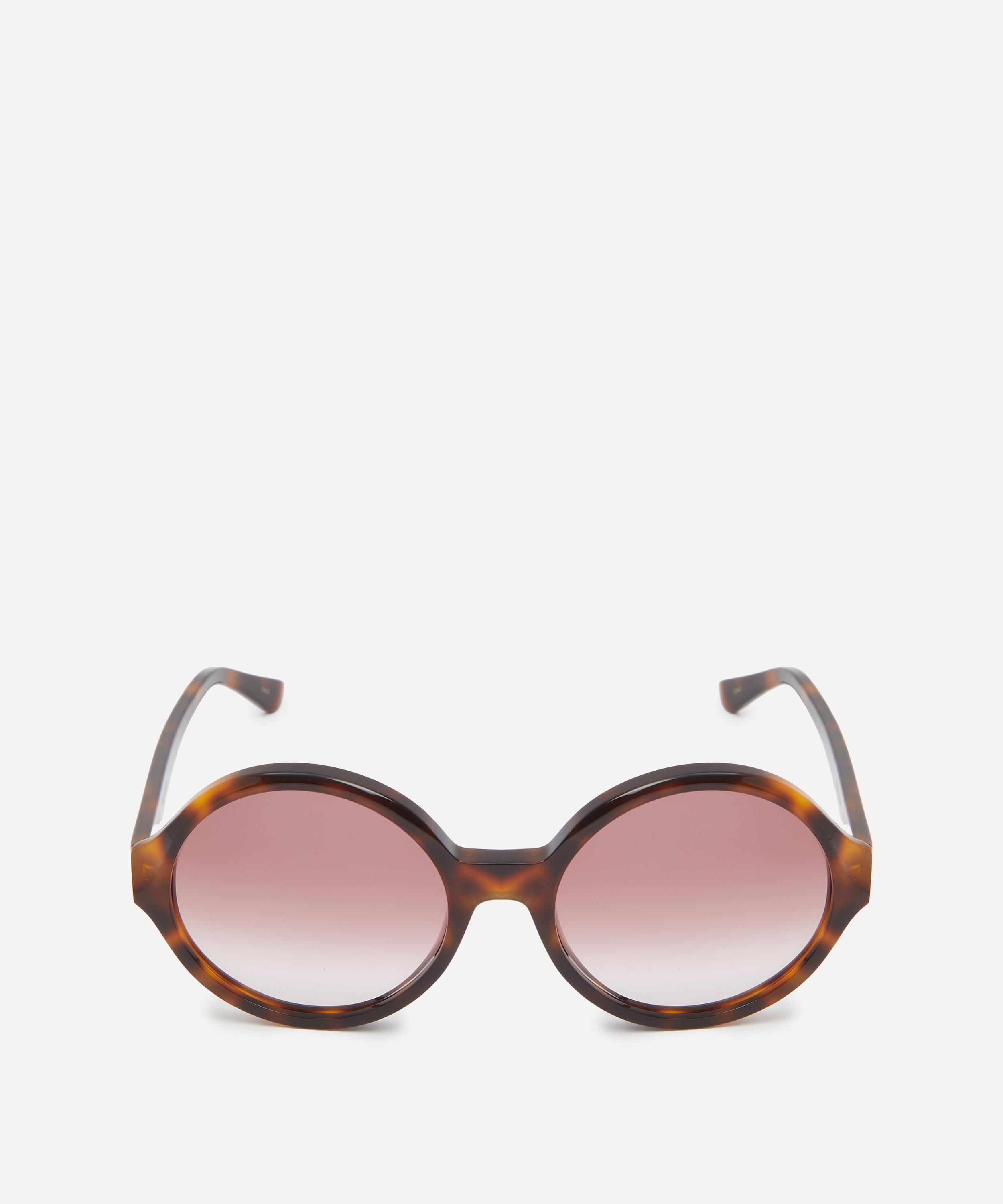 Crafted from glossy acetate in a classic Havana colourway, these soft round frameshave been fitted with red-tinted gradient lenses that further accentuate the style's glamorous, retro flair, and are complete with logo details at the temples.