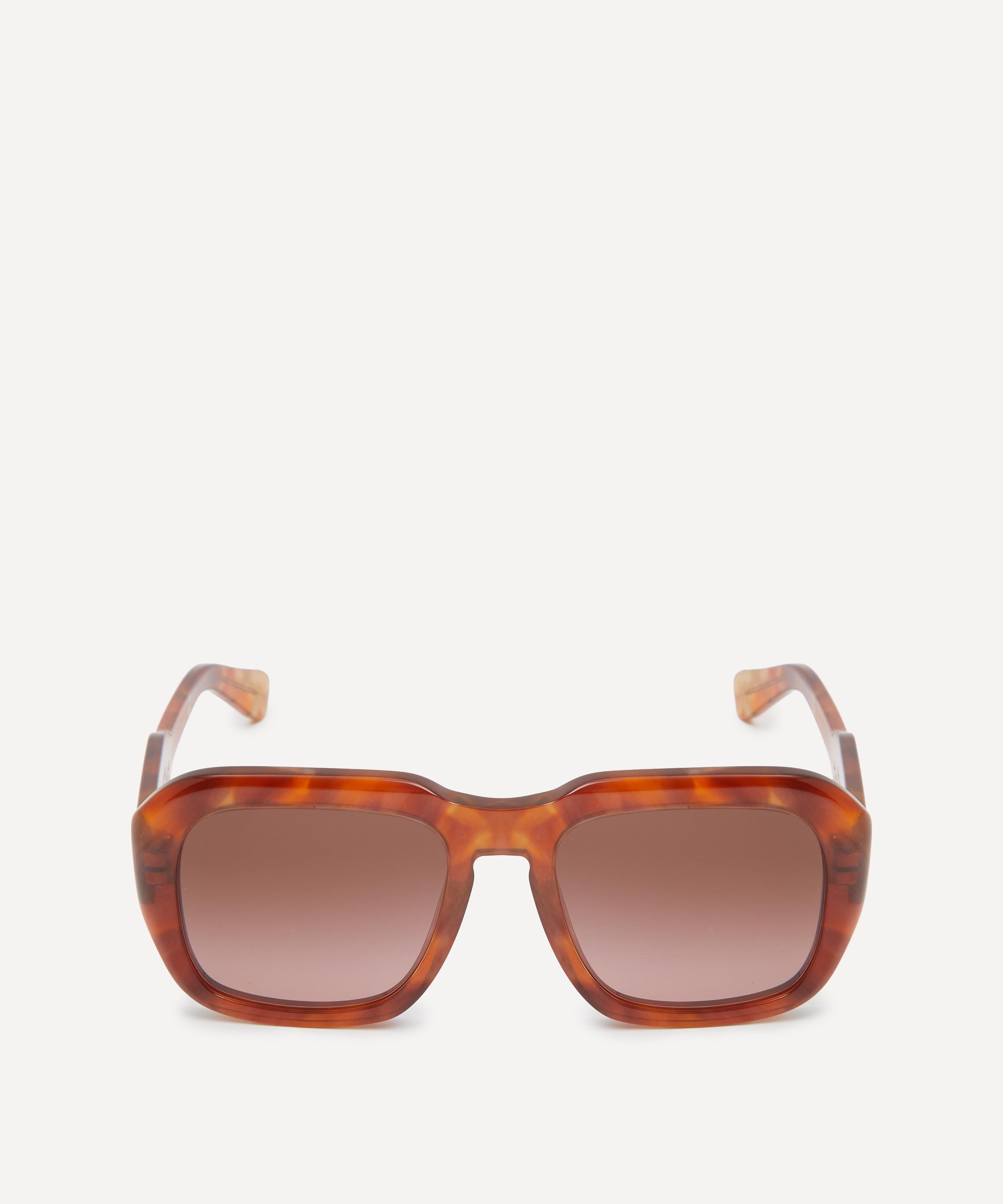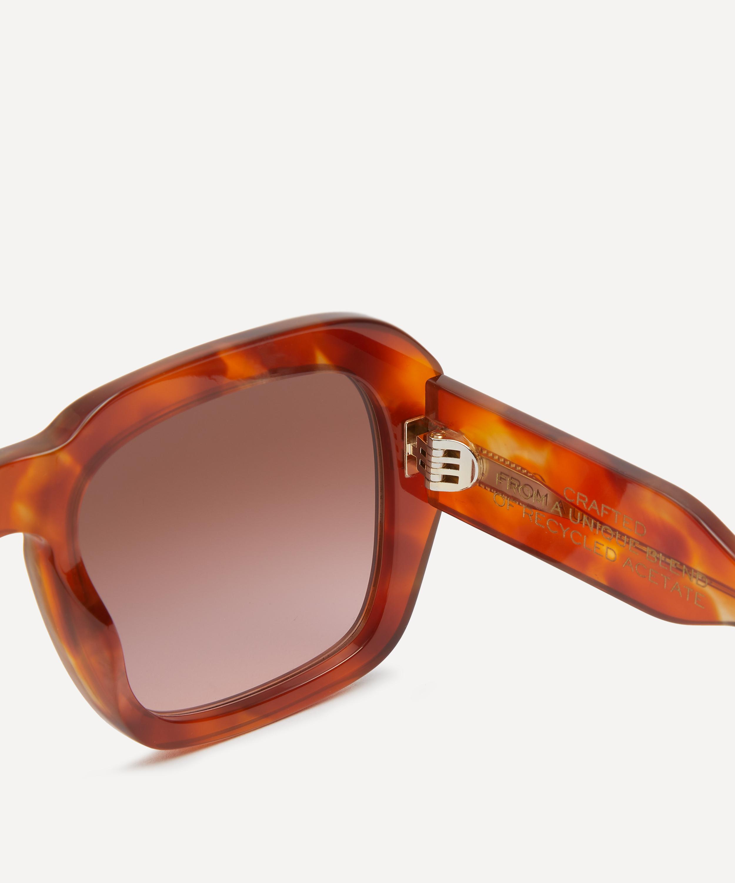 Crafted from glossy acetate in a classic Havana colourway, these chunky square frames feature soft curved edges, and are finished with red-tinted gradient lenses that further accentuate the style's glamorous, retro flair.