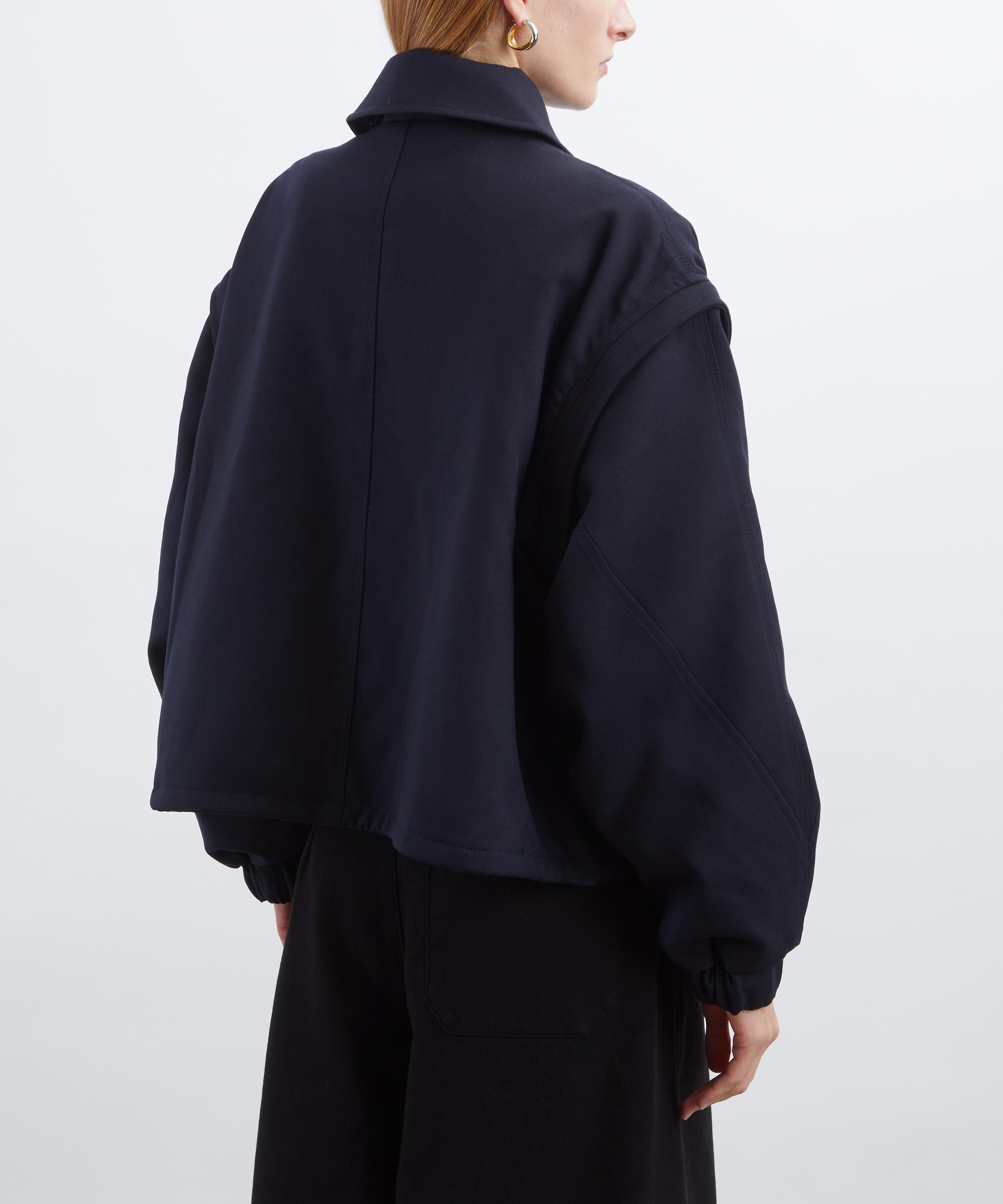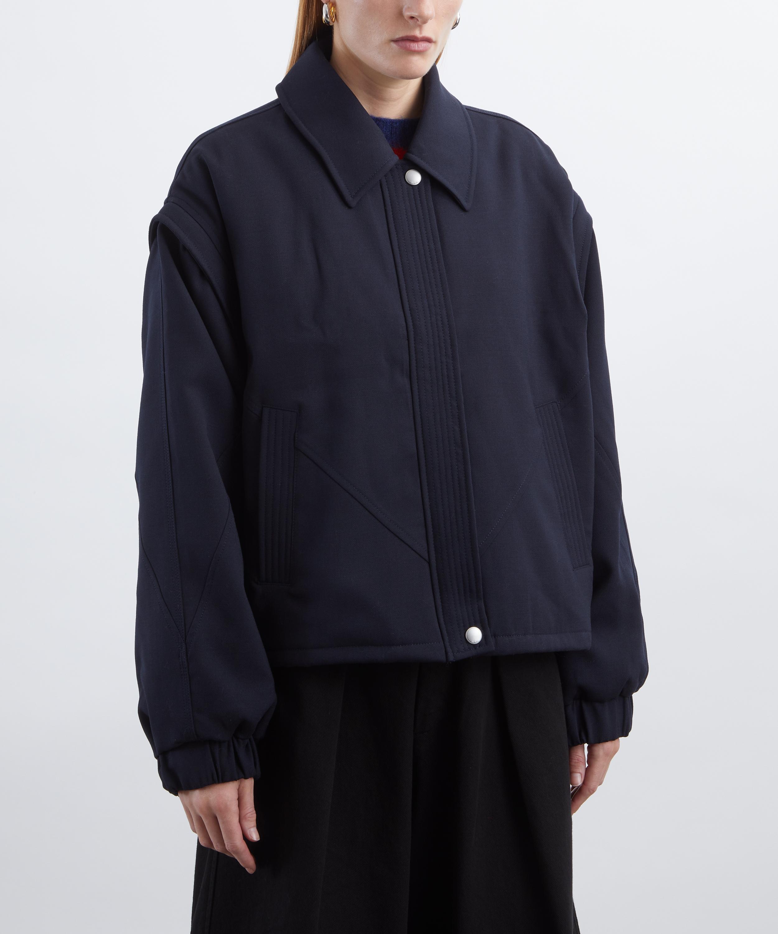 Crafted from a wool blend, this collared bomber jacket is cut for a boxy fit and features a concealed zip fastening, front welt pockets, an adjustable drawcord hem, and detachable sleeves for versatile styling.