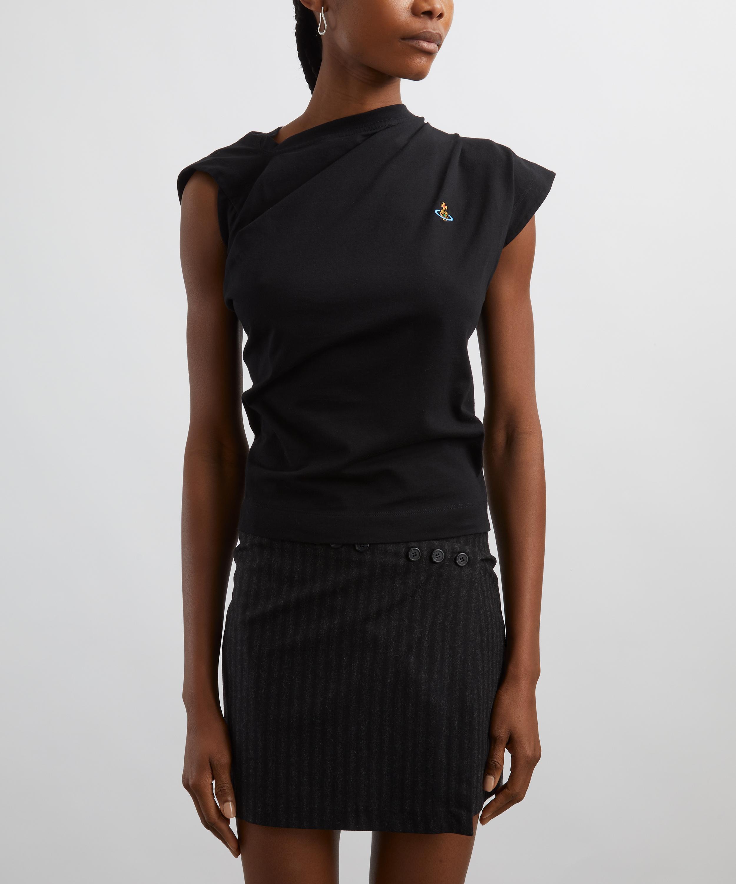Crafted from soft cotton, this abstract t-shirt features Vivienne Westwood’s archival tailoring with a slash-inspired neckline, drape details, and twisted fabric at the back. Finished with a multicoloured orb embroidered on the chest, it effortlessly elevates your casual look.