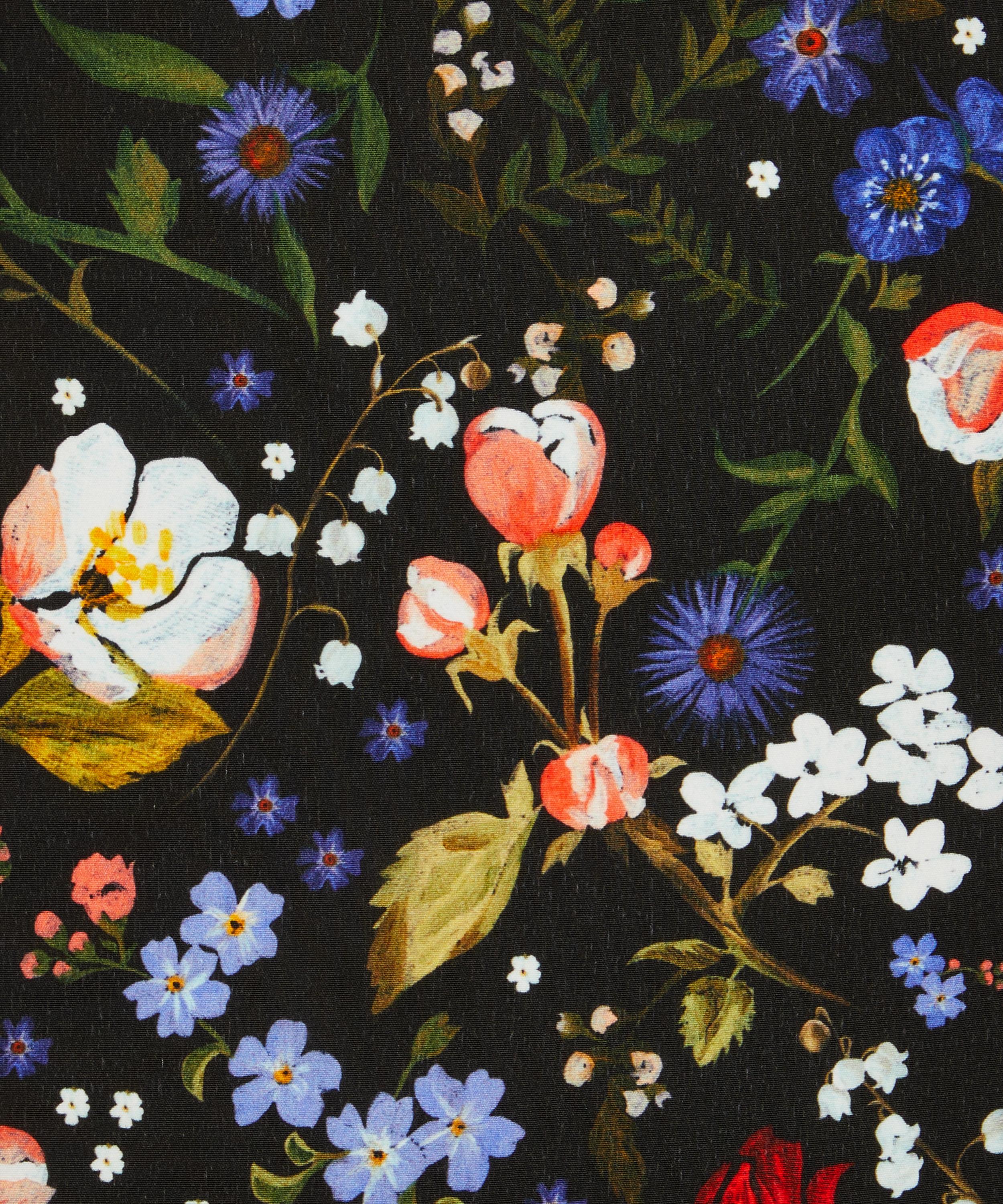Our Heidi print draws inspiration from the fresh blooms of mountain flora, its feminine and youthful forms shimmering with Alpine cool. Traditional hand-painted flowers evoke the chaotic beauty of mountain meadows.