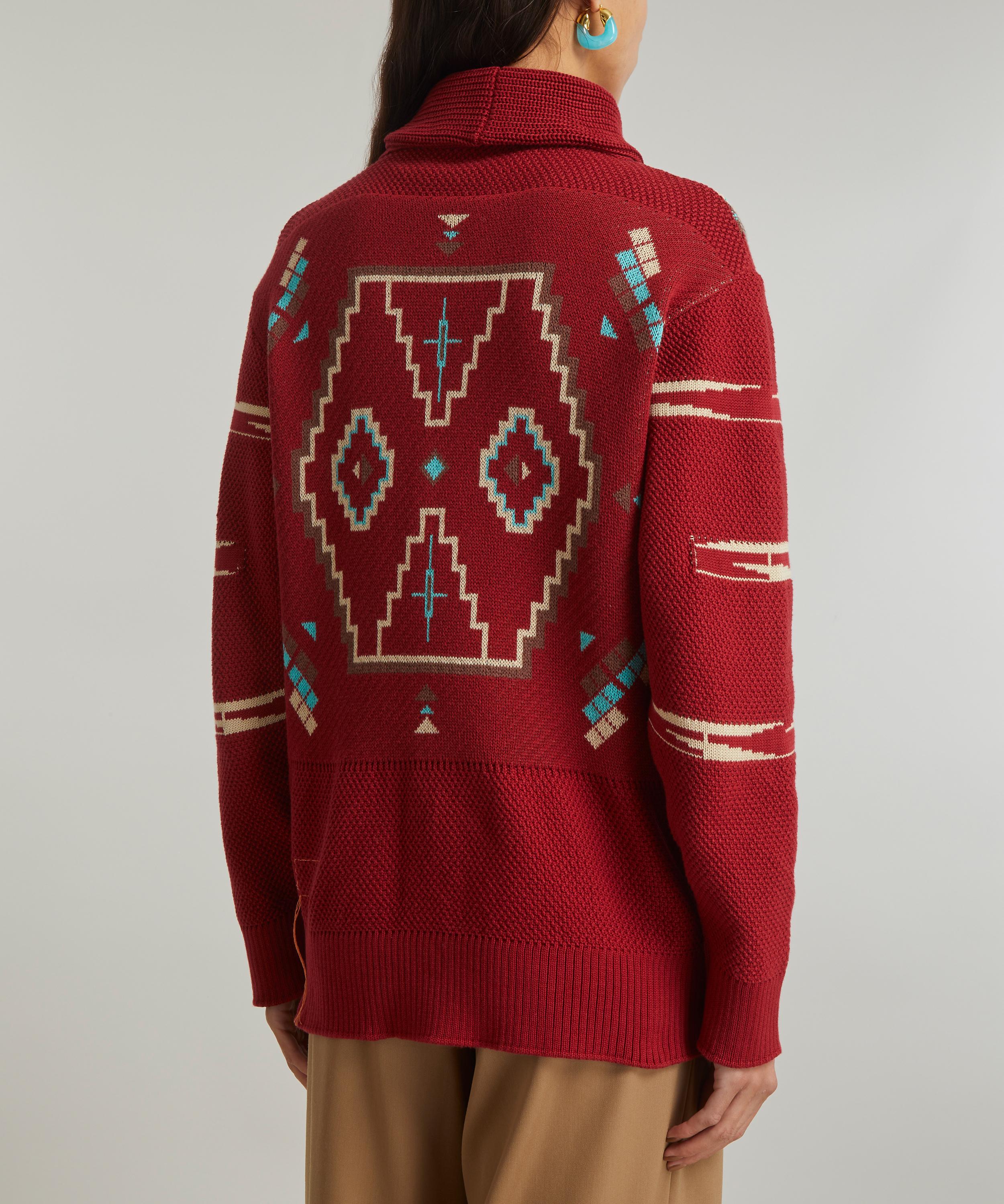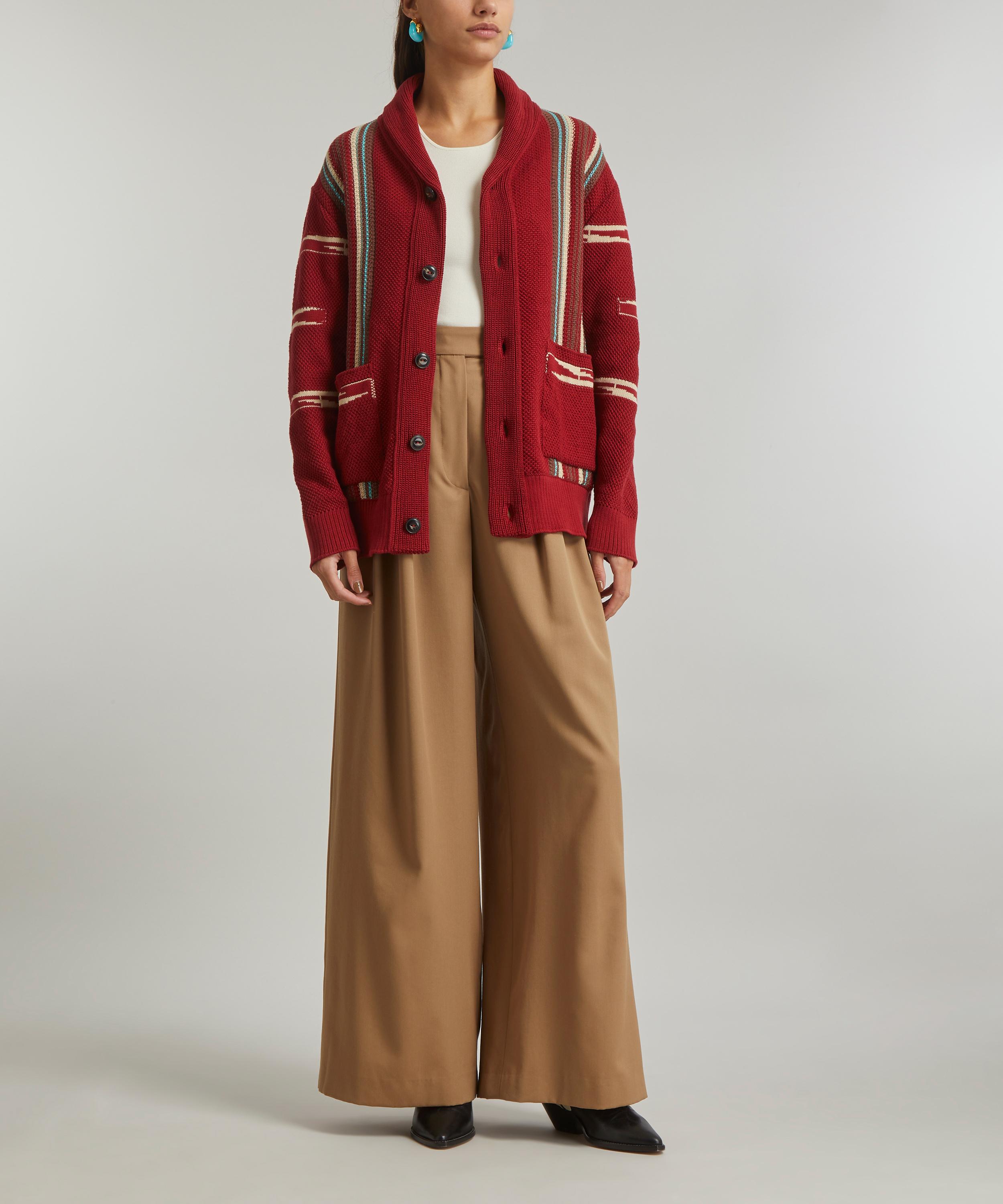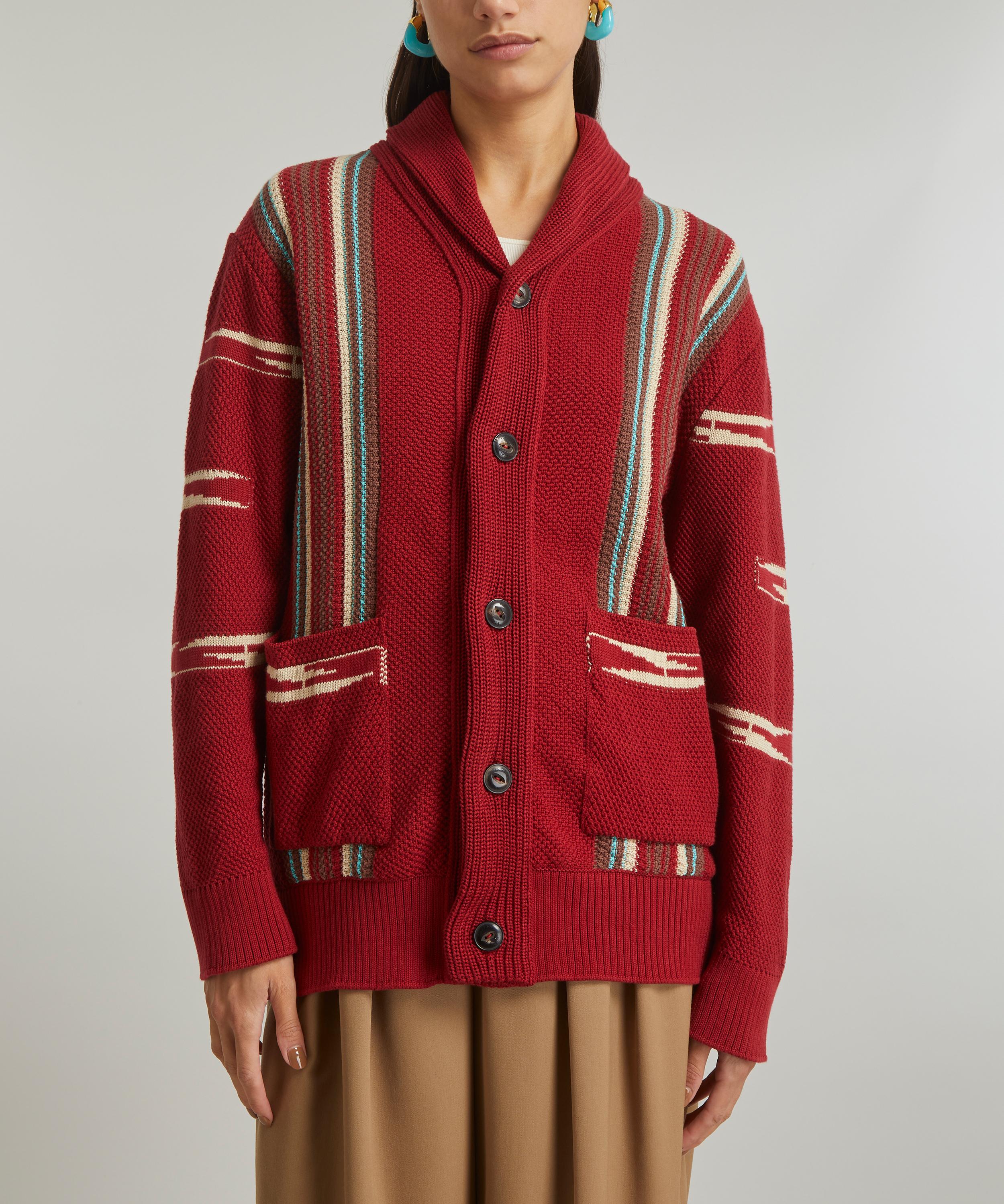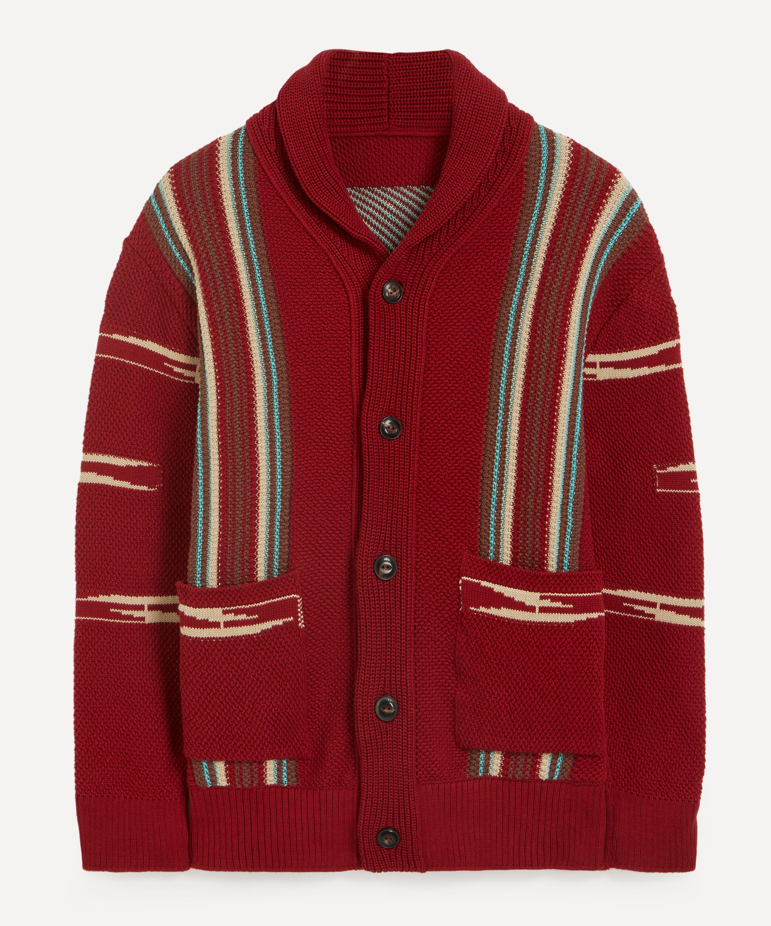 Fusing timeless tailored cuts with exceptional Italian craftsmanship, Fortela’s Henry cardigan perfectly encapsulates the brand’s signature sartorial savoir. Knitted from cotton for a slouchy, relaxed fit with dropped shoulders and a snug shawl-collar, this button-up features two patch pockets and contrasting geometrical-inspired motifs throughout.