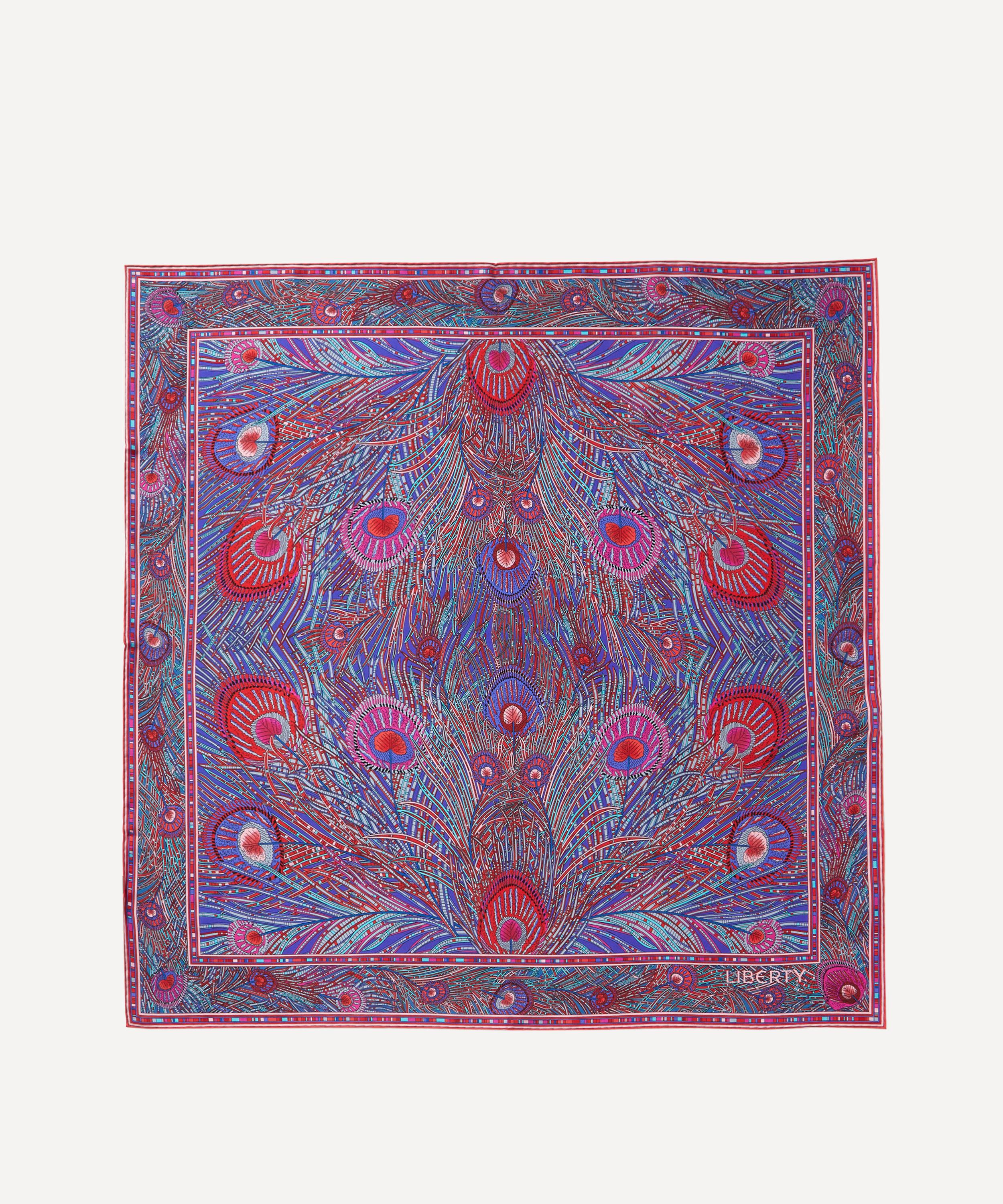 Give your ensemble a finishing flourish with this striking Liberty silk scarf. Credited to an 1887 design by Arthur Silver, founder of the Silver Studio, Hera has been a Liberty favourite since the mid 1890s when it was first printed onto Liberty furnishing fabrics. The peacock feather was a frequently used symbol during the Aesthetic Movement of the 1880s. Pair it with statement earrings and voluminous tailoring for maximalist daytime glamour.