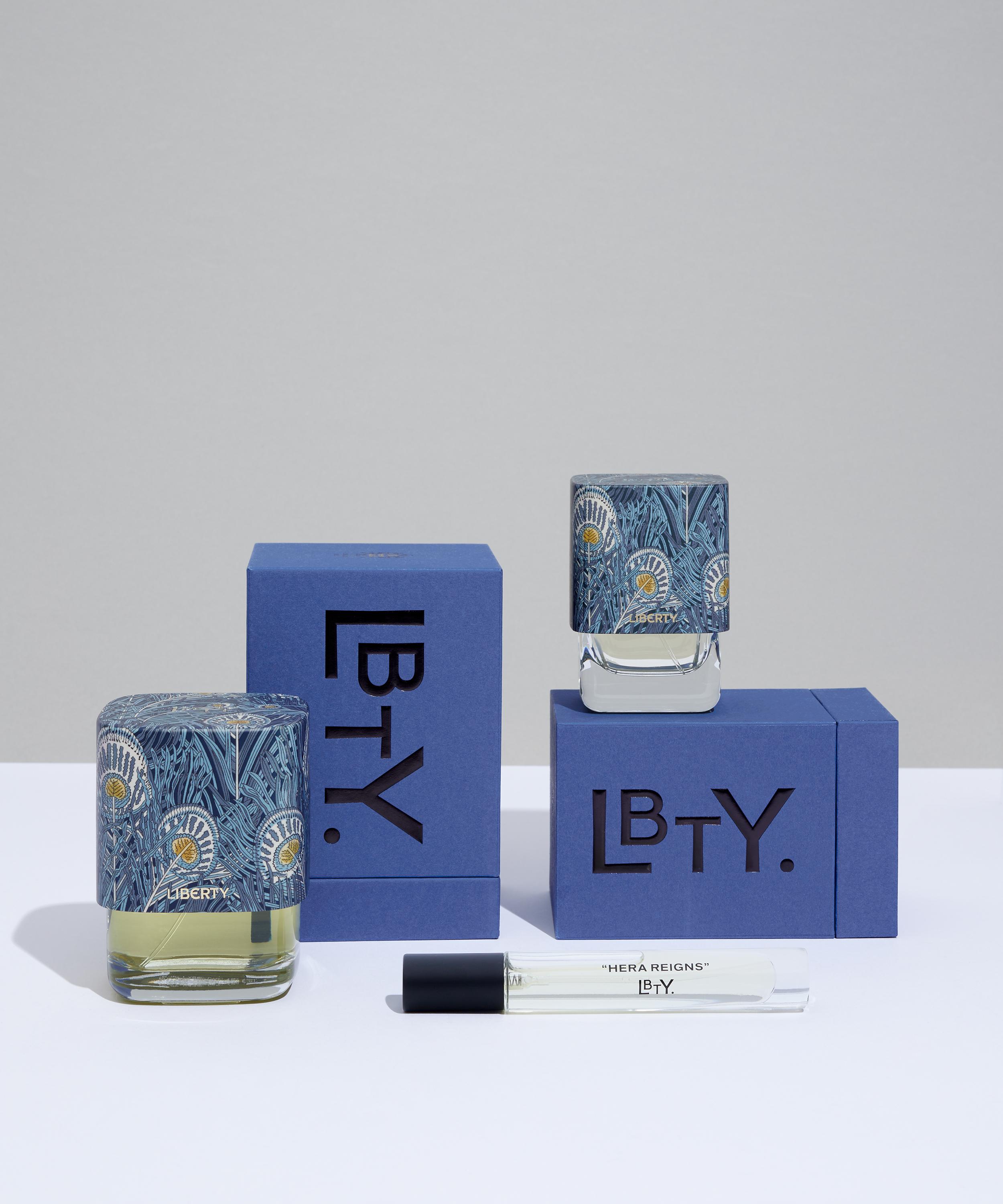 Experience the wondrous world of Liberty in a fresh way with Hera Reigns eau de parfum from the Liberty LBTY. Fragrance collection, reimagining an iconic, archival print in olfactory form.