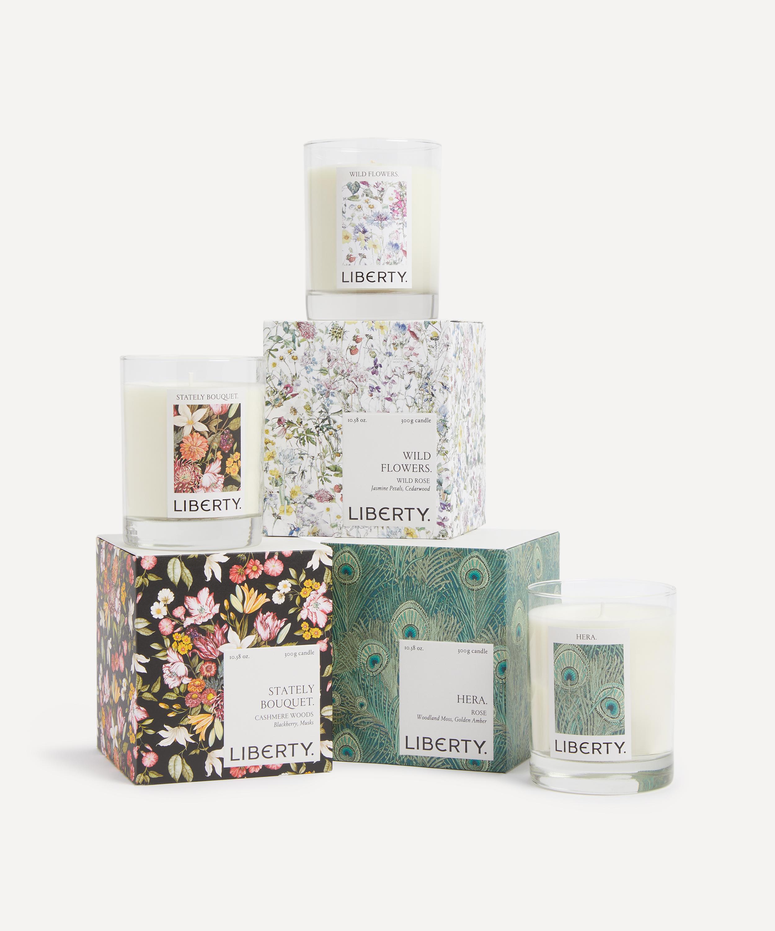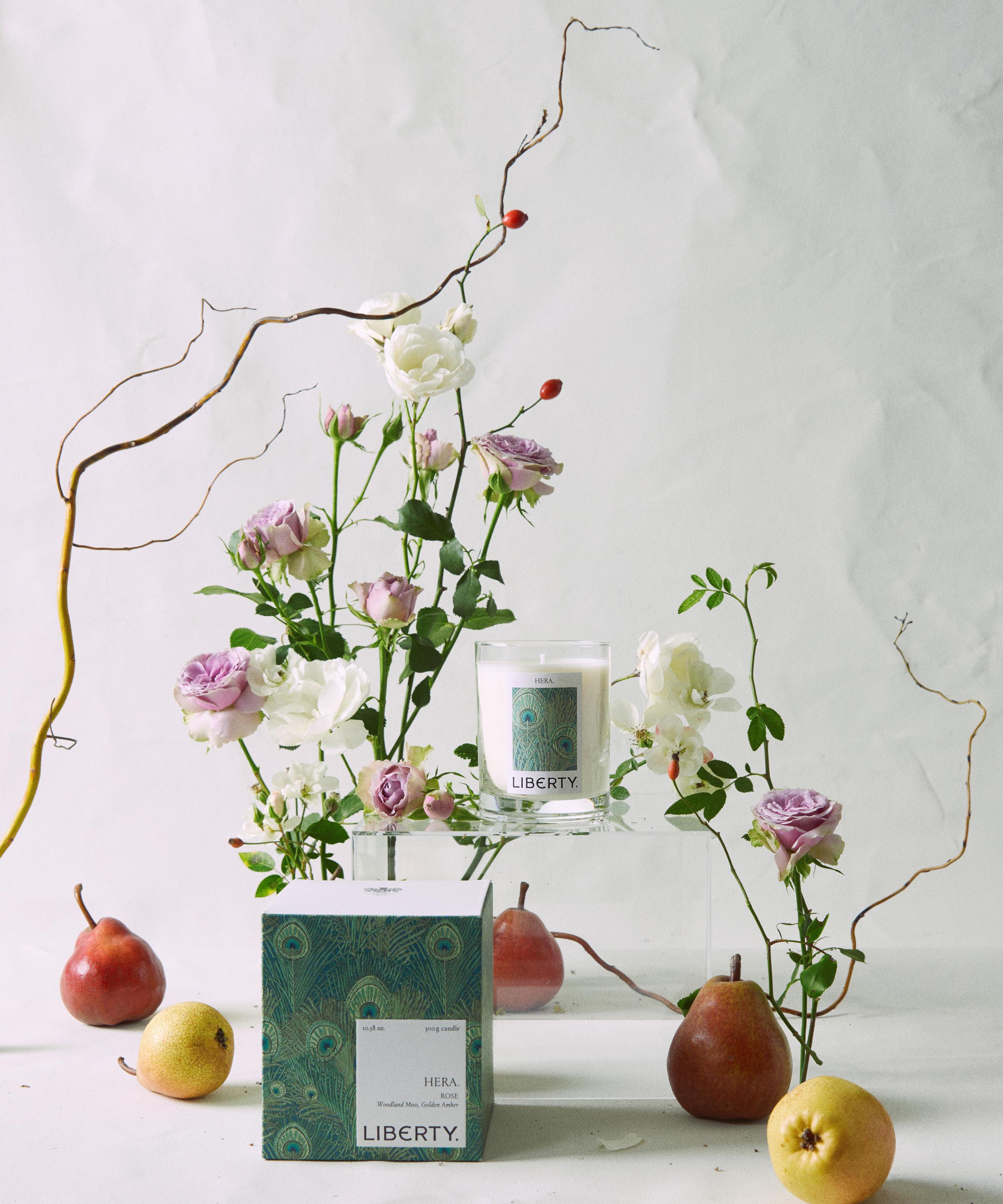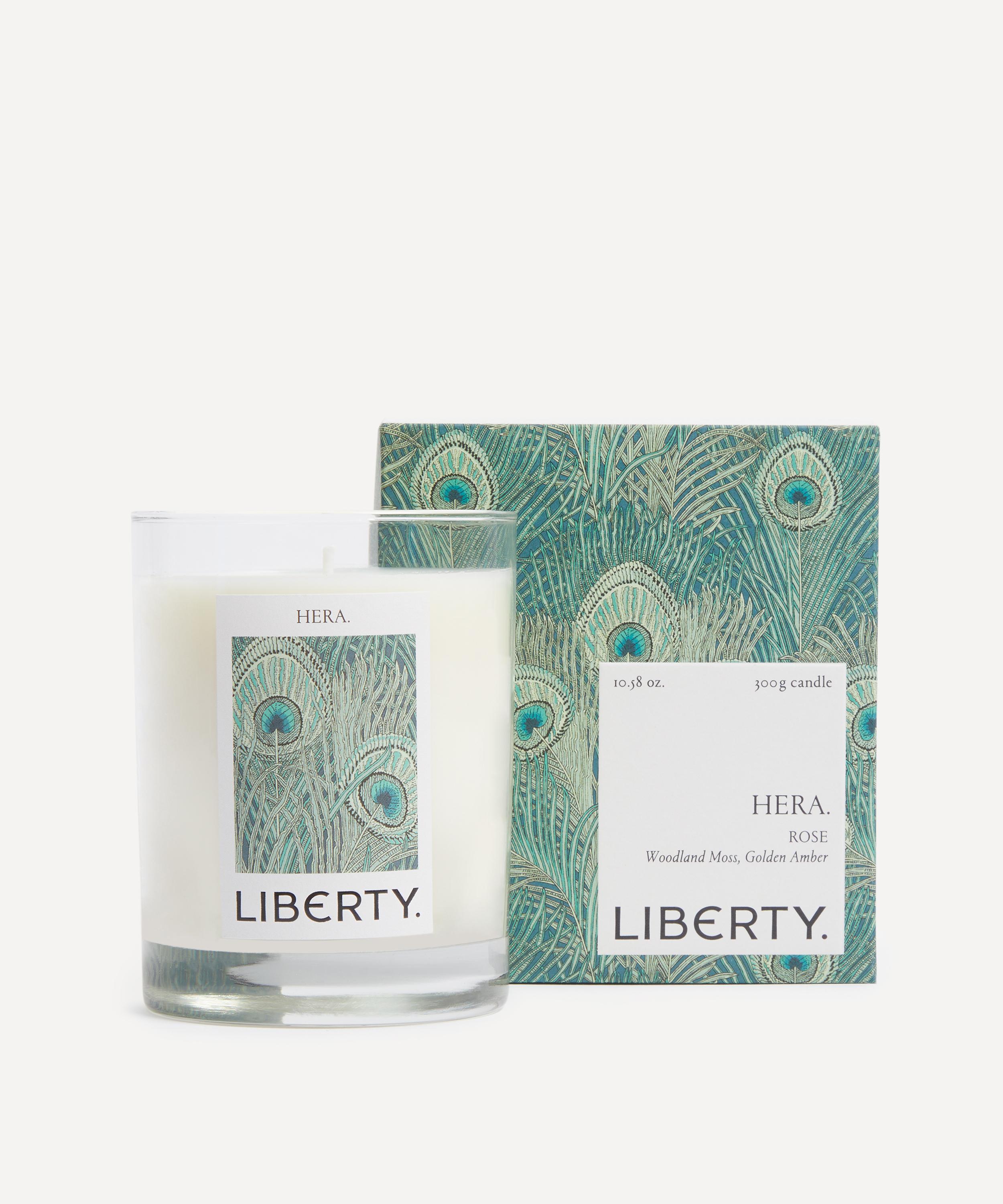 Boasting a rich and bohemian fragrance that is perfect for the home, Liberty's Hera scented candle has vivid top notes of pear and citrus, balanced with a velvety heart of rose, woodland moss and golden amber.