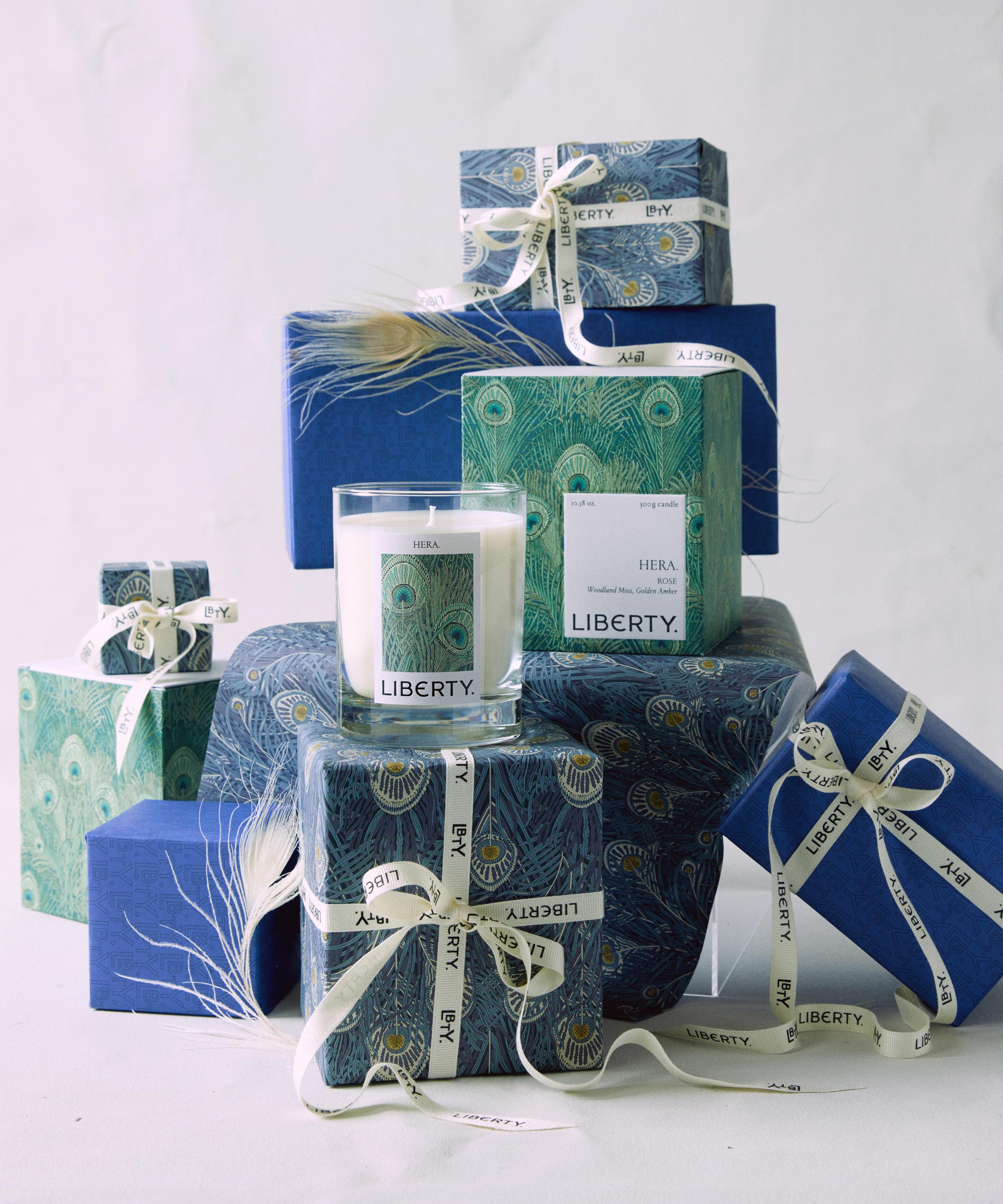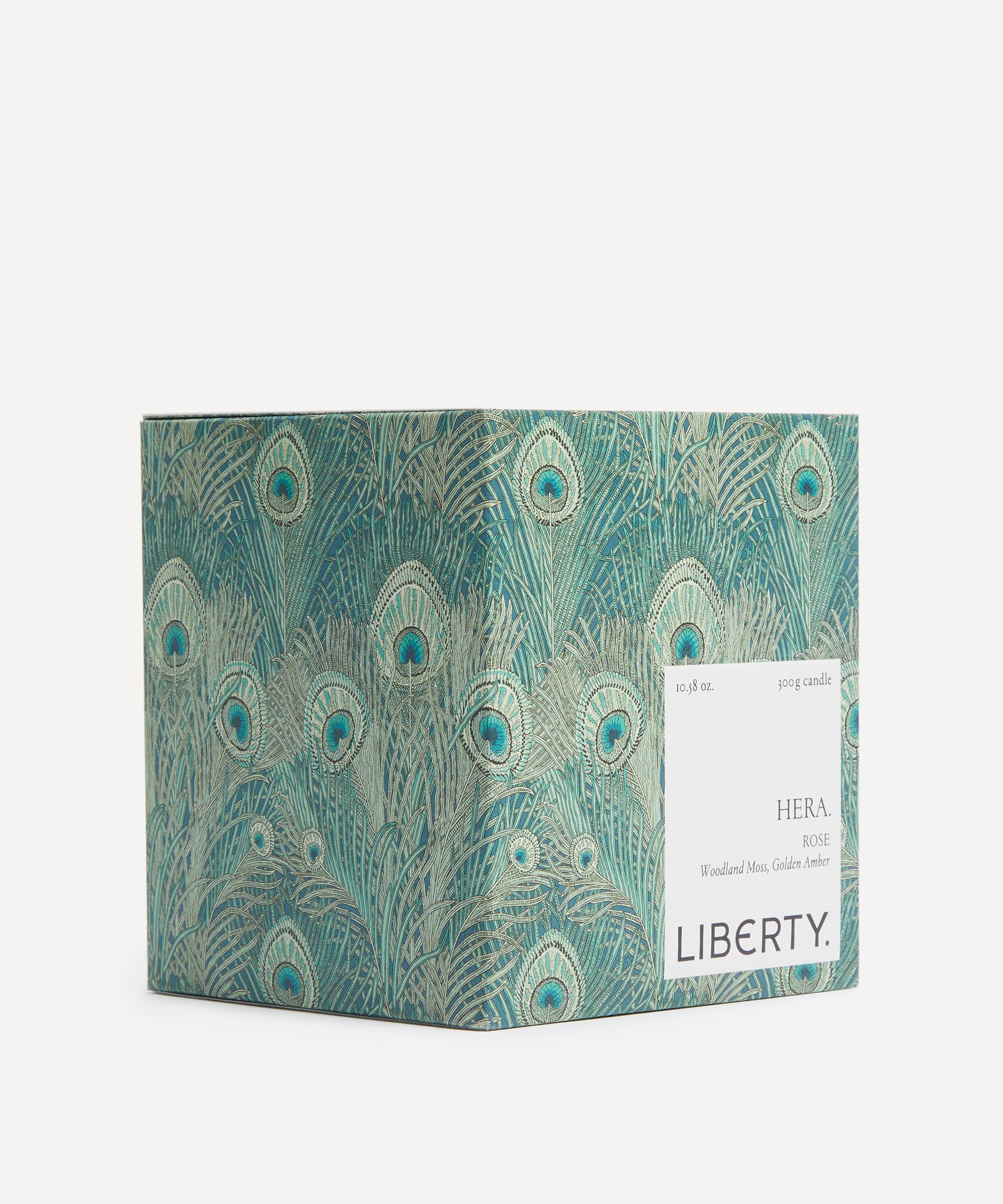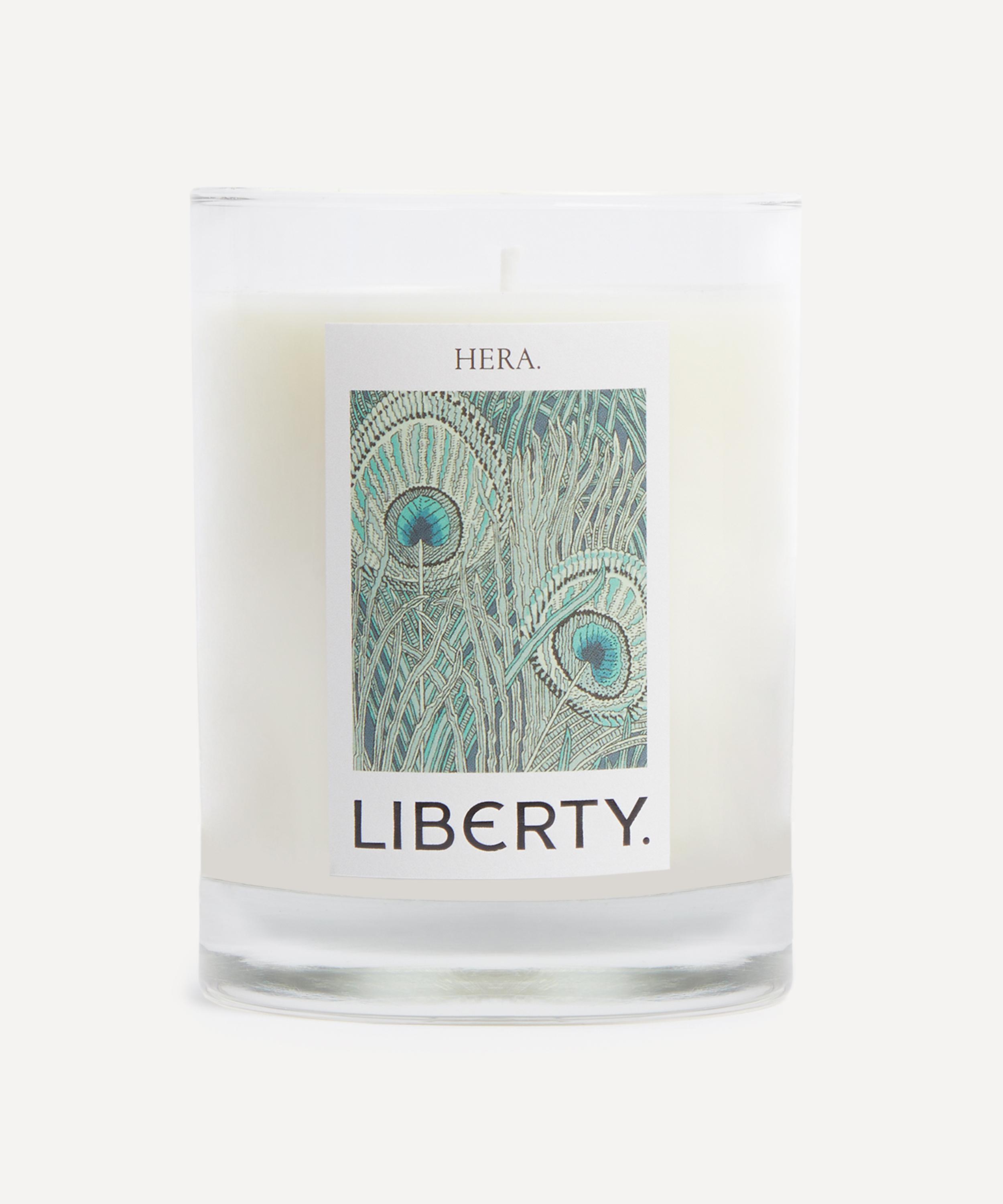Hera’s sinuous peacock feather design evokes the wit and elegance of Oscar Wilde, who famously regarded the Liberty Store as "The chosen resort of the artistic shopper." Imagining a dimly lit drawing room filled with elegant party guests, tempered by the fresh edge of lush botanicals hanging in the cool night air – inspired by Oscar Wilde. Crafted in England with a wax, including soy and coconut, this luxury candle has been hand-poured into a reusable glass vessel and presented in a beautiful box, an ode to the Liberty building itself – perfect for gifting, or for elevating your own mantelscape.