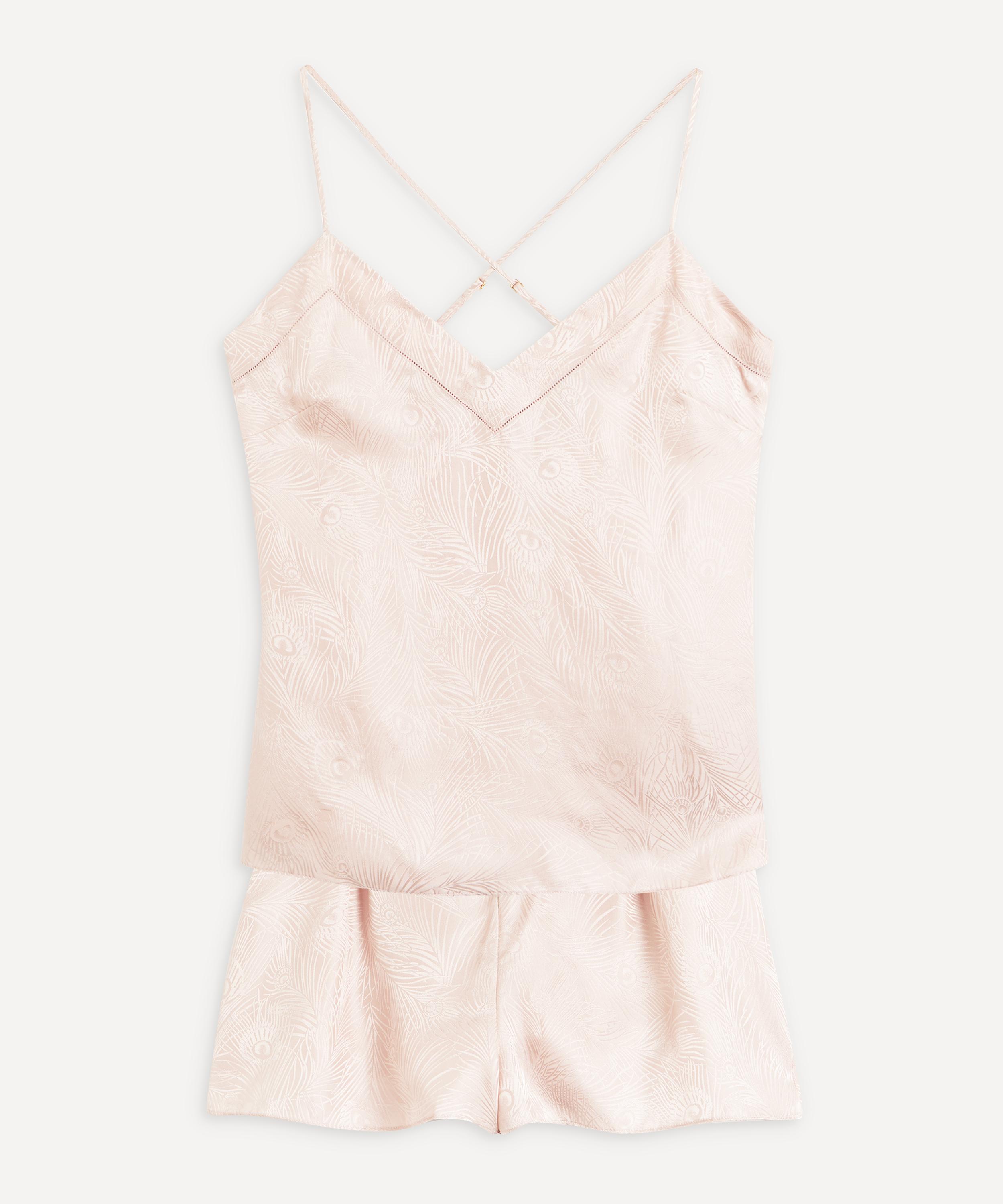Liberty’s cami and short set is created from luminous silk jacquard and woven with our Hera design – a heritage-inspired take on the ready-to-wear pyjama trend, designed in our London studio.
