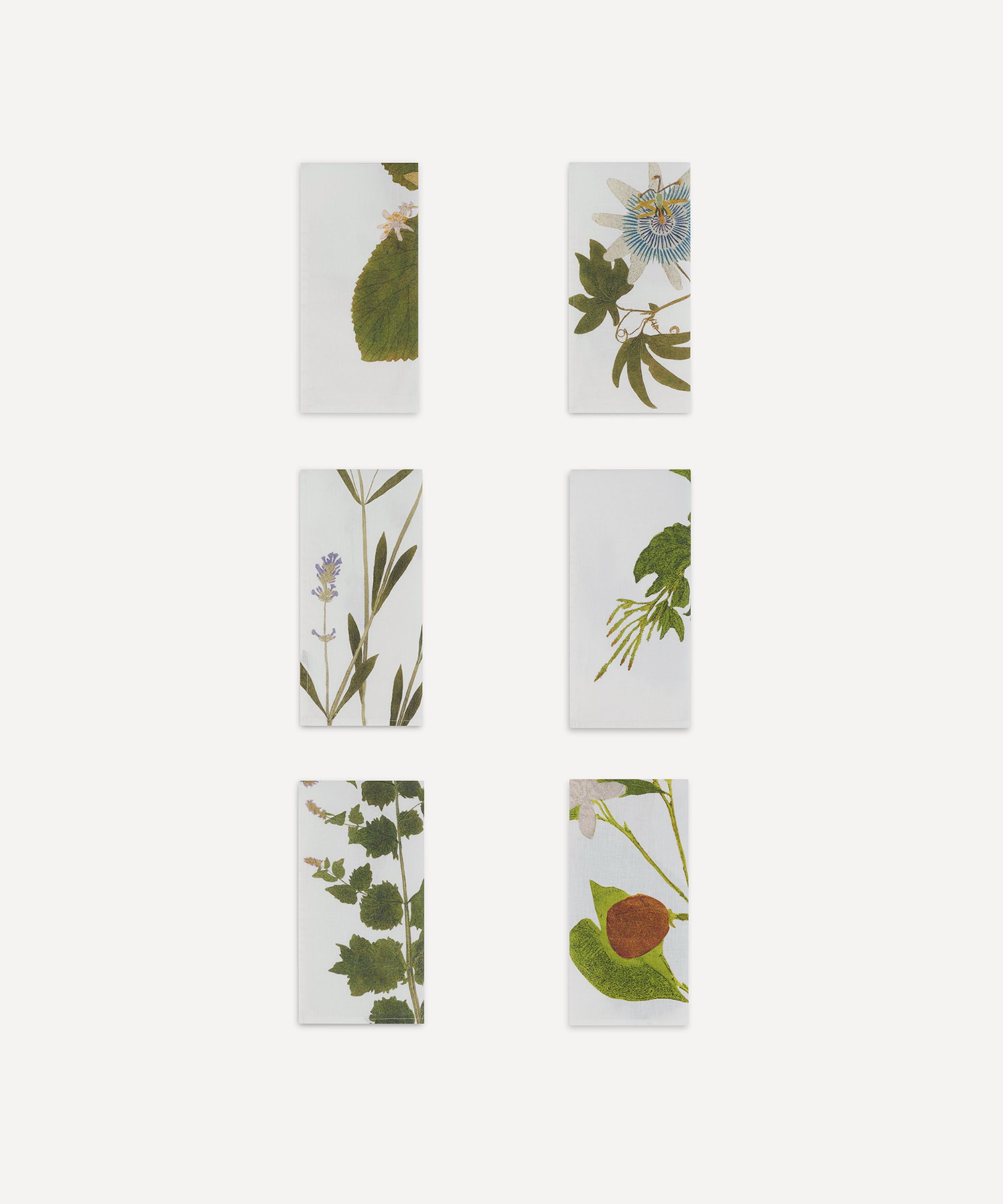 A veritable feast for the senses, this napkin set is characterised by illustrative botanicals and a slightly crumpled texture - each napkin is infused with sweet tisane herbs to bring enticing aromas to your table setting, encouraging us to unwind, to calm and to heal. Use to showcase gleaming cutlery and sparkling glass at your next dinner party.