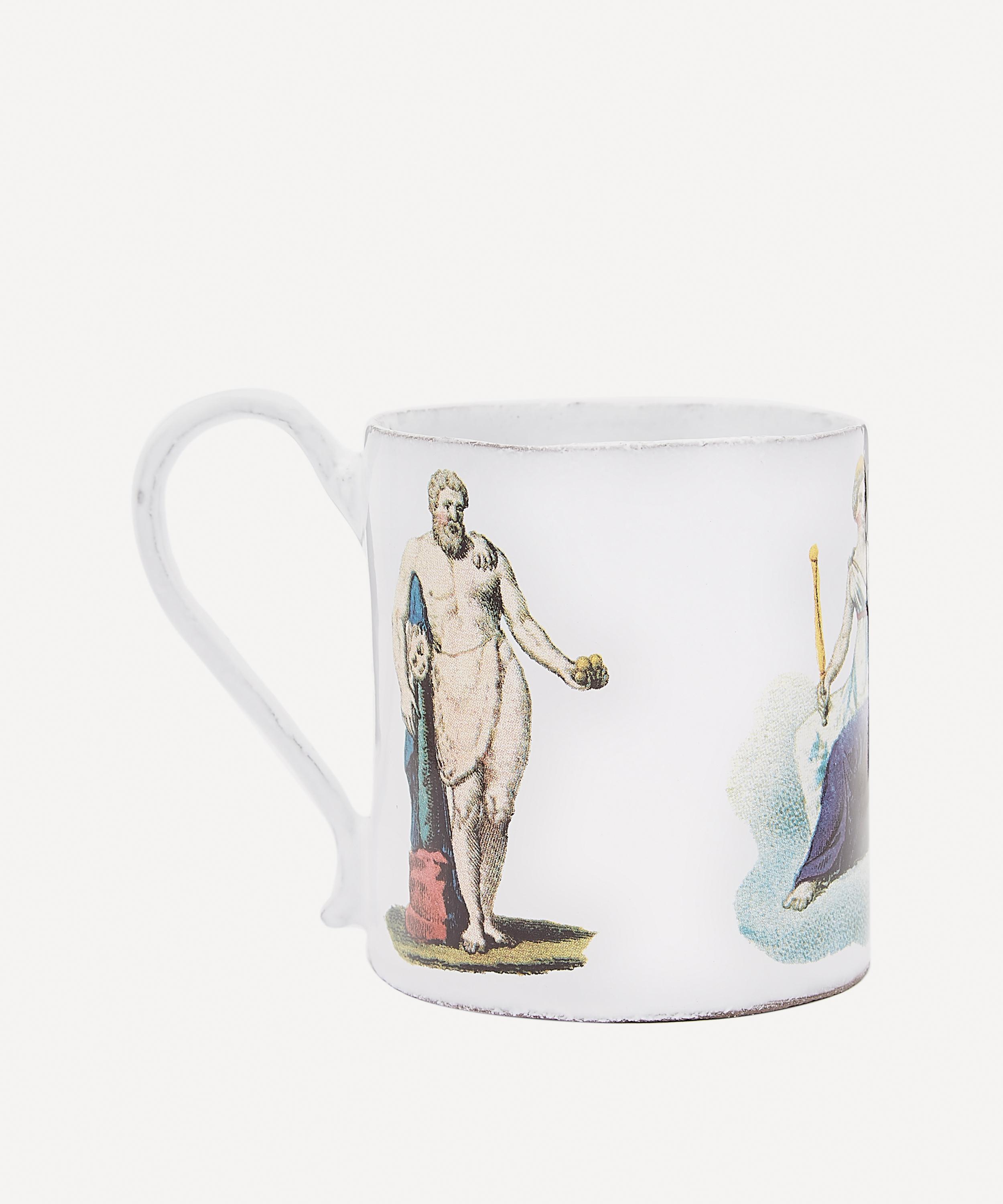 Votary of pre-industrial fabrication, Astier de Villatte is celebrated for being the one and only studio in Paris to hold and harbour the traditions of artisanal ceramic production. Restoring the ancestral systems of moulding and stamping, the Fortuna Apollo mug is made using handcrafting techniques from the Middle Ages which involve moulding a handmade sheet of clay, double firing the ‘biscuit’ piece and glazing the product in white enamel – a lengthy process that involves a drying time of up to one month. Characterised by John Derian's découpage, the mug is engraved with the brand’s signature crest - depicting an interlacing A & V - alongside the initials of one of the 40 master artisans who created it. Each handmade piece tells a beautiful story, it romances and imparts a sense of nostalgia into its owner. Pair with other ornate mugs and coffee cups from the collection for a coordinated tea party setting.