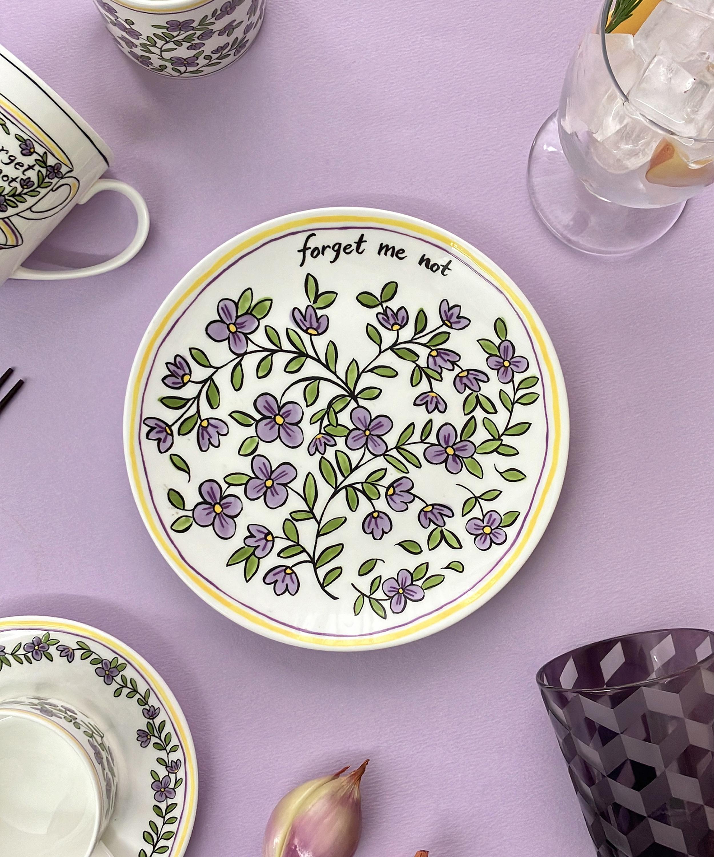 Take an artistic approach to tablescaping with the Heritage Forget Me Not salad plate from Twig New York.