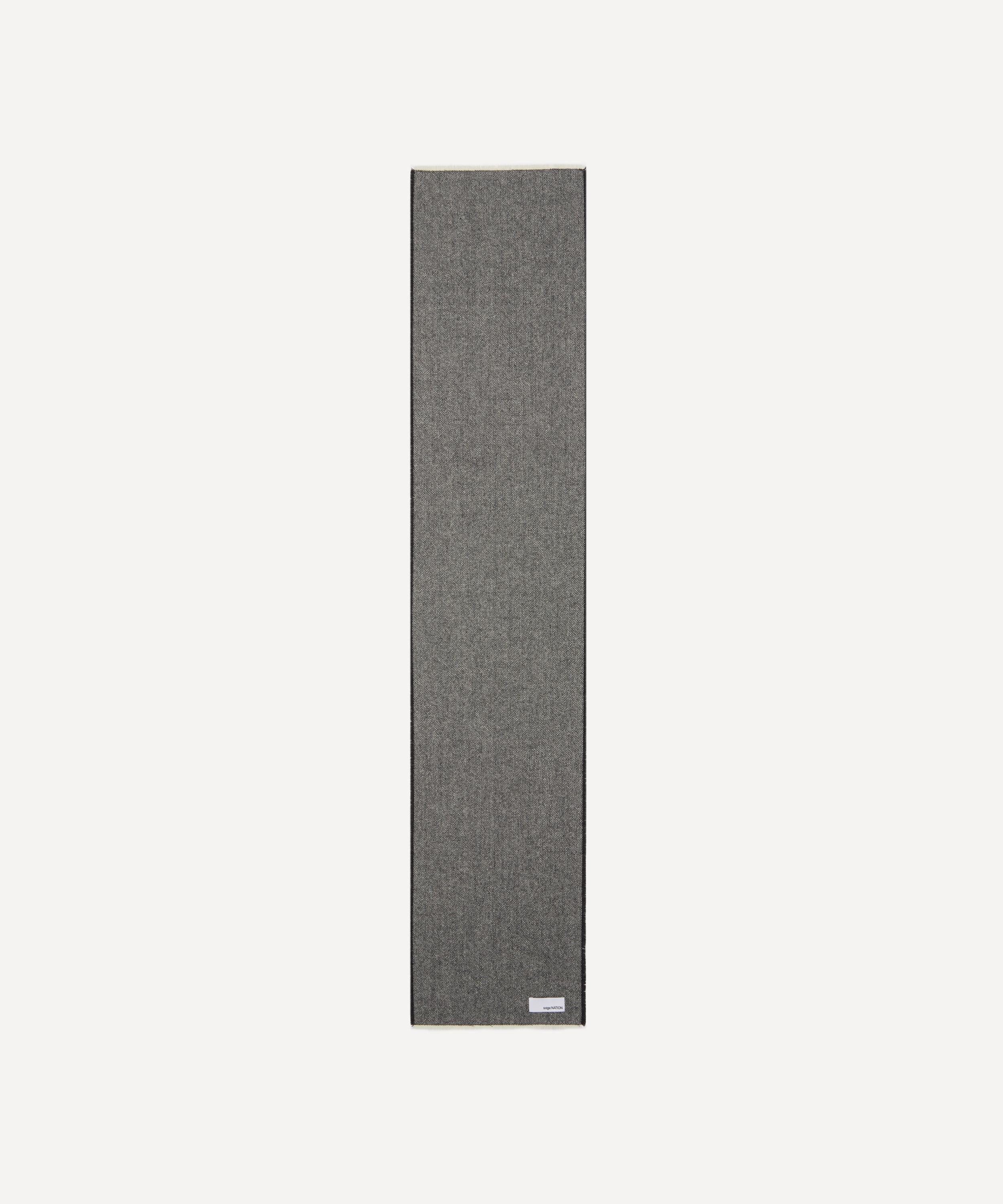 Crafted from grey wool with a subtle Herringbone pattern, it is finished with delicate eyelash fringed edges. A logo patch gives the piece a final signature touch. Wrap up in colder months and pair it with other conceptual pieces, including the brand’s clothing.