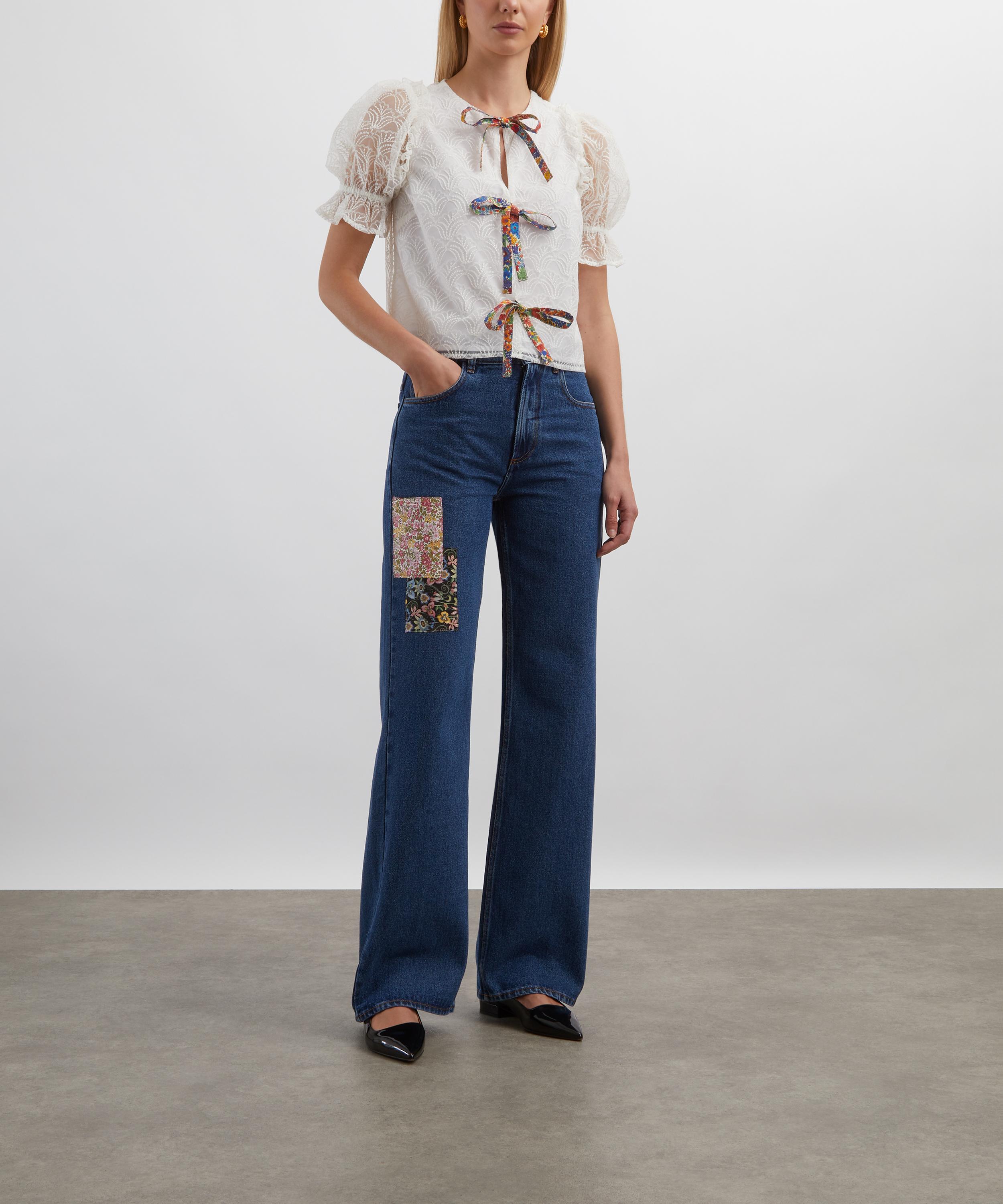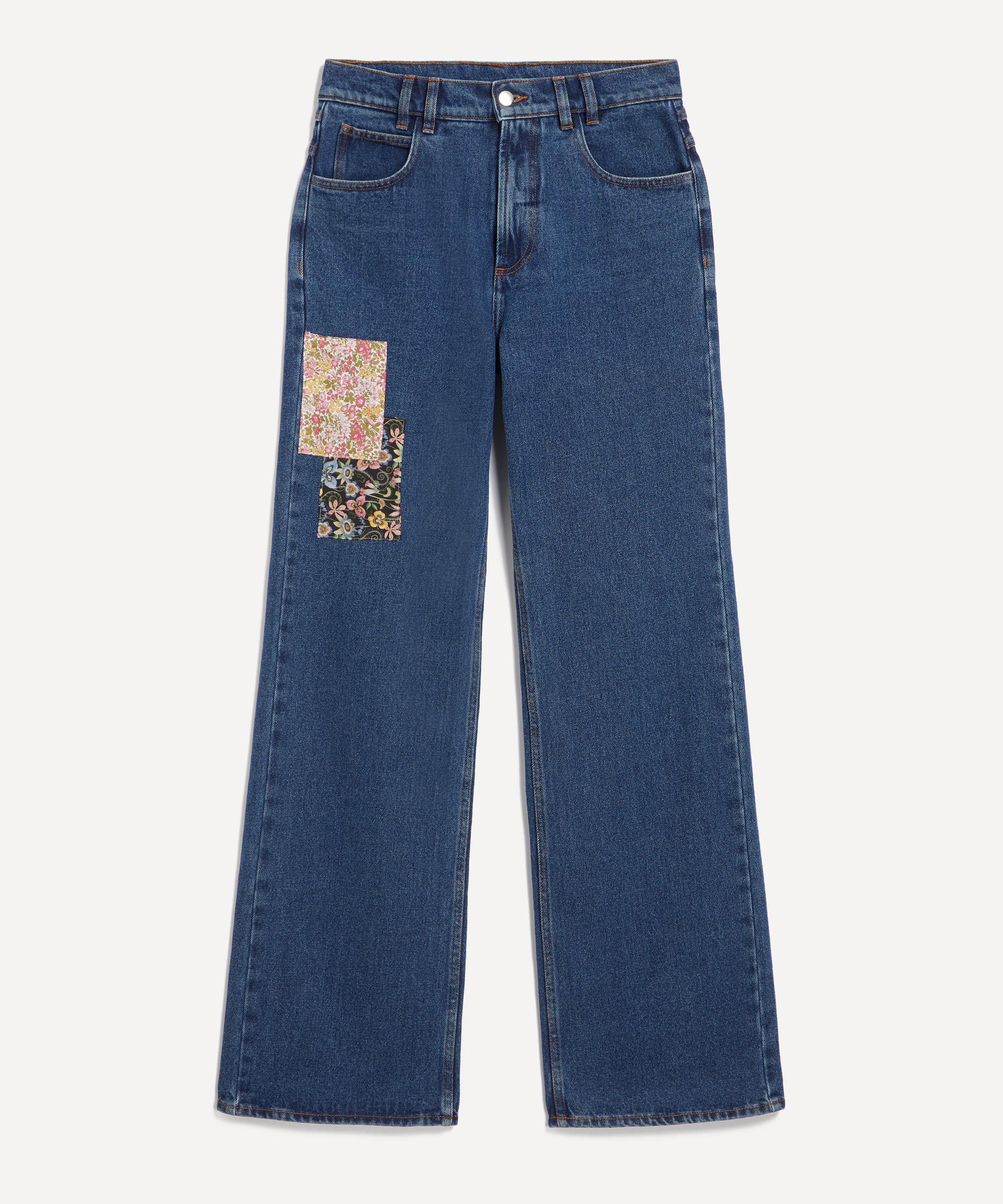 Easy and effortless, these vintage-inspired jeans feature a flattering high rise and relaxed wide-leg. Appliqué patches in deadstock Liberty fabric add a unique, elevated twist to your everyday denim.