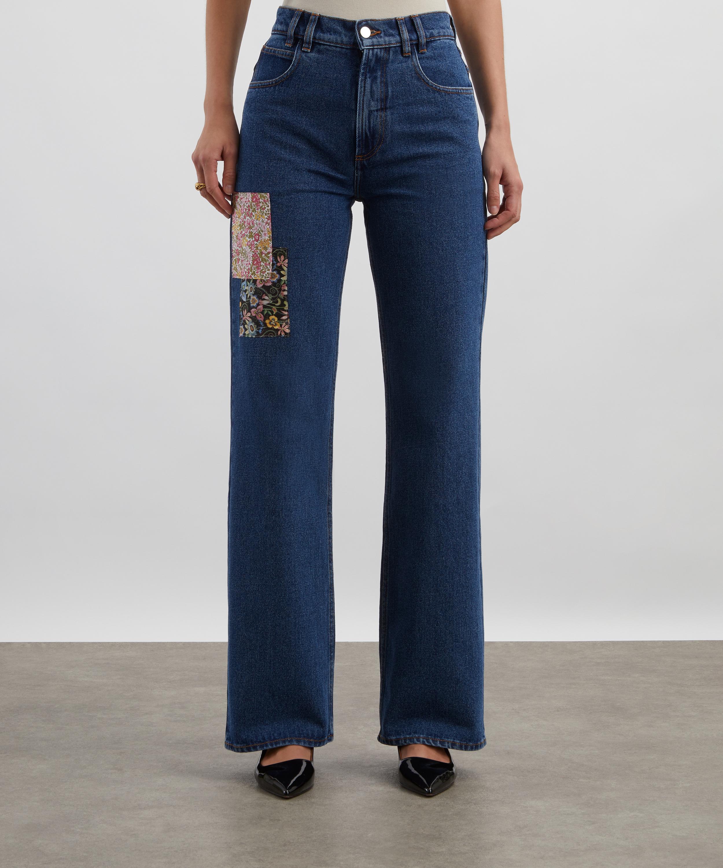 High-Waisted Wide-Leg Liberty Square Patch Jeans
