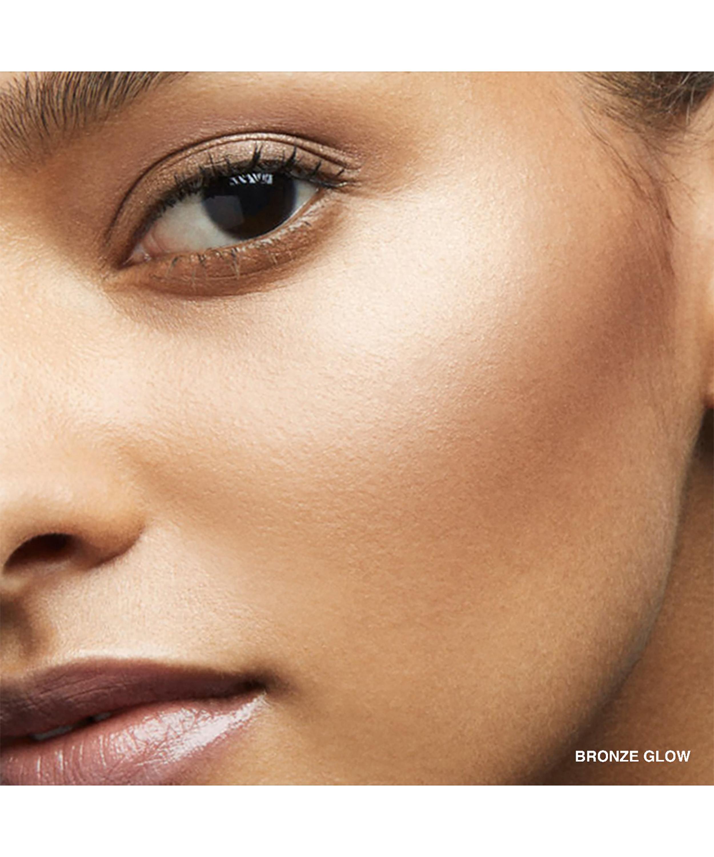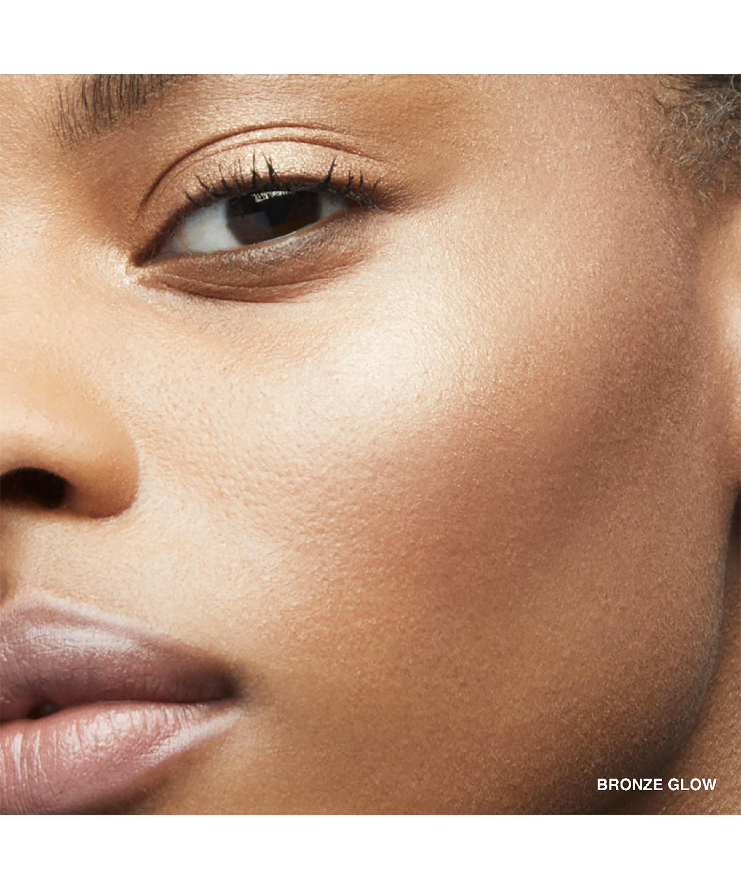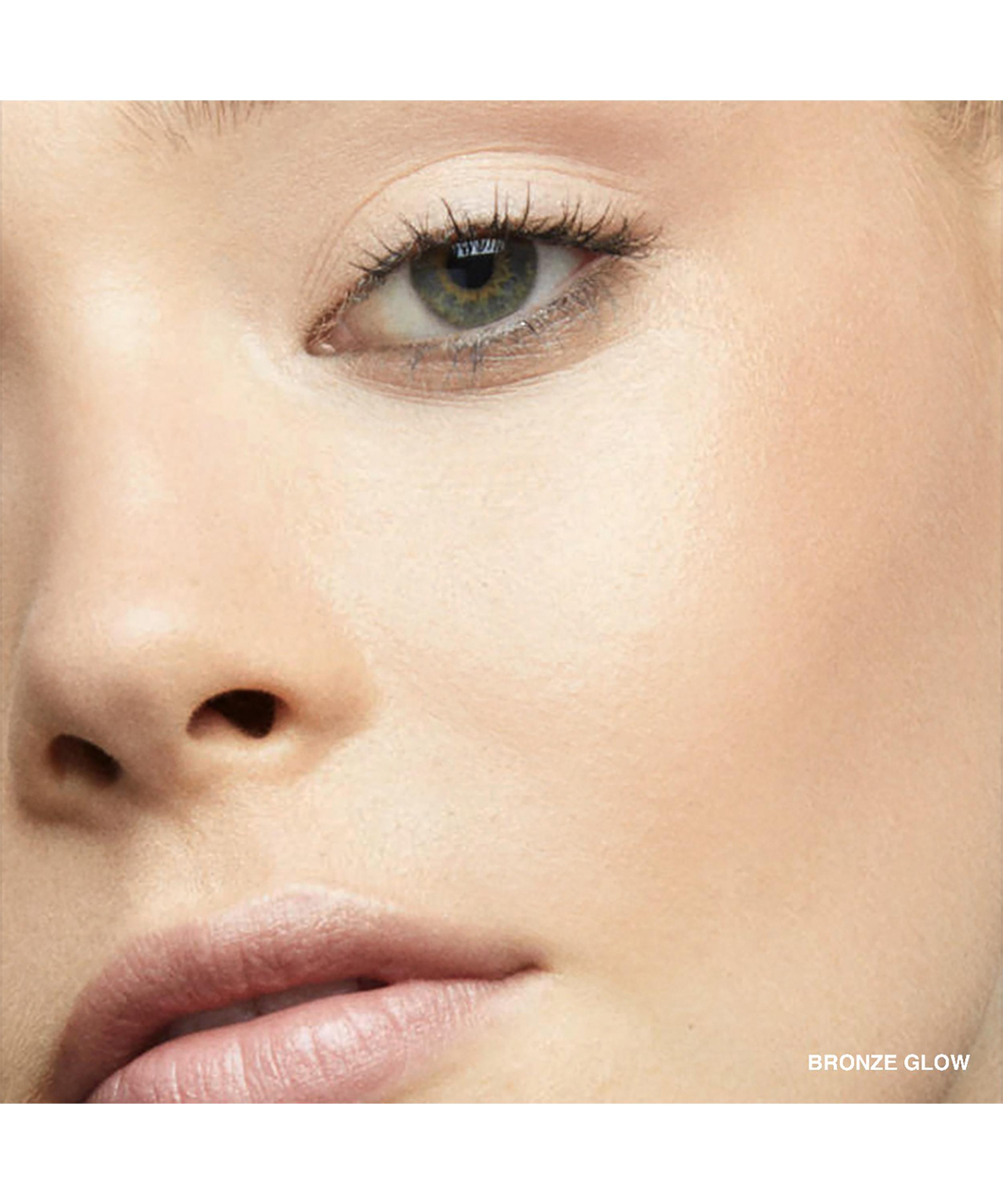 Using a face blender or powder brush, lightly dust the powder onto the cheekbones, other high points of the face and the décolleté, building as desired.