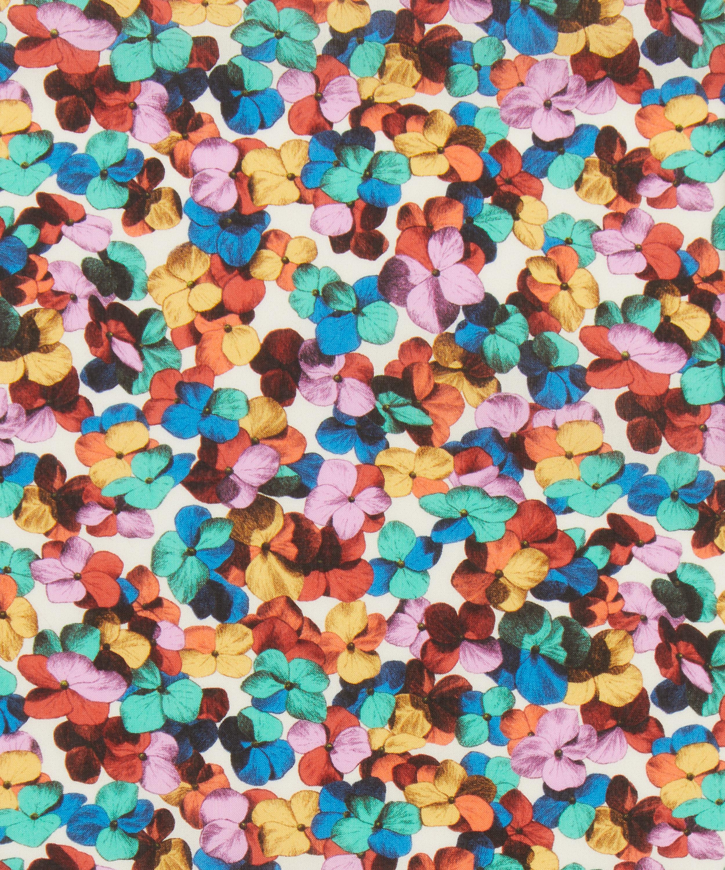 Shining a light on a humble gardener’s favourite, Hilary Ann is a dense, all-over floral made up of delicate hydrangea petals. It was drawn with pencil and coloured digitally, to add a sense of depth and movement. This print is part of the Blue story of our Spring/Summer 2024 collection, discovering it as a jewel-like droplet wherever it appears, with expansive palettes taking inspiration from the brilliance of Egyptian blue, and from the dreamy, washed-out vistas found above the clouds.