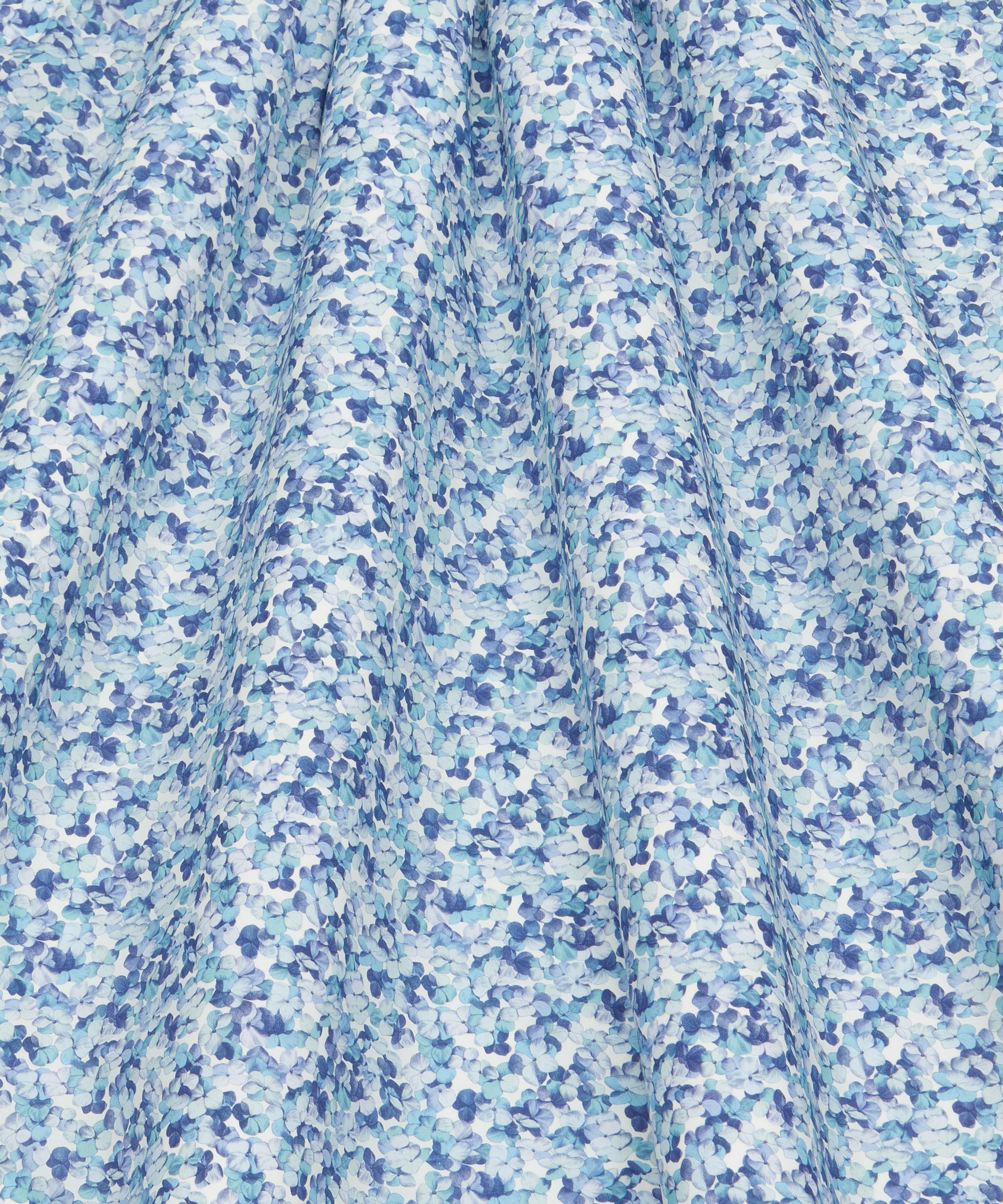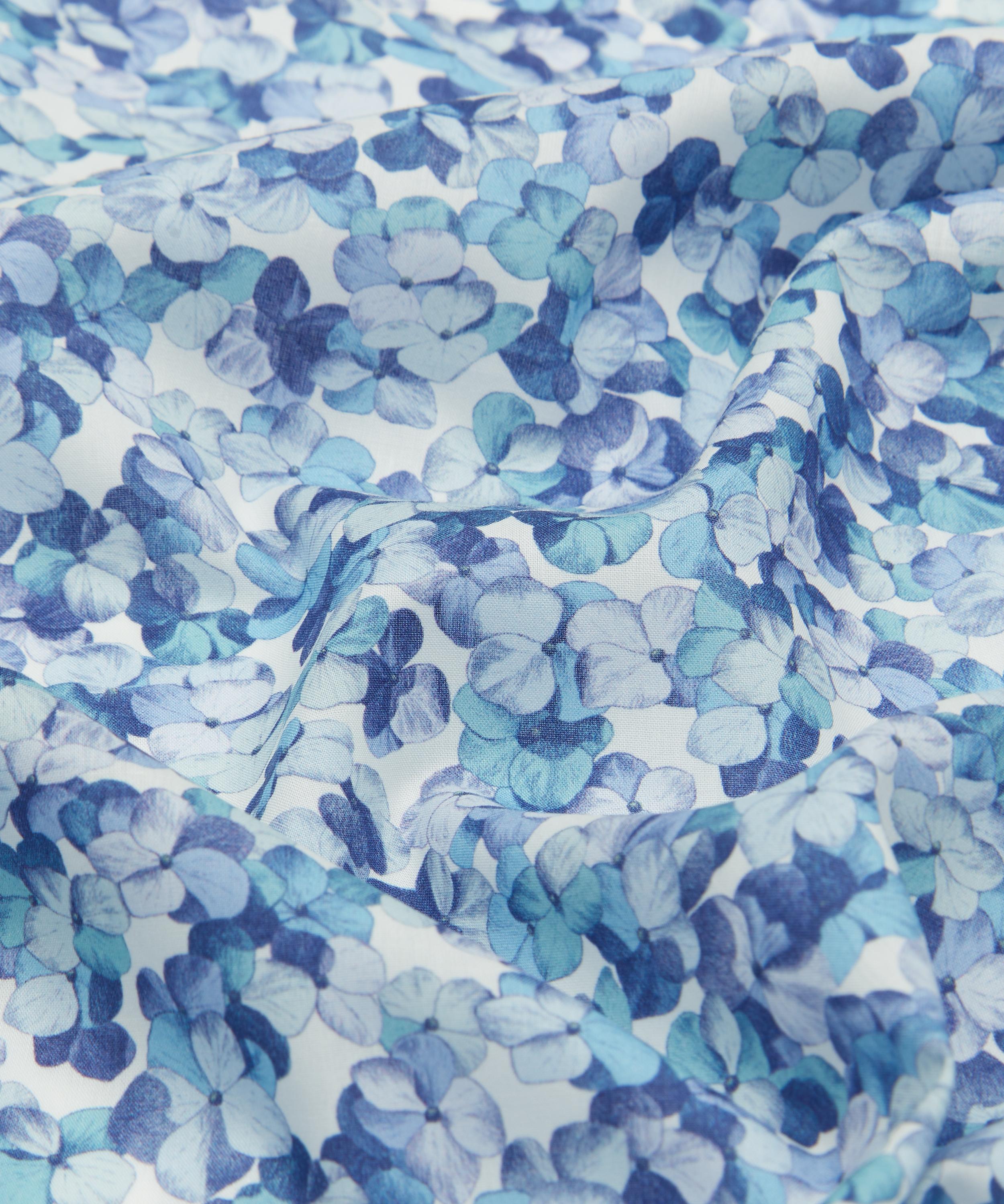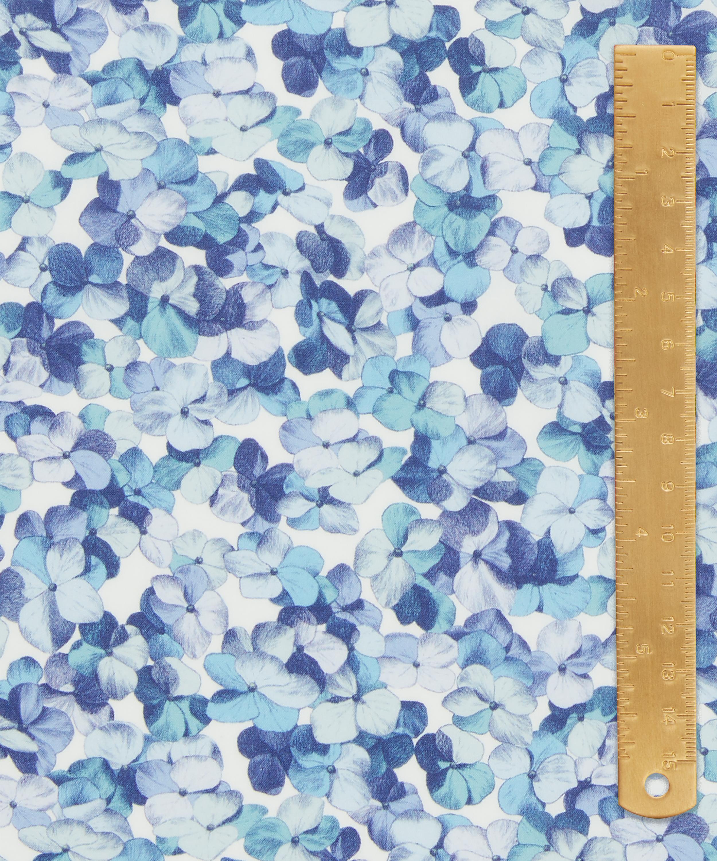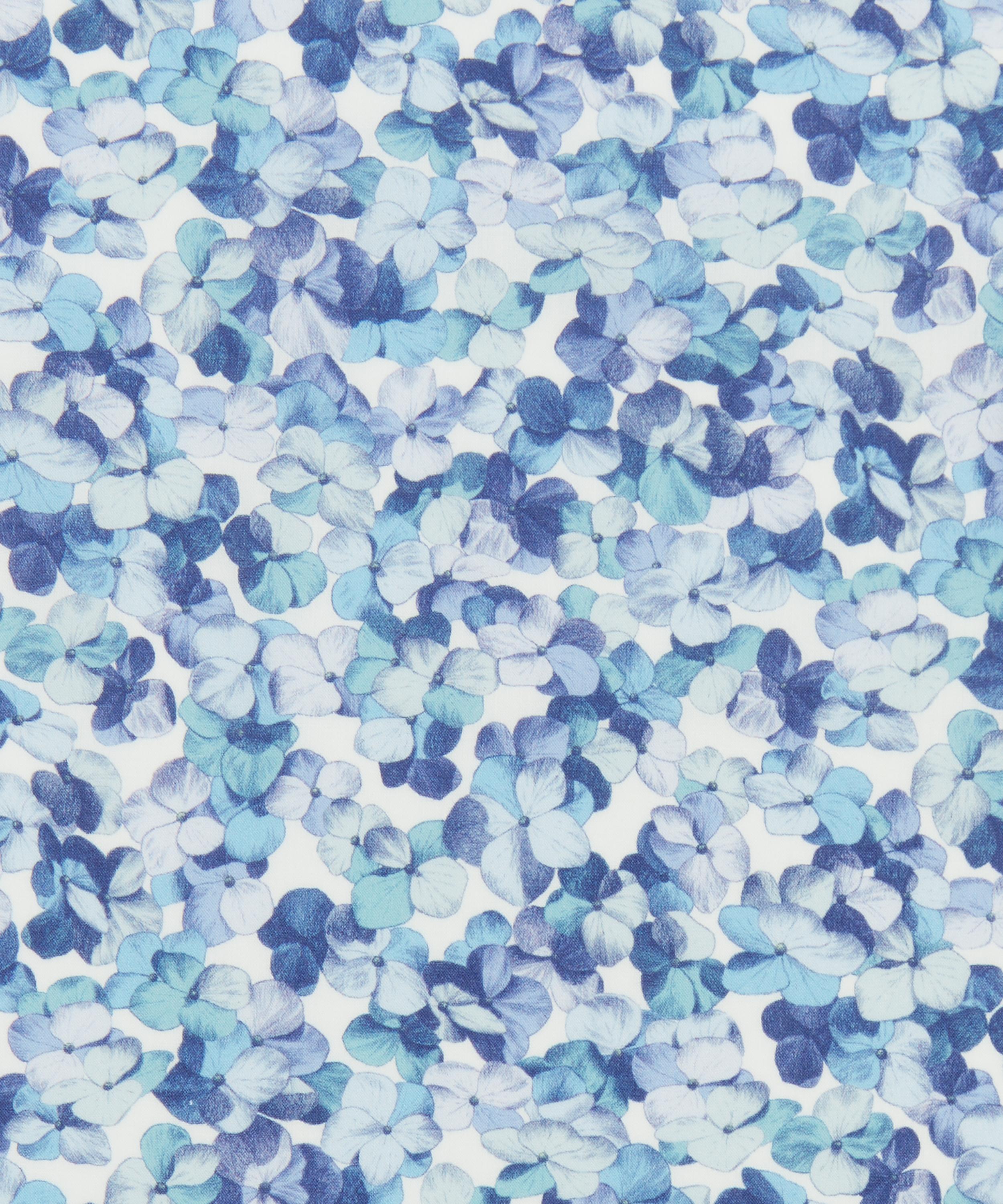 Shining a light on a humble gardener’s favourite, Hilary Ann is a dense, all-over floral made up of delicate hydrangea petals. It was drawn with pencil and coloured digitally, to add a sense of depth and movement. This print is part of the Blue story of our Spring/Summer 2024 collection, discovering it as a jewel-like droplet wherever it appears, with expansive palettes taking inspiration from the brilliance of Egyptian blue, and from the dreamy, washed-out vistas found above the clouds.