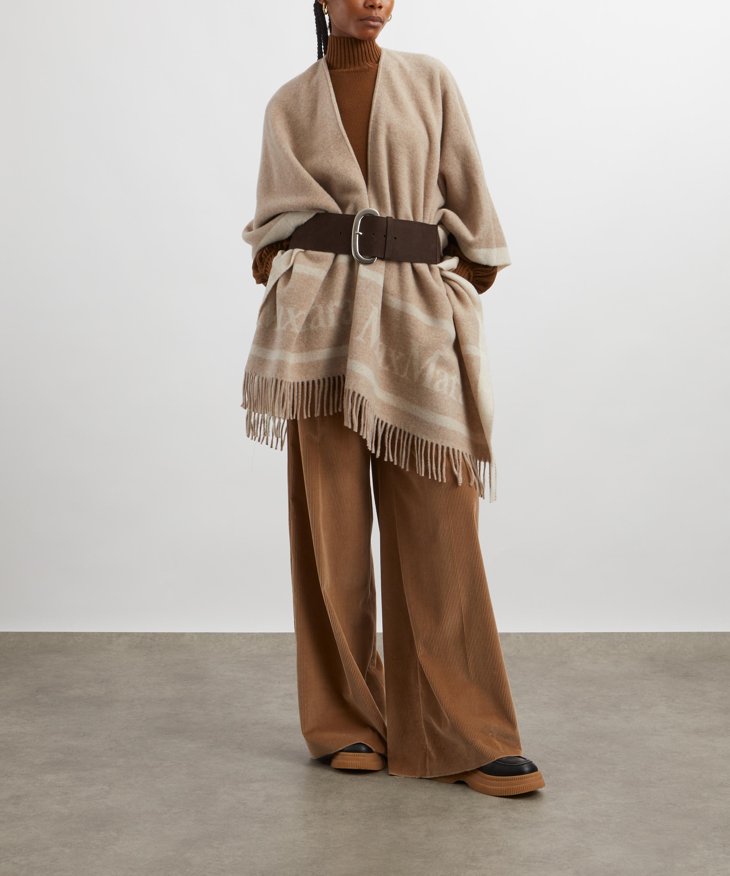 The Hilde Jacquard Logo-Decorated Wool Poncho emphasises Max Mara’s preference for quality materials.