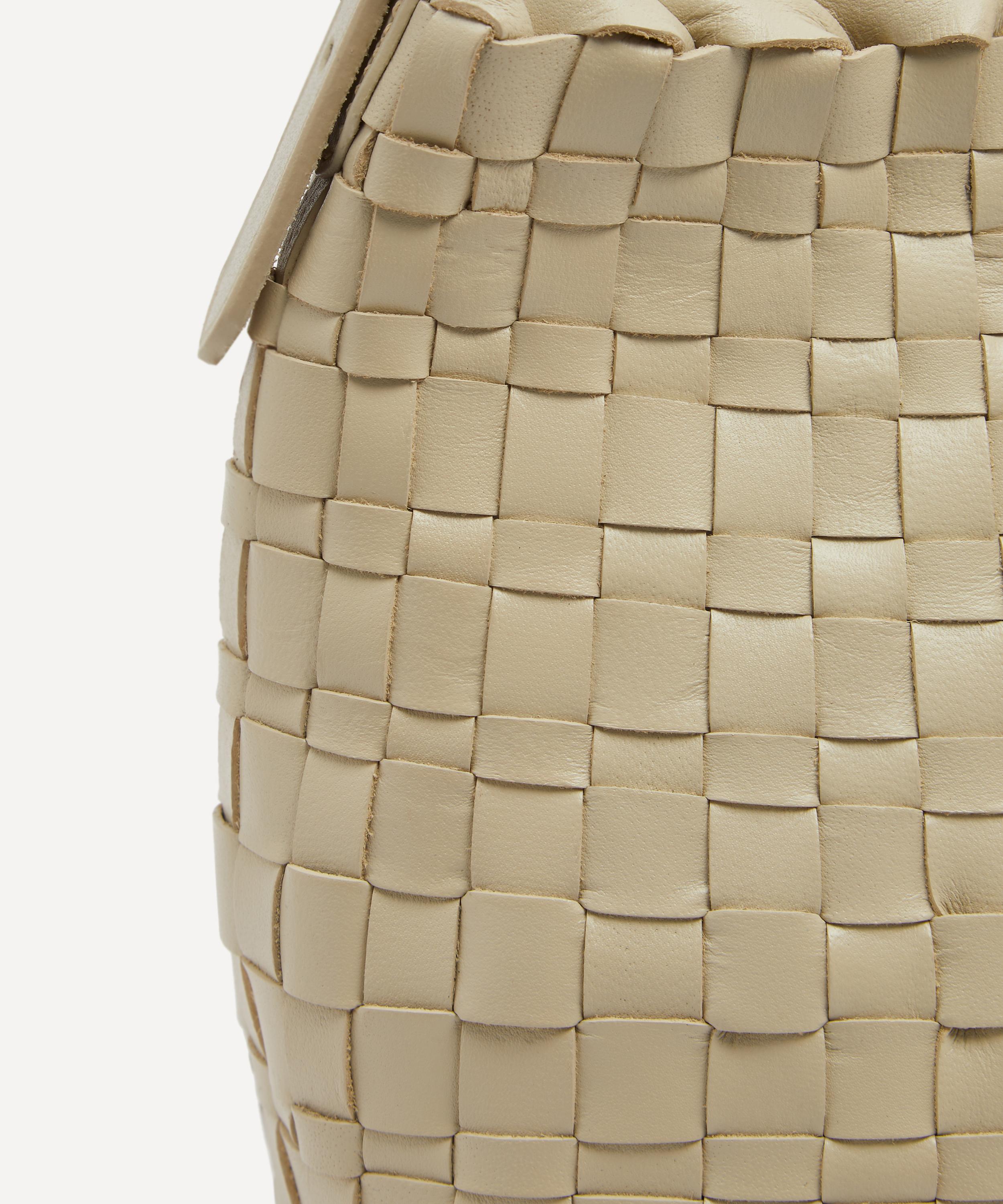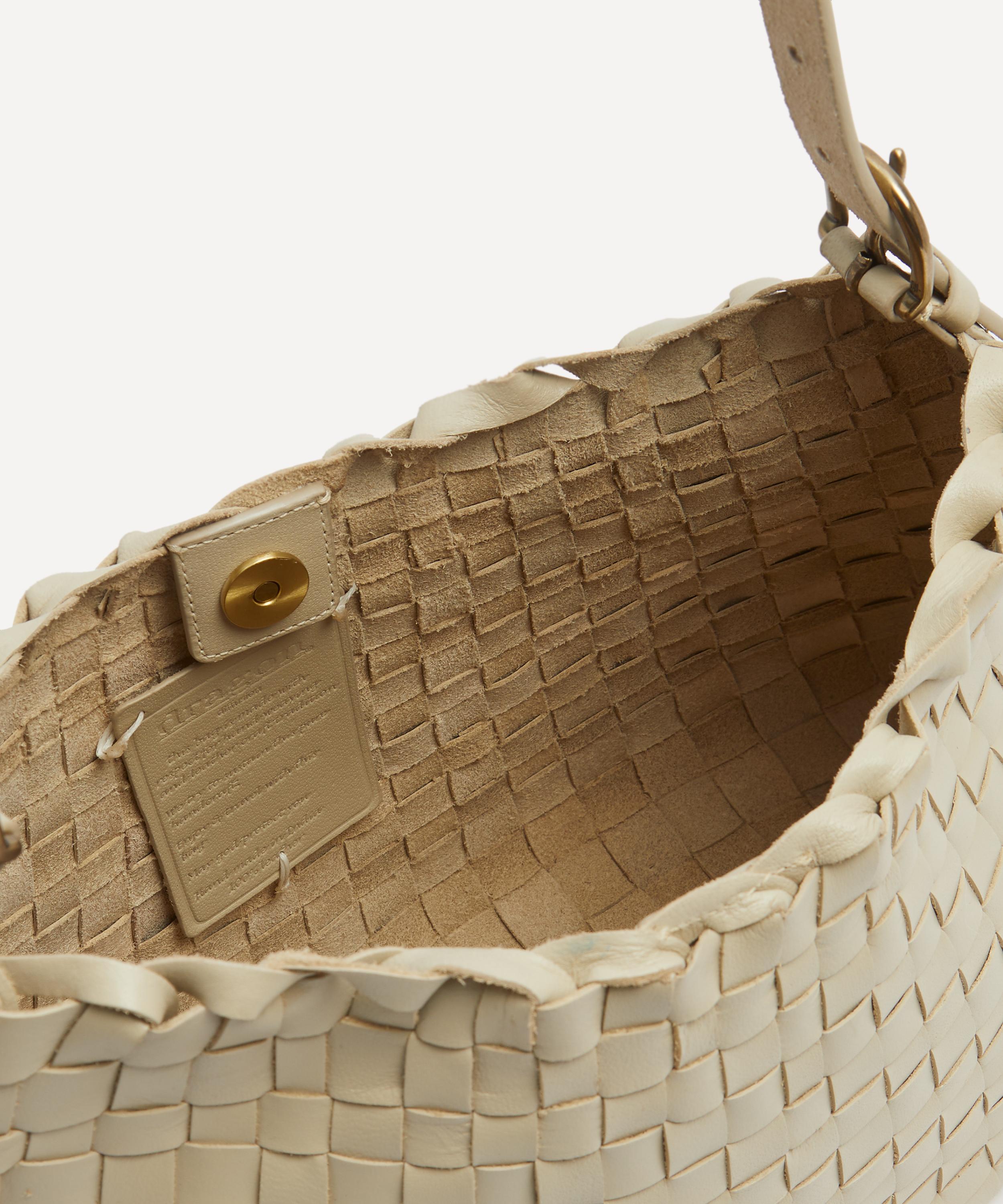 Designed in Brussels and handcrafted in India, Dragon Diffusion’s woven leather handbags showcase a transeasonal approach to the traditional straw basket. Designer Craig Wright works closely with a small team of artisans who create each piece by hand, using traditional basket-weaving techniques, over a period of several days. From timeless totes to drawstring pouches, the woven leather softens and develops a patina over time for a truly one-of-kind finish, while an engraved Saint Christopher charm is tucked into each one as a small token for safe travels.