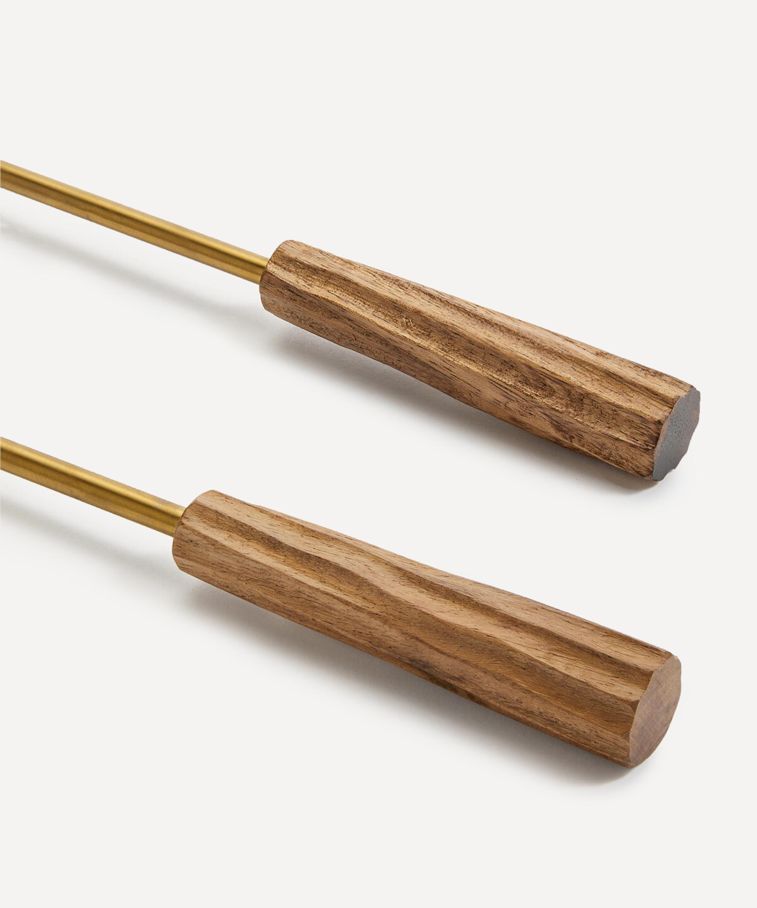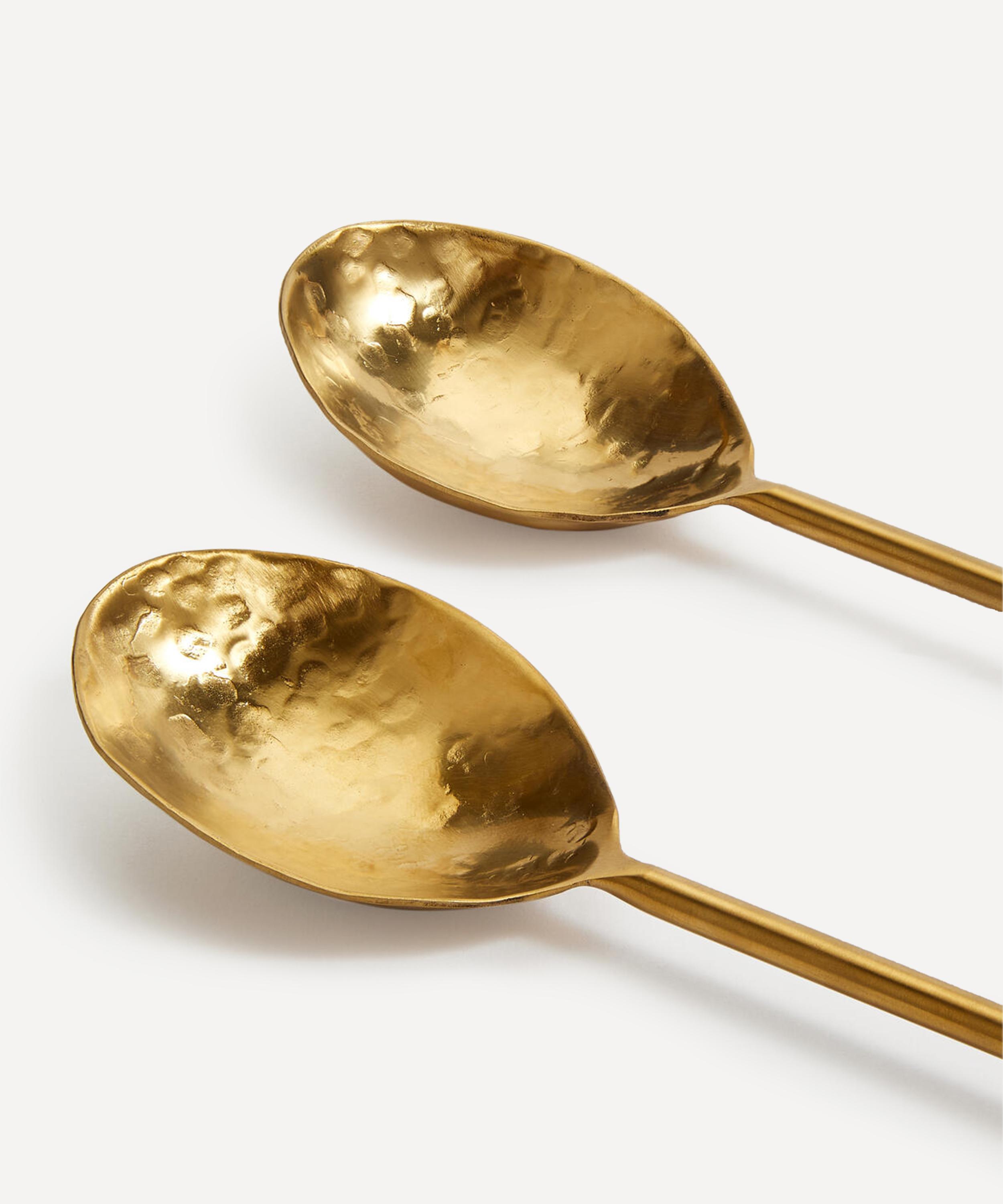 Crafted from acacia wood and brass, these spoons are hand carved by artisans in India and feature bevelled handles and hammering detailing. Elevate your tablescape by using them to serve salads or pasta at your next gathering.