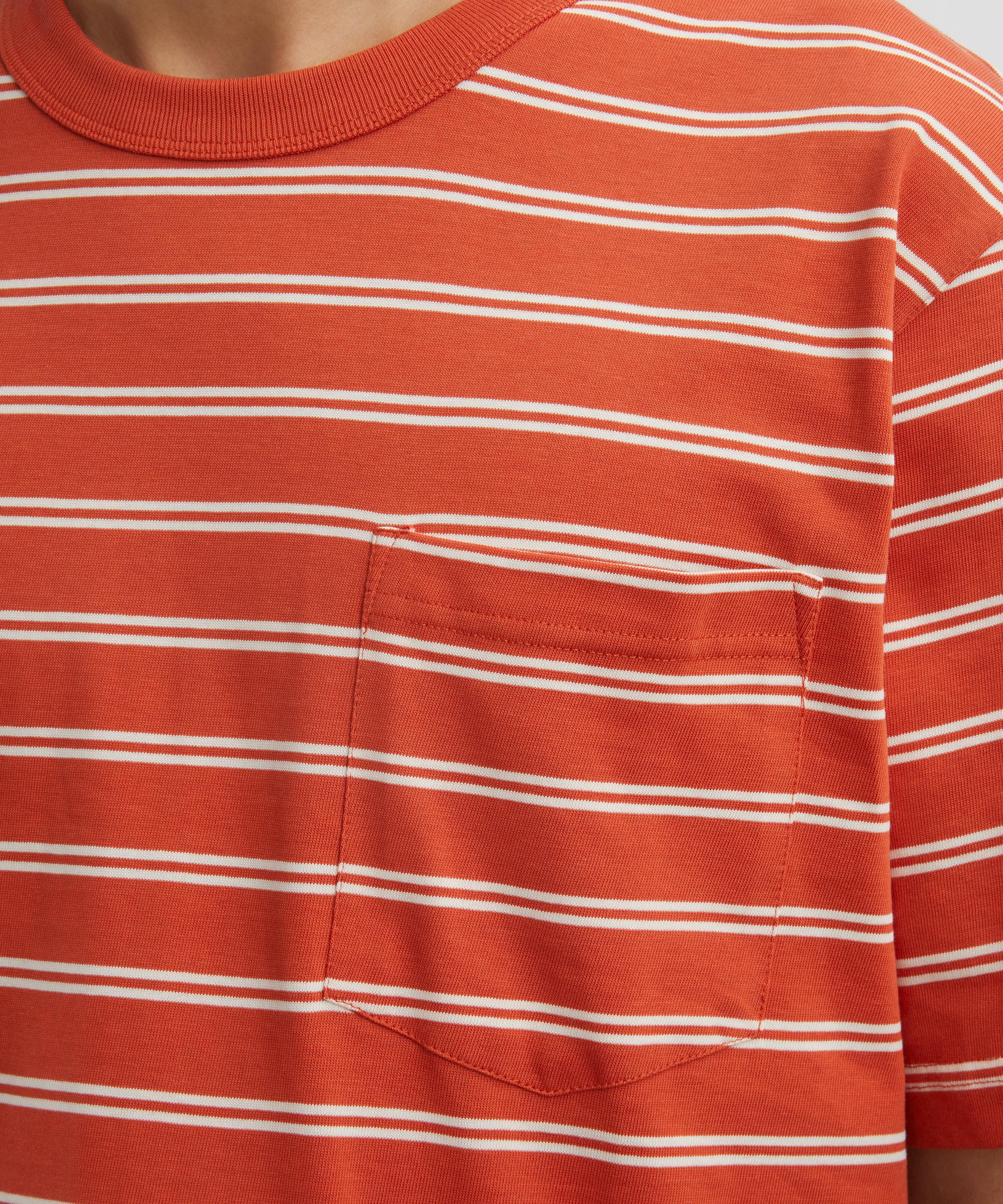 Crafted from soft jersey cotton featuring a nautical-inspired stripe pattern, the Holger t-shirt delivers effortless everyday style. Designed for a relaxed fit, it’s finished with short sleeves, a ribbed collar, and a single chest pocket for a classic, laid-back look.