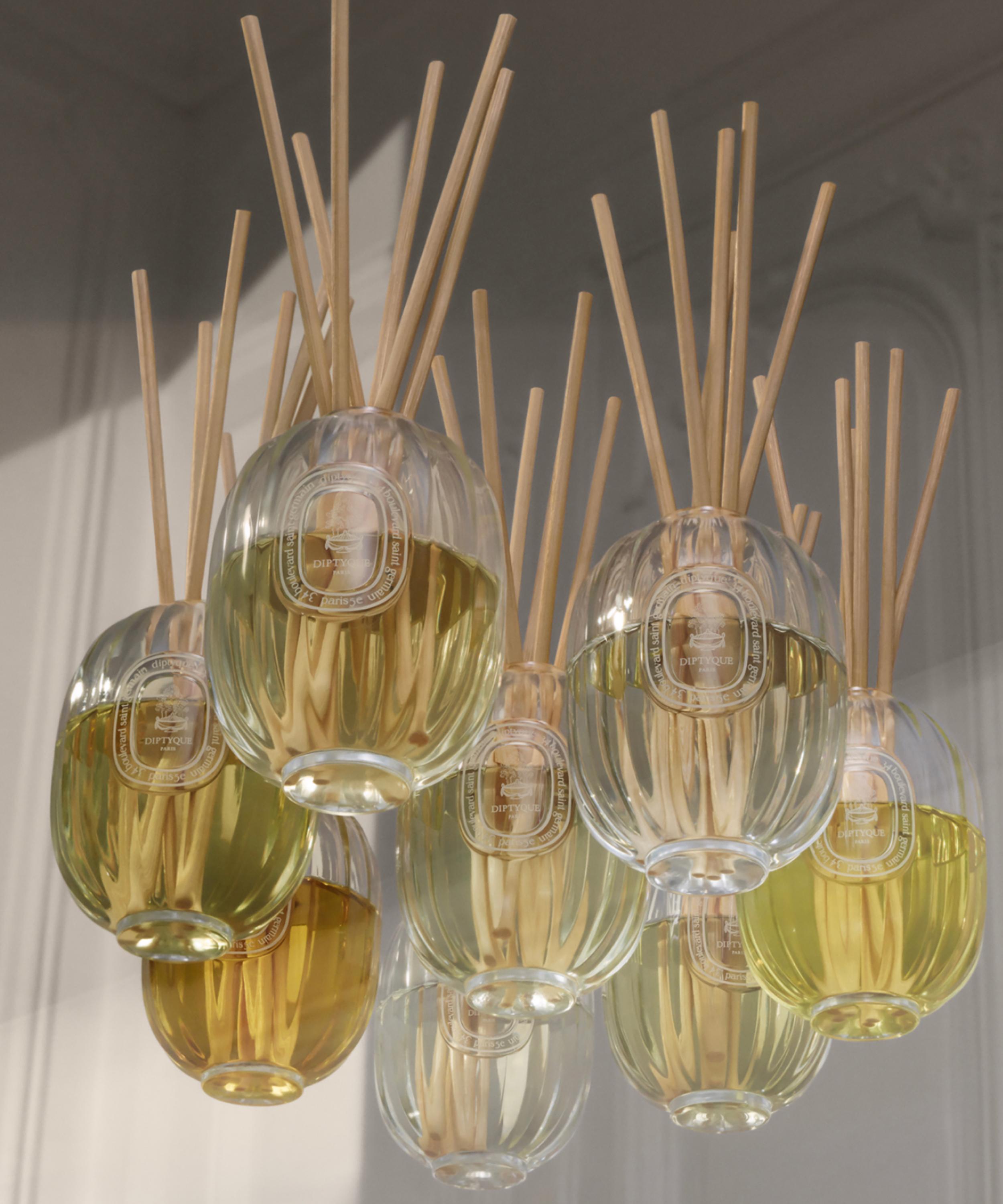 Designed to mimic the French Maison's iconic branding, this infinitely refillable oval vessel has been decorated with the Diptyque signature, and is finished with a faceted surface that creates dancing reflections, bringing the object to life as the fragrance accords fill your home – place on a cabinet, coffee table or mantle to add a refined touch to interiors.