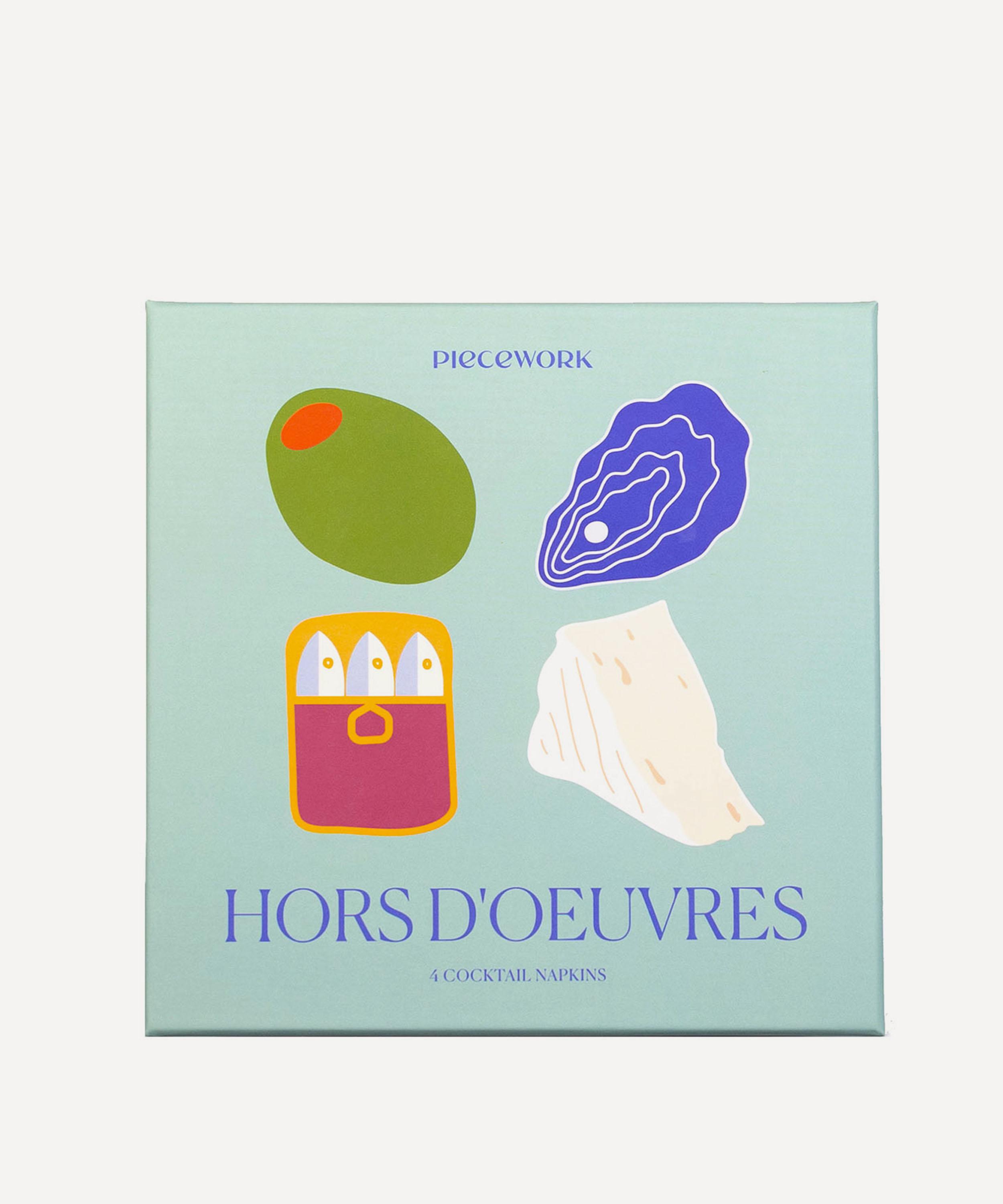 Bringing fun and feel-good flair to your dining table, Piecework’s Hors D’Oeuvres cocktail napkins lend a maximalist edge to your parties and gatherings.