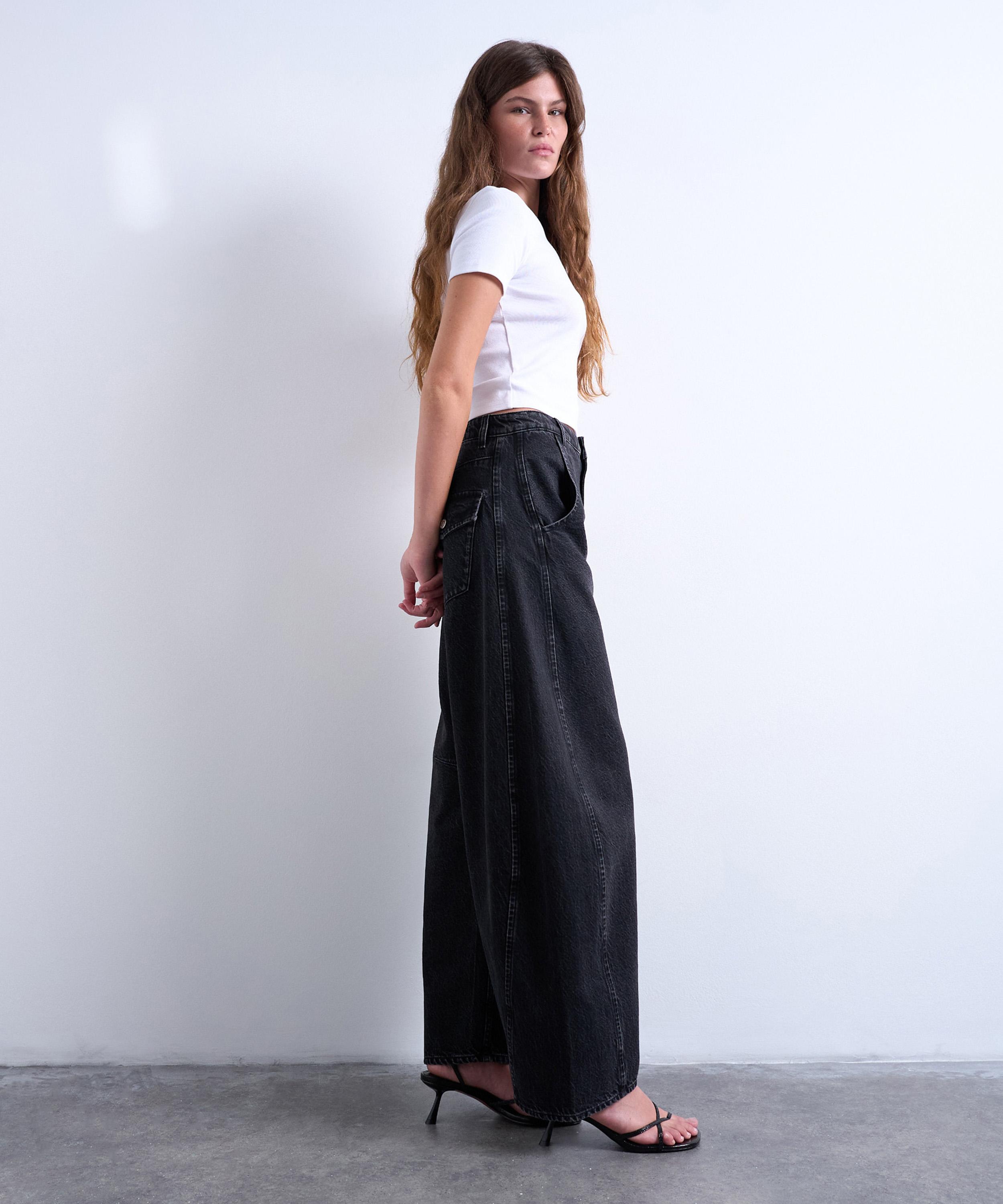 Crafted from non-stretch denim in a versatile black wash, the Horseshoe jeans feature a high-rise waist and barrel-leg silhouette for a flattering, laid-back fit. True to its classic design, this pair features a concealed fly, belt loops, and four functional pockets.